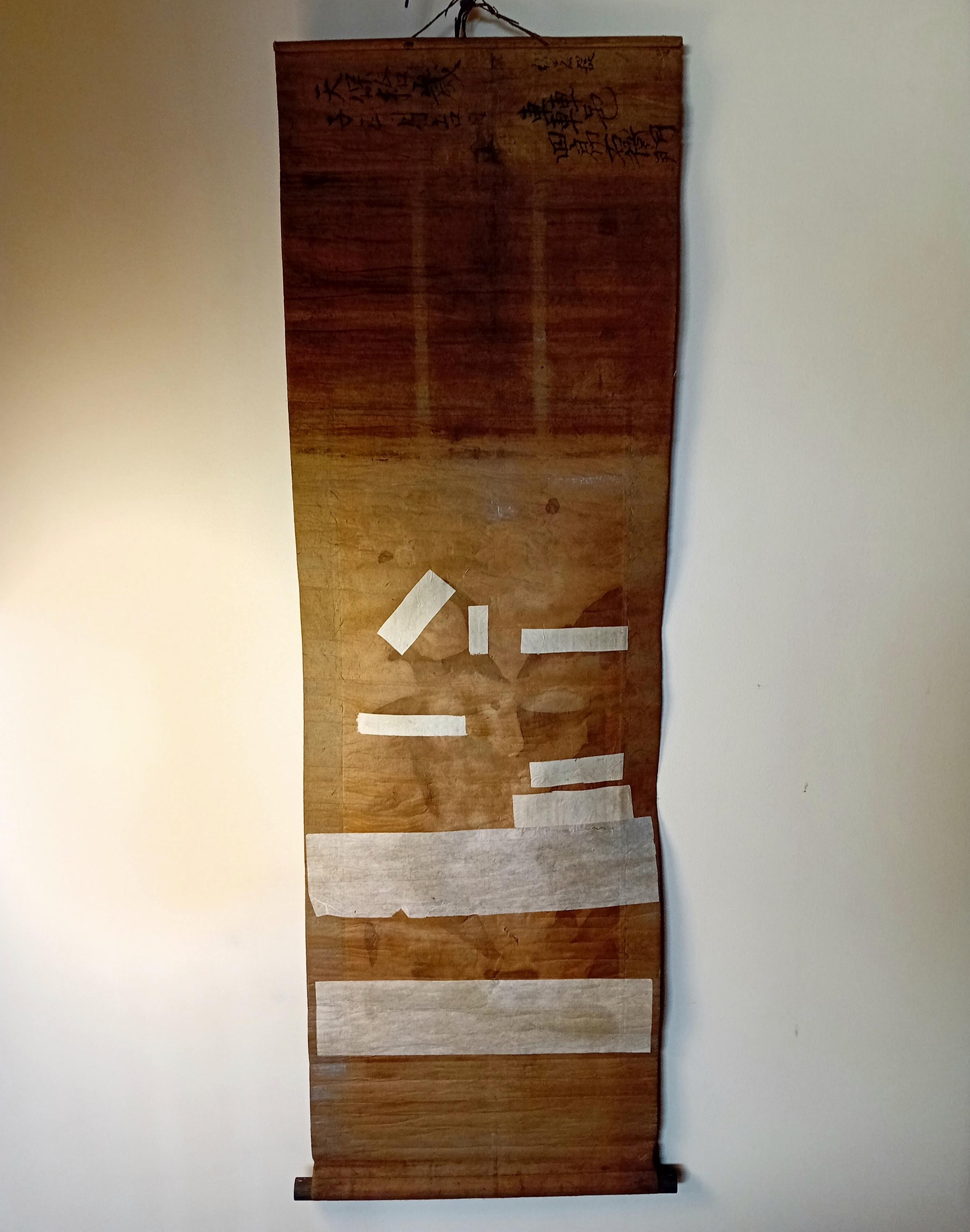 Technique: ink and colors on handmade washi paper, mounted as a hanging scroll with silk borders