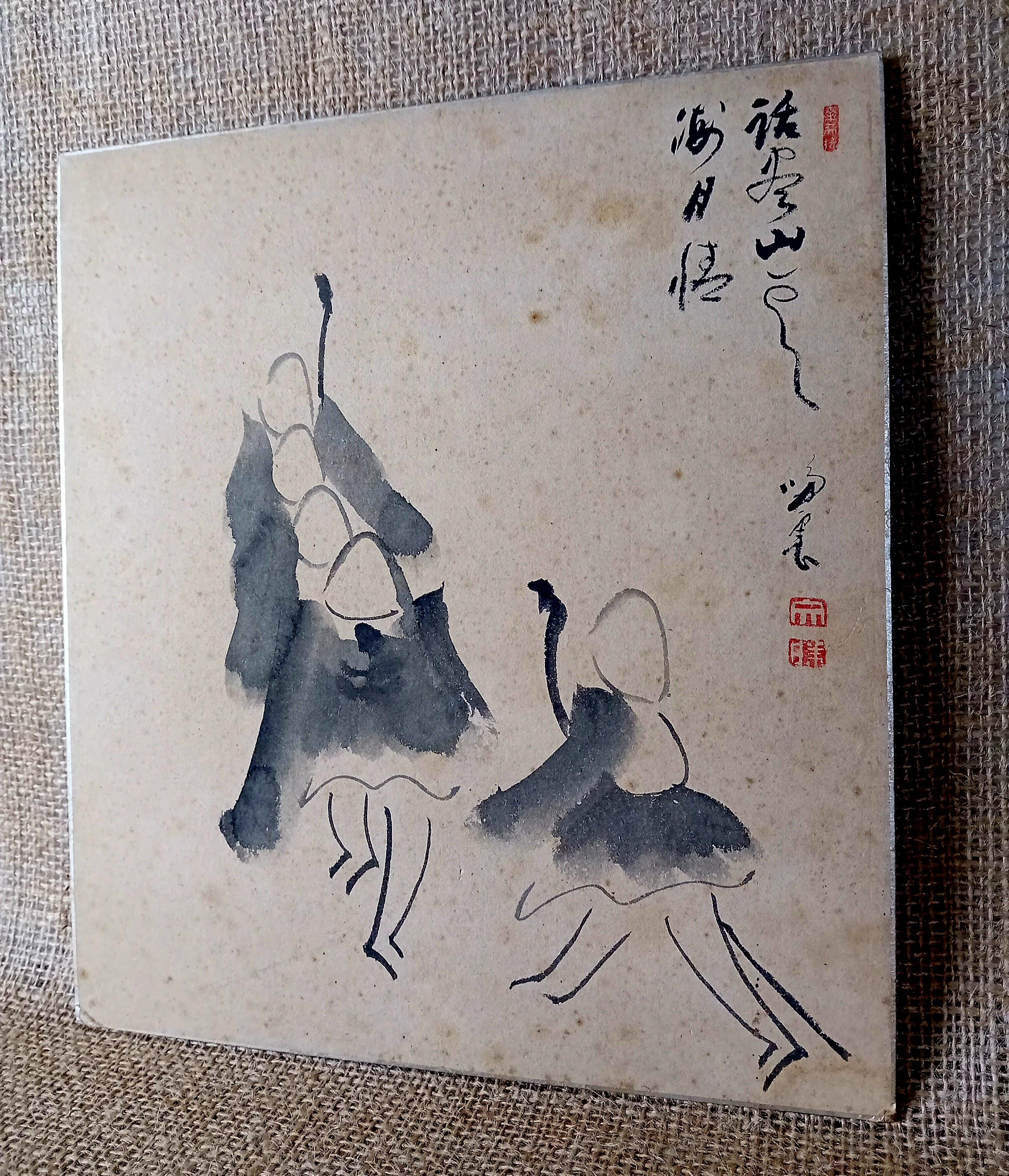 Medium: Ink on shikishi cardboard (gold-flecked backing, natural aging spots)