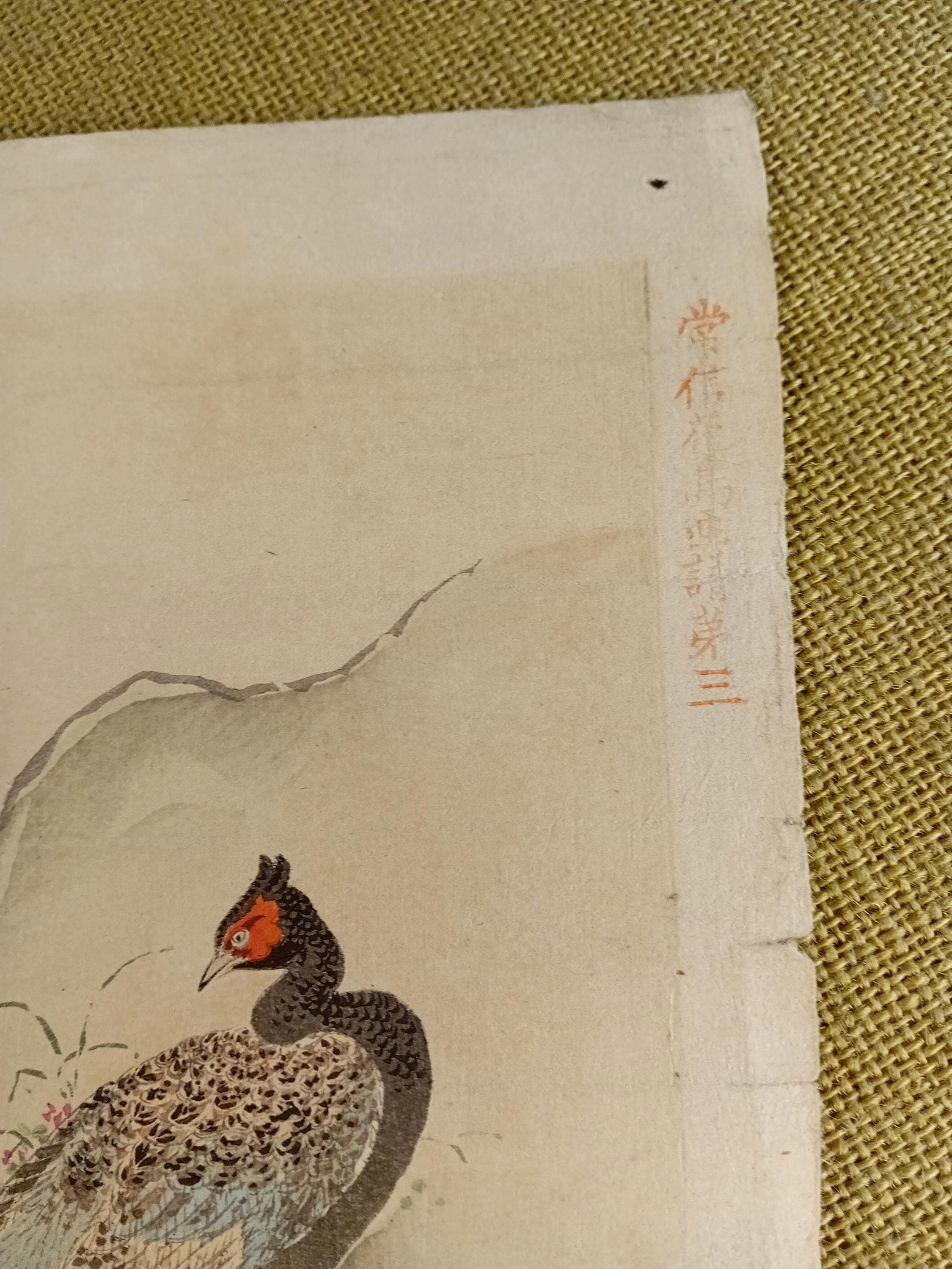 Authentic antique Japanese woodblock print from Jōshin Kachō Gafu series (No.3).