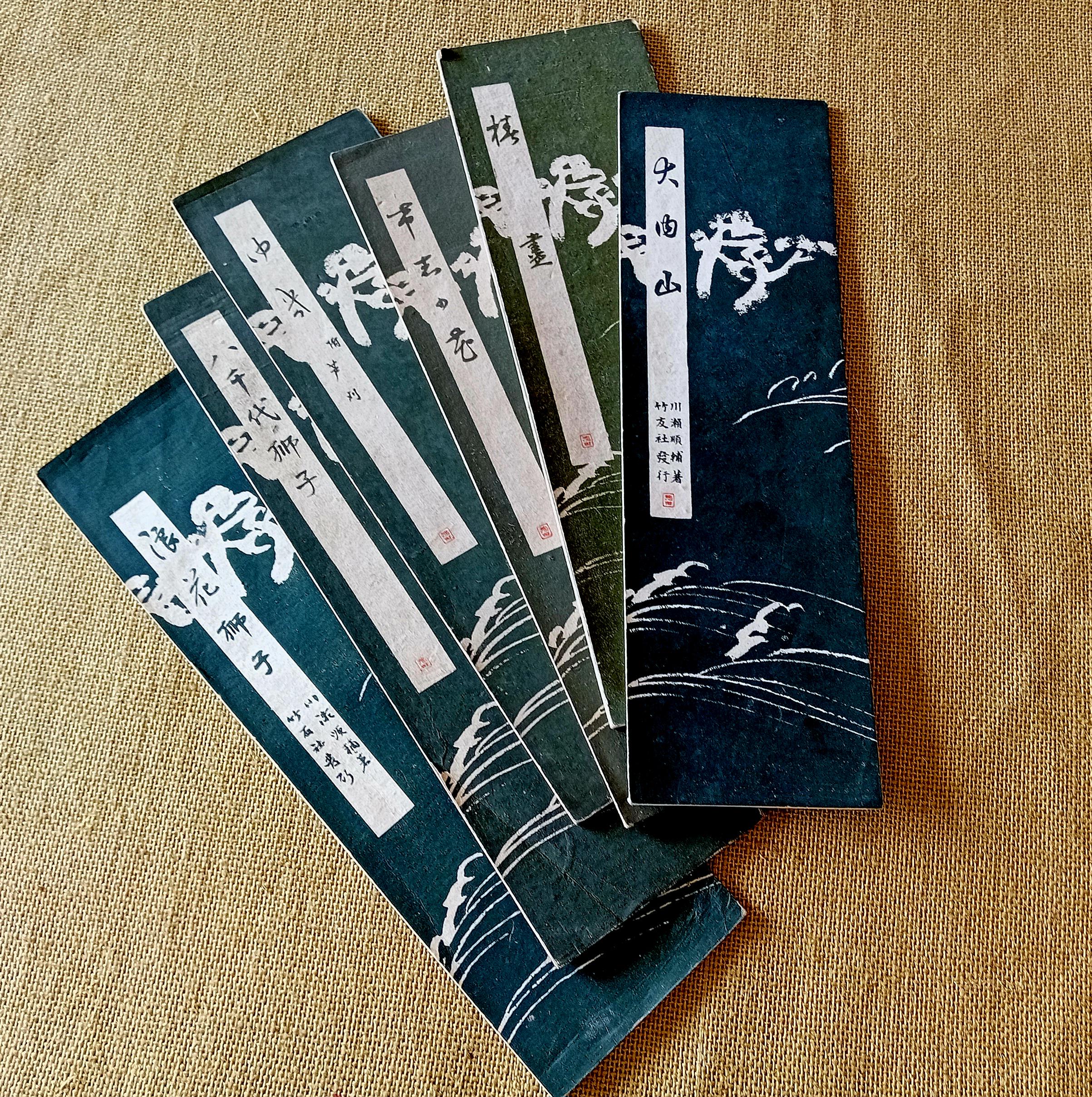 A rare complete set of six original Japanese folding books (orihon) published in Tokyo by Takeyūsha (竹友社) during the Taishō era (1919–1922).