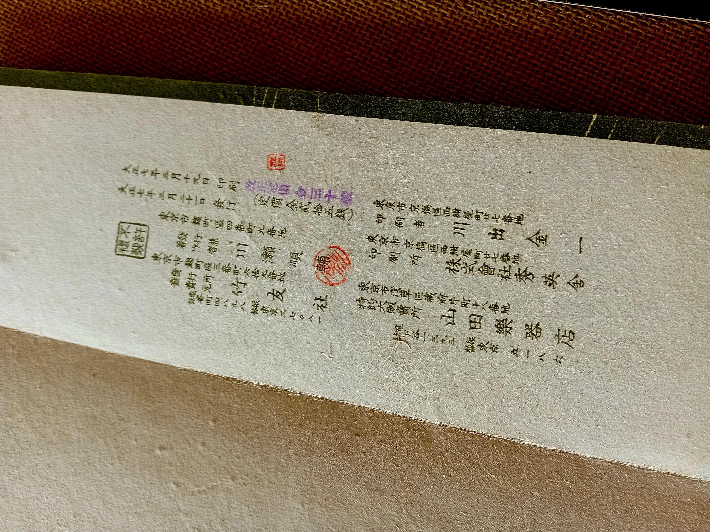All six were published by Takeyūsha, edited by Kawase Junsuke (川瀬順輔) and printed by Yamada Gakki-ten (山田楽器店, Tokyo).