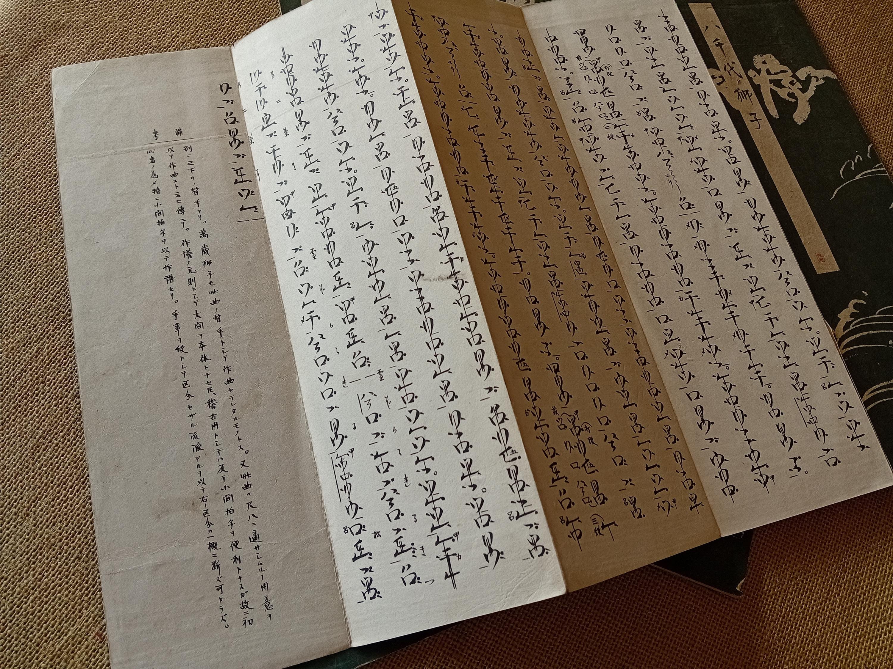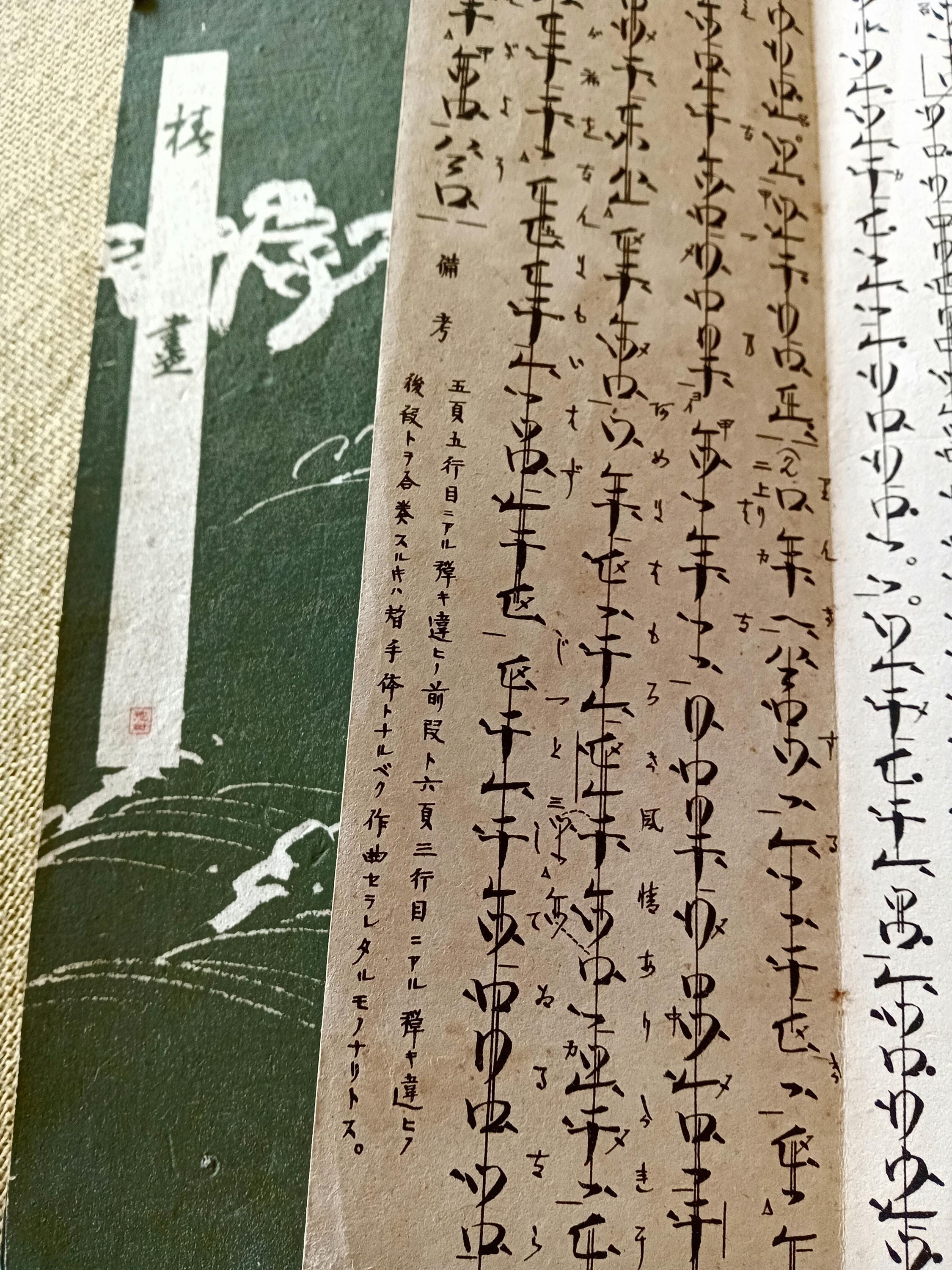 An important record of nagauta and utai notation in transition between Meiji and early Shōwa, blending poetic calligraphy and musical structure.