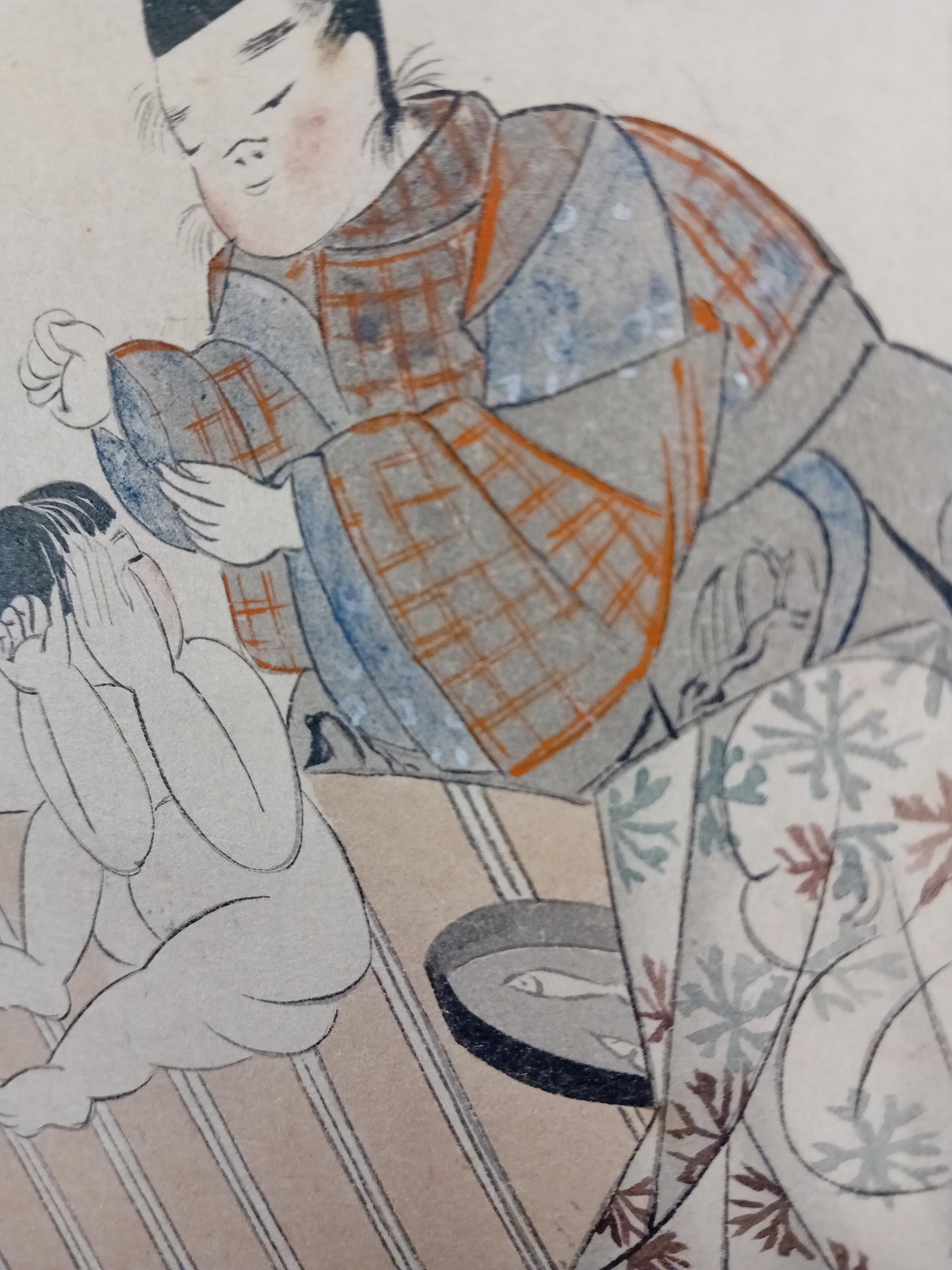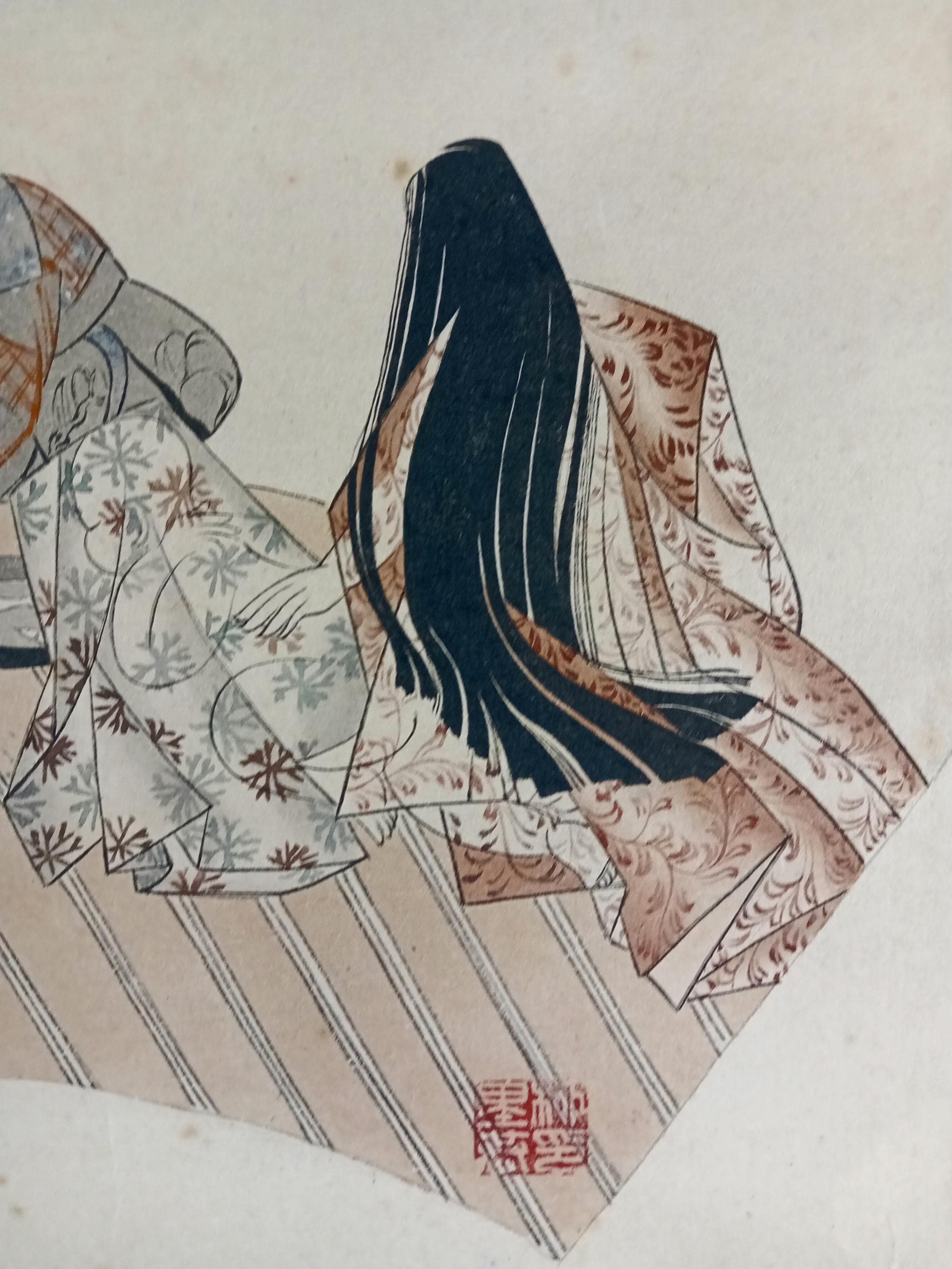 Executed in the Kyoto Yamato-e revival style with soft lines, decorative textile patterns, and emotional stillness characteristic of classical Japanese aesthetics.