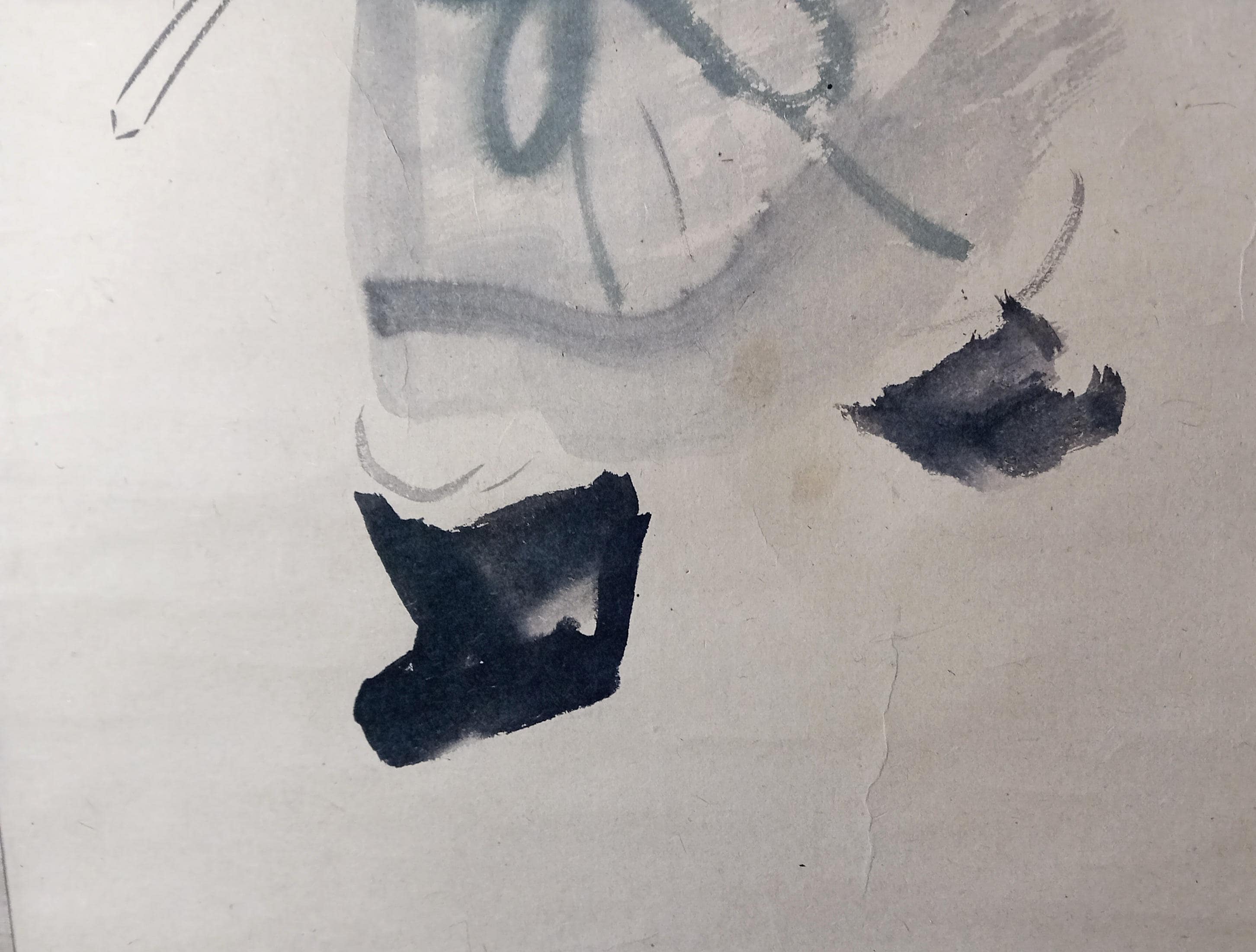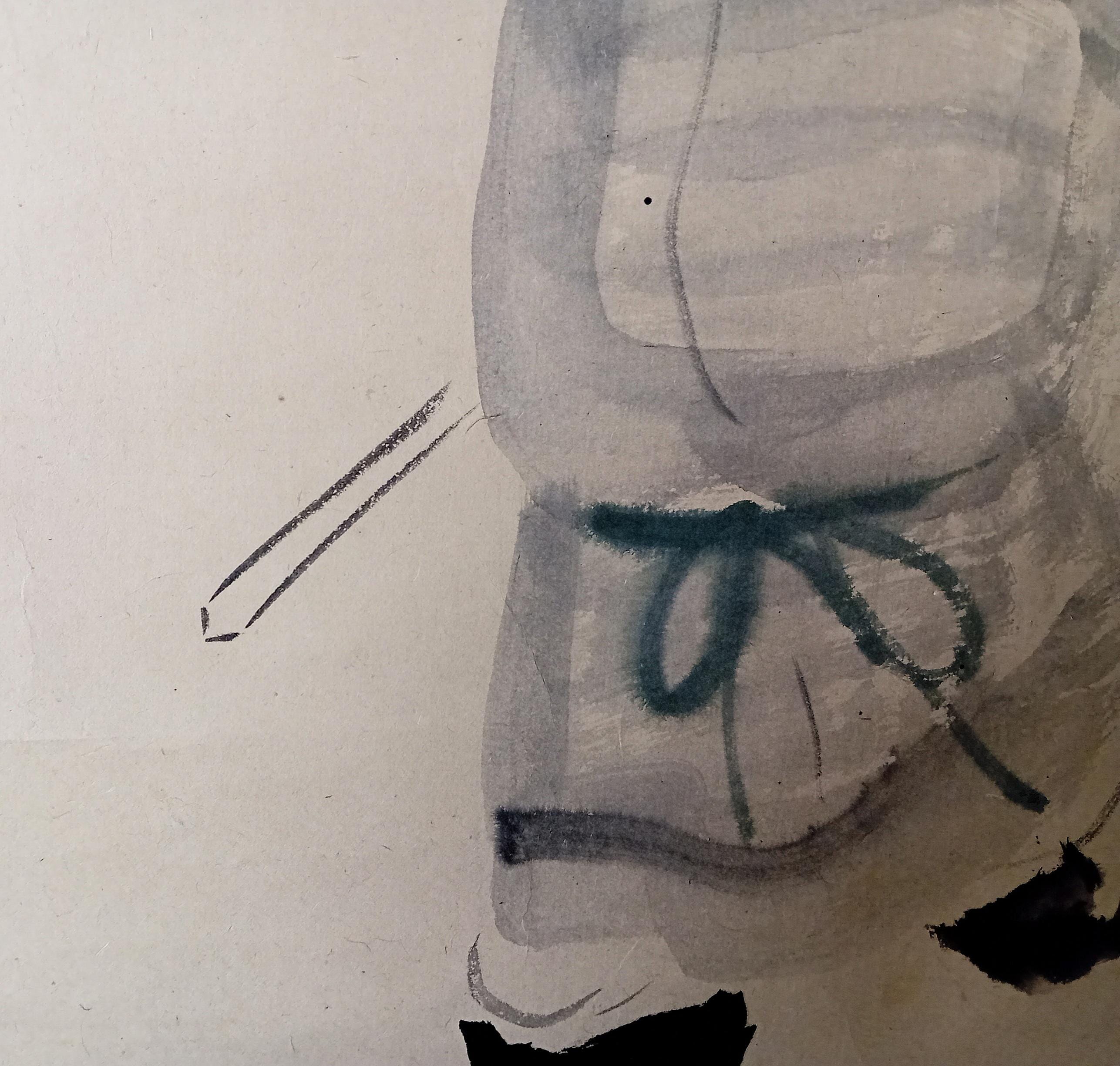 The execution follows a Zen-influenced brush tradition, where expression arises from direct movement and clarity of intent. Economy of line, energy over outline, and absence of narrative detail correspond to classical figural sumi-e, here interpreted in the early 20th century within a continuity of earlier practice.