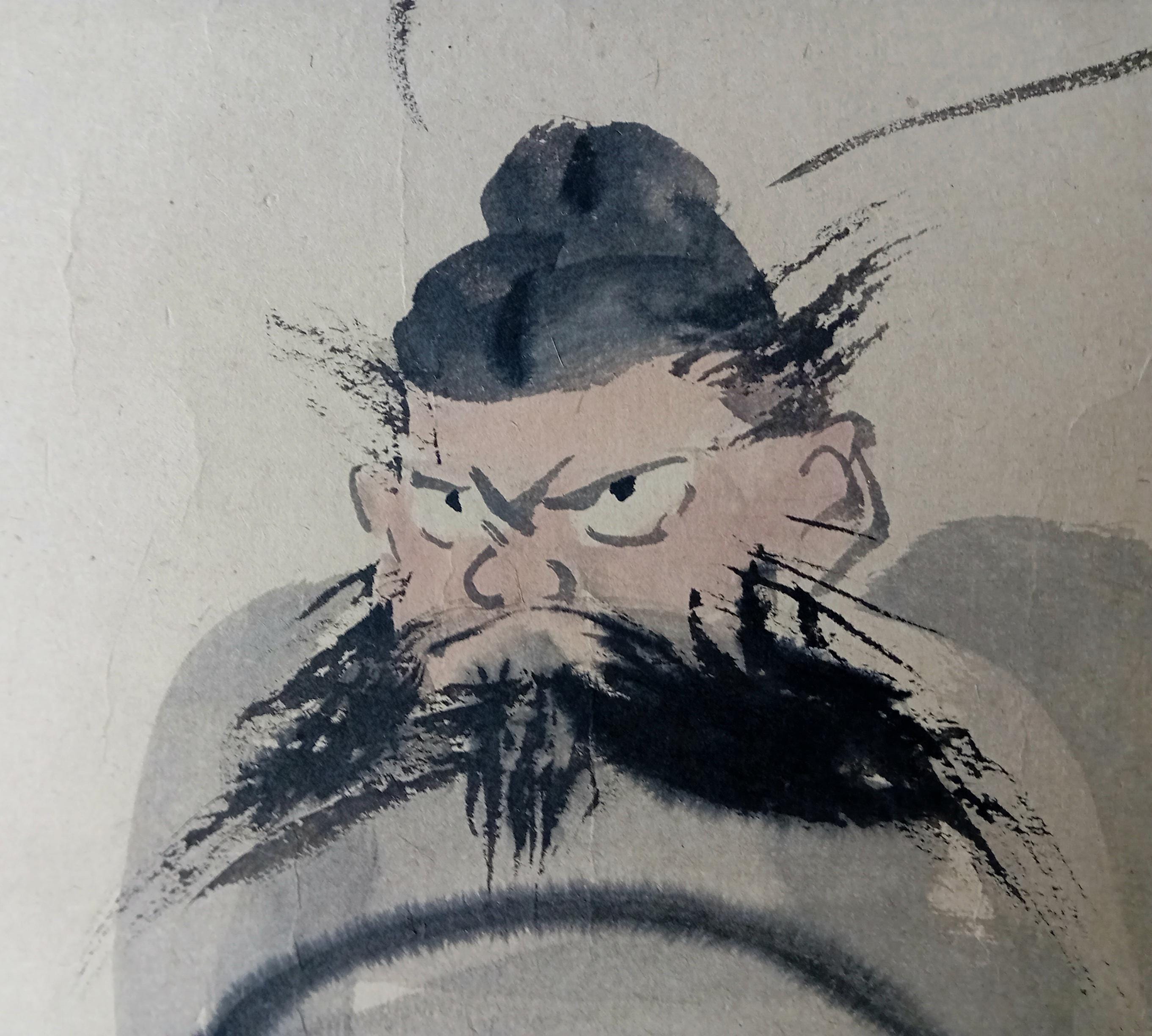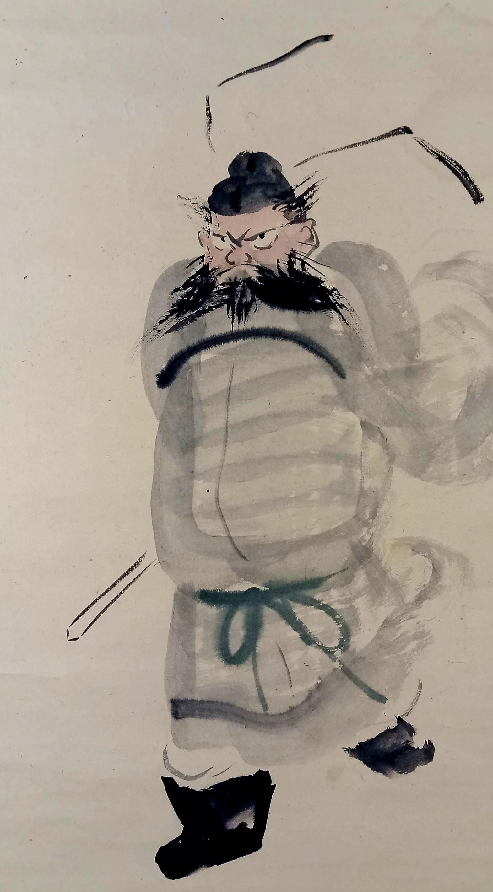 Expressive Zen brushwork, figural sumi-e emphasizing movement and inner strength.