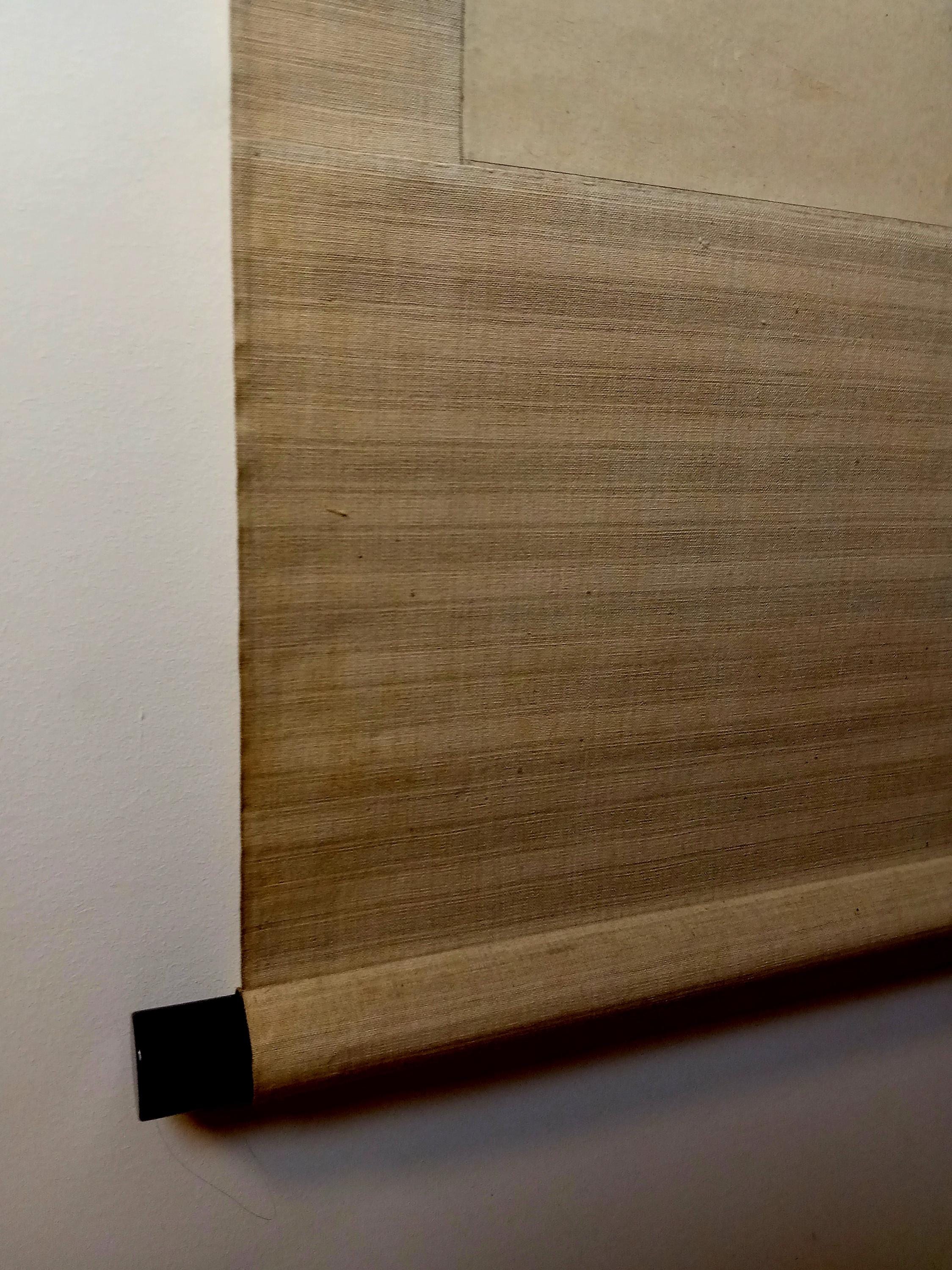Natural signs of age and gentle storage folds. Backing and mounting elements were renewed during the Shōwa period to support preservation; the painted surface remains respected and untouched.
