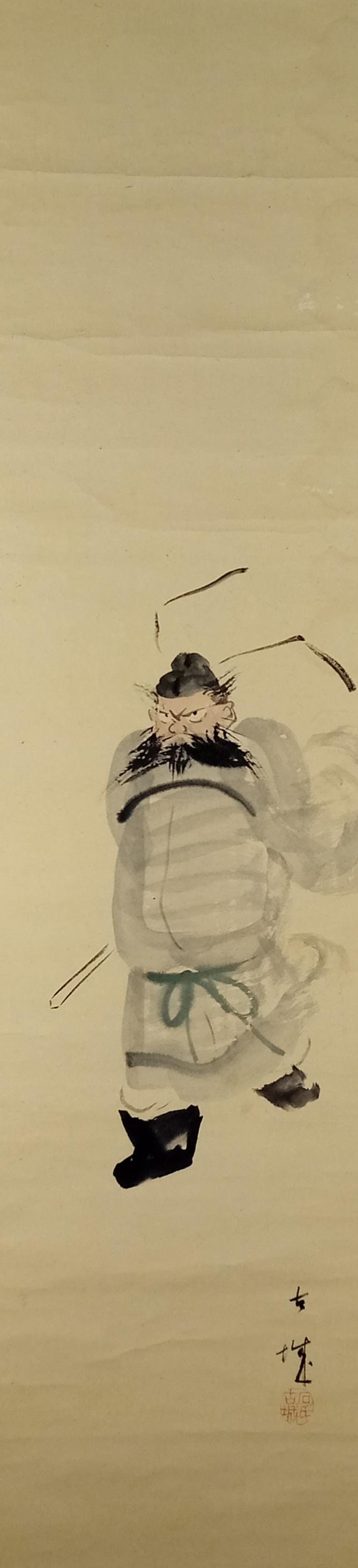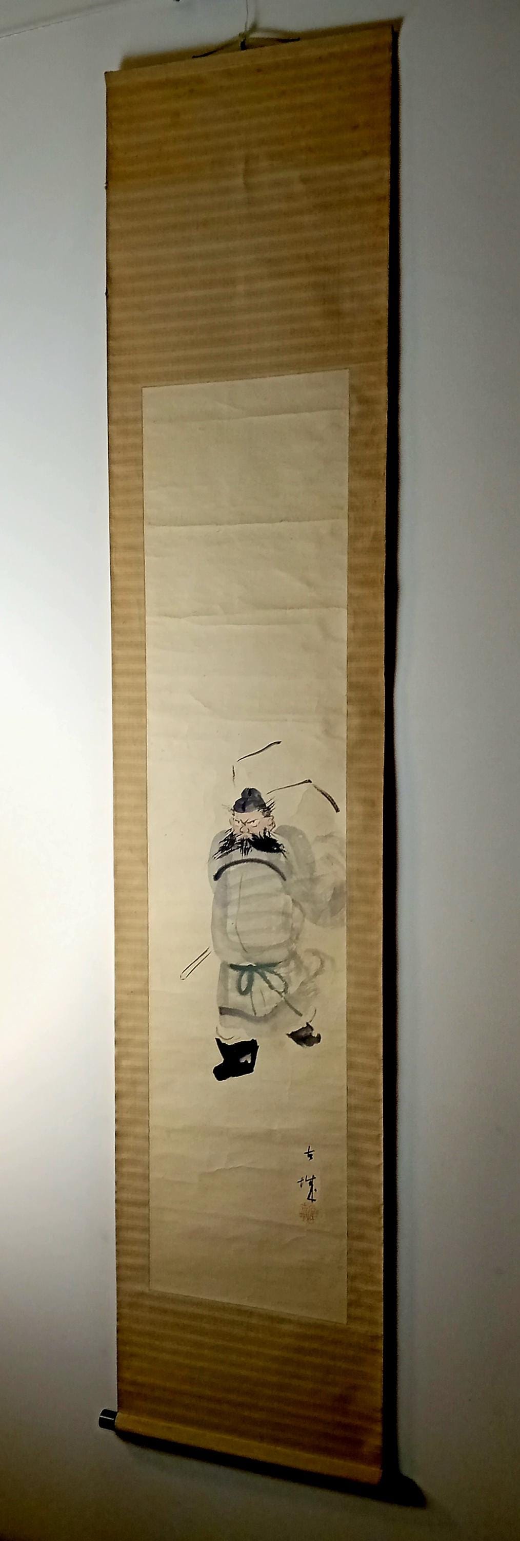 Vintage long vertical Shoki scroll, Japanese ink kakemono (kakejiku), Taishō–early Shōwa period #1804