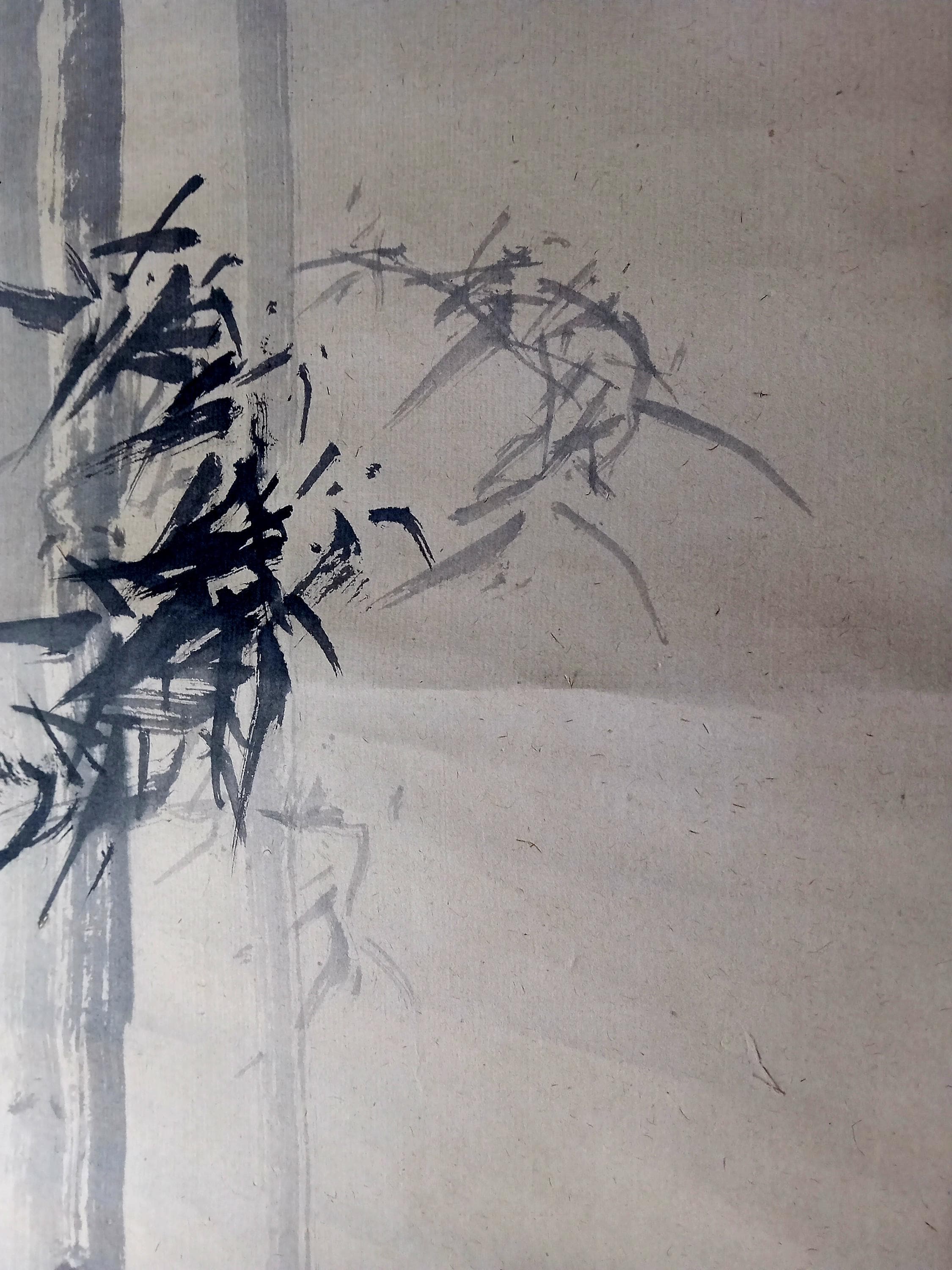 Traditional ink painting with a soft, narrative presence.