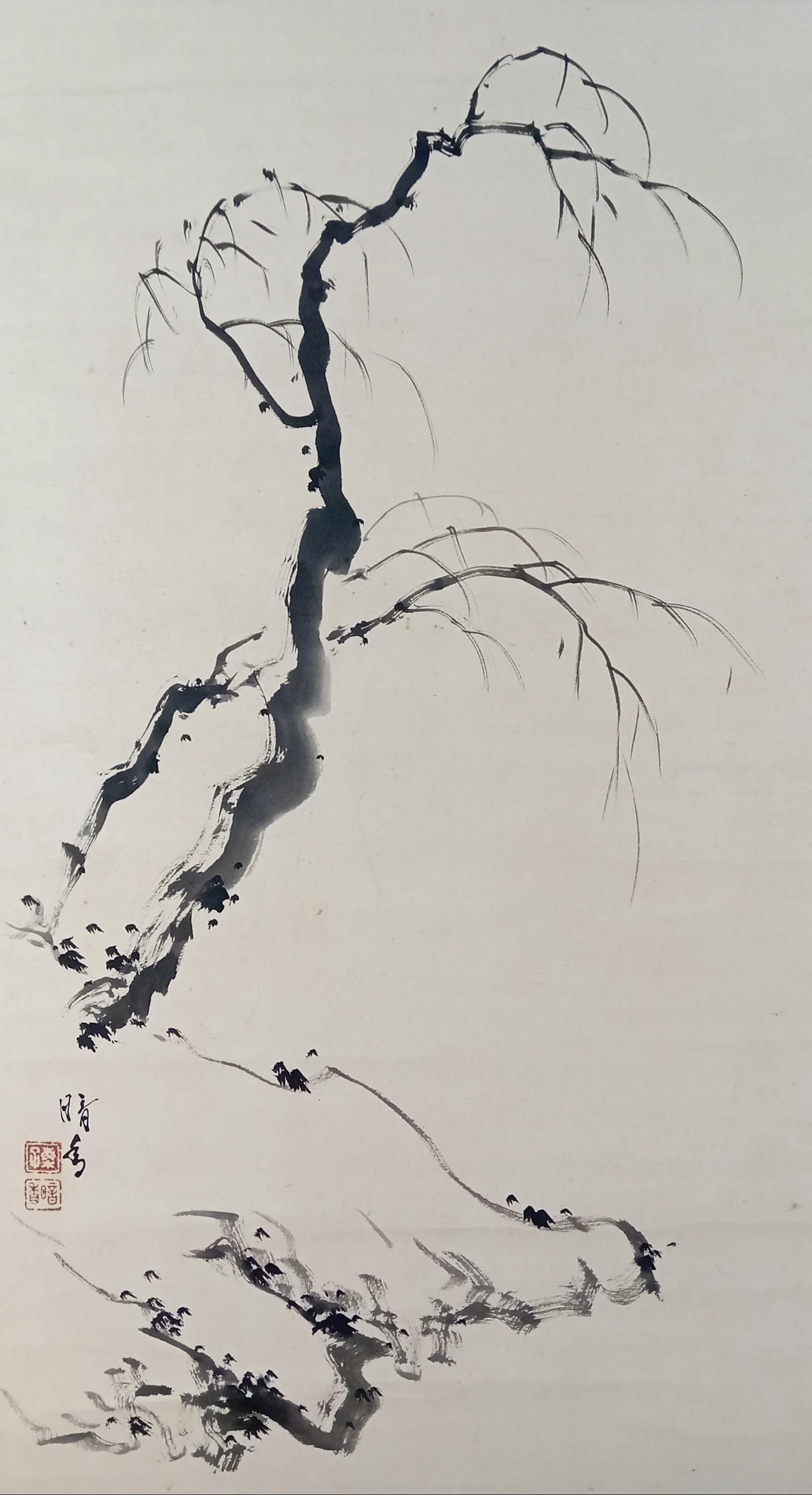 Stylistically aligned with post-war interpretations of suibokuga, valuing empty space, gesture, and contemplative simplicity.