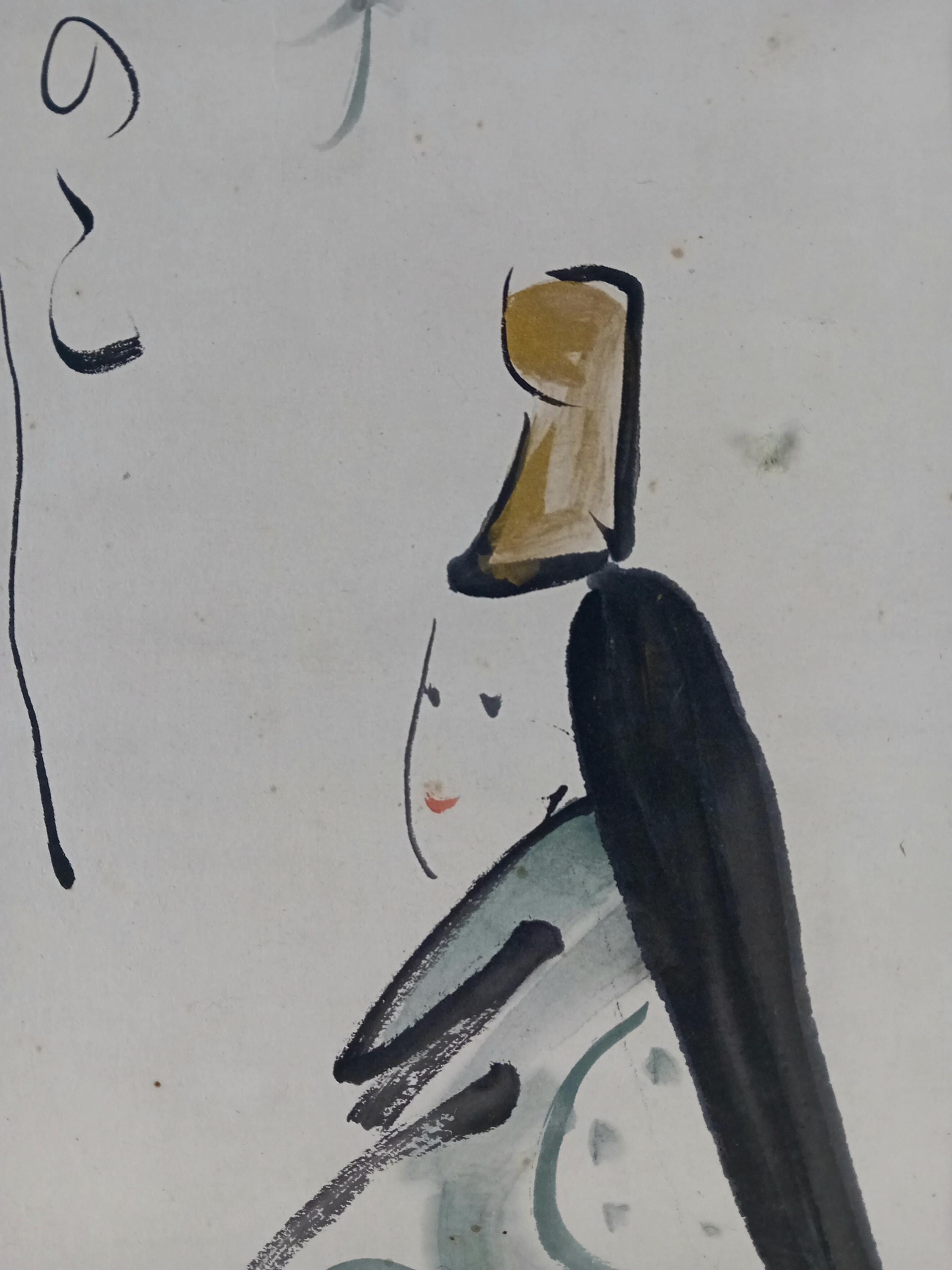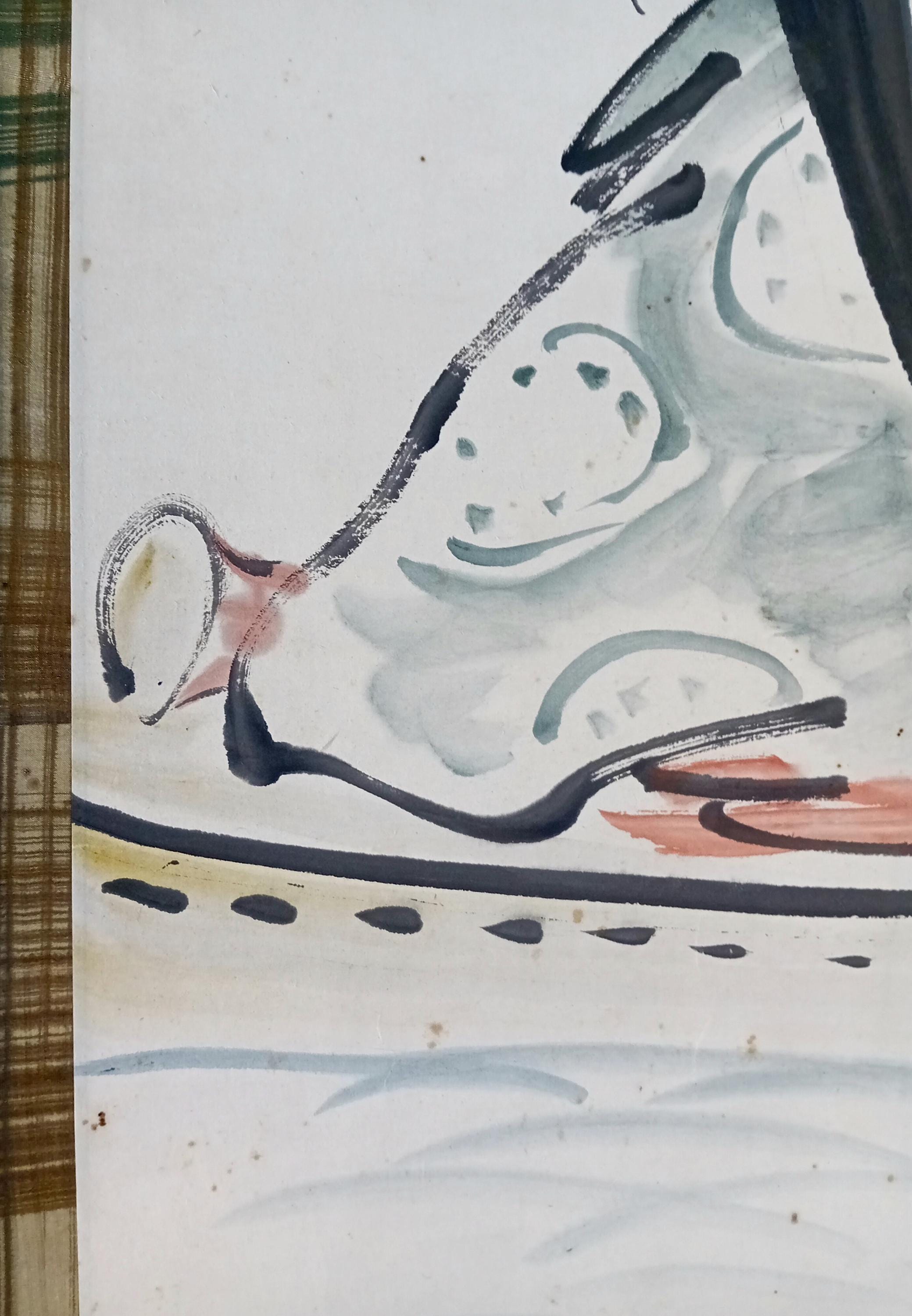 The composition unites painting and calligraphy in the haiga tradition — spontaneous, poetic, and contemplative. The brushwork shows a free, confident hand, characteristic of the mid-Shōwa poetic ink style.
