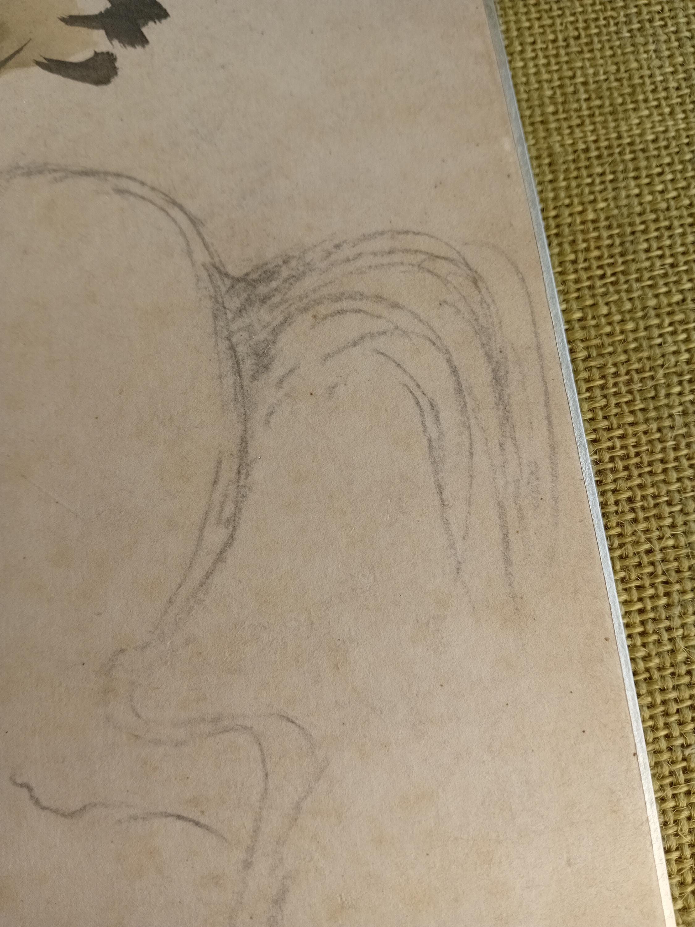 Sumi-e brushwork over a graphite under-drawing in a Nihonga-studio manner.