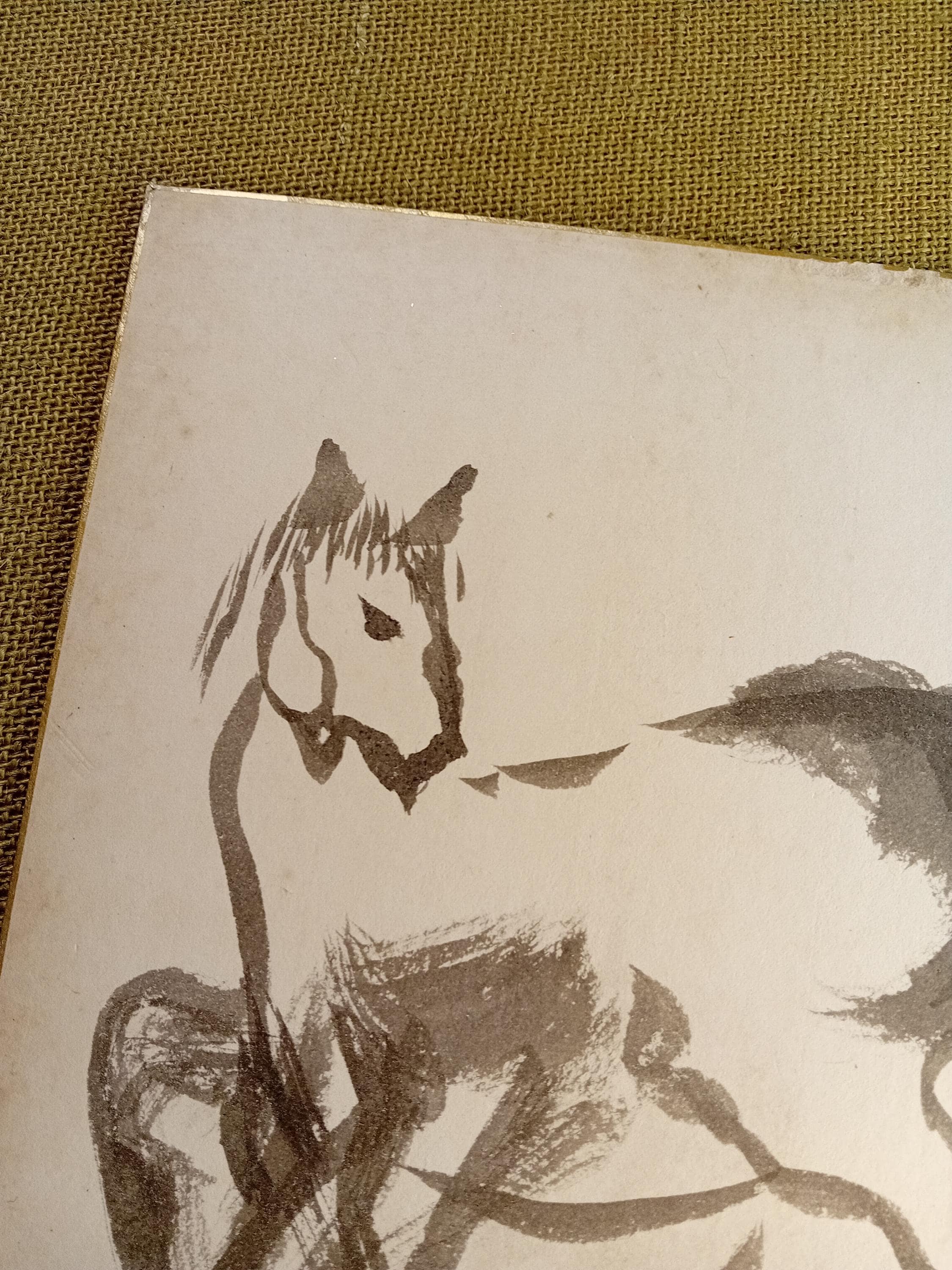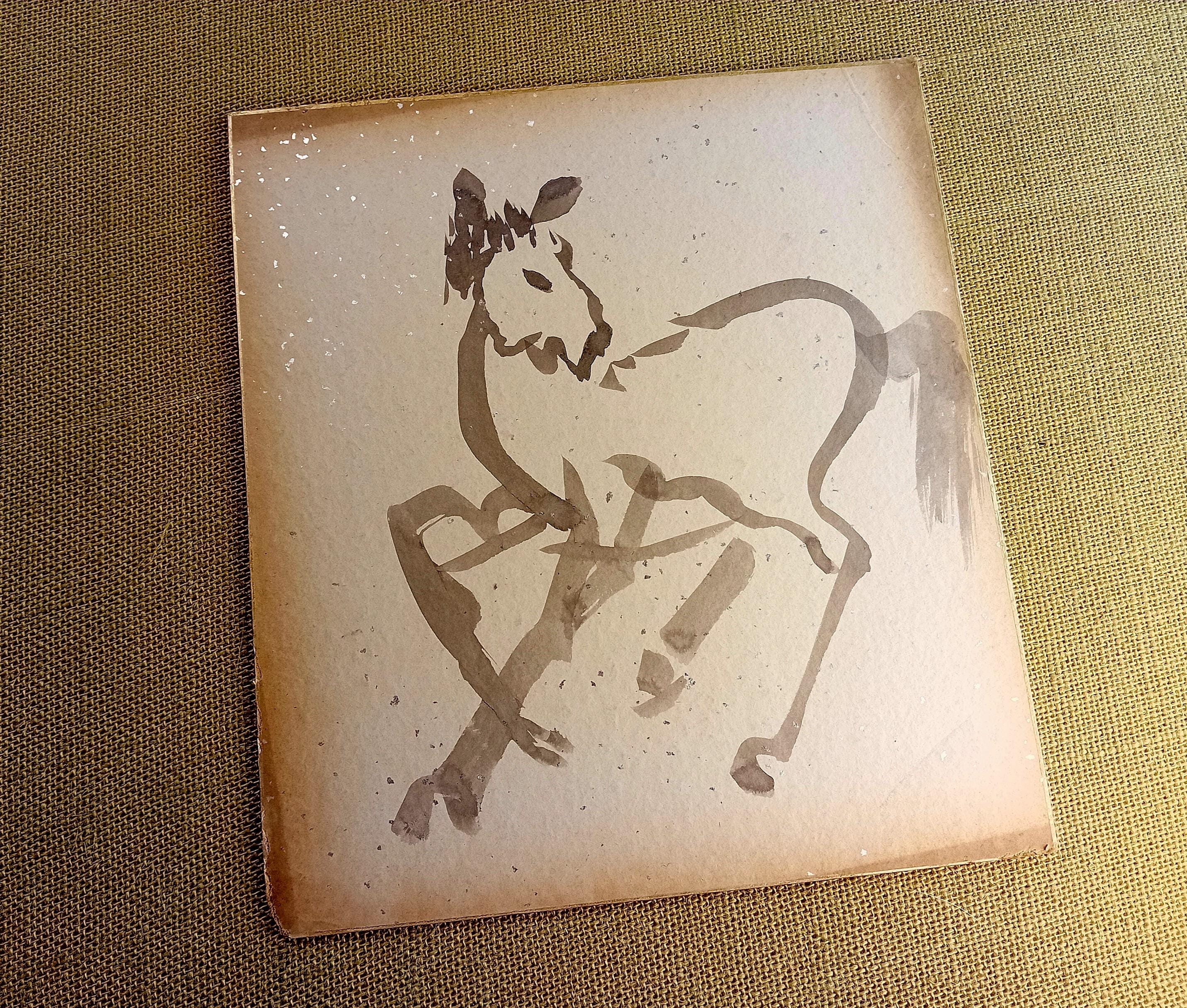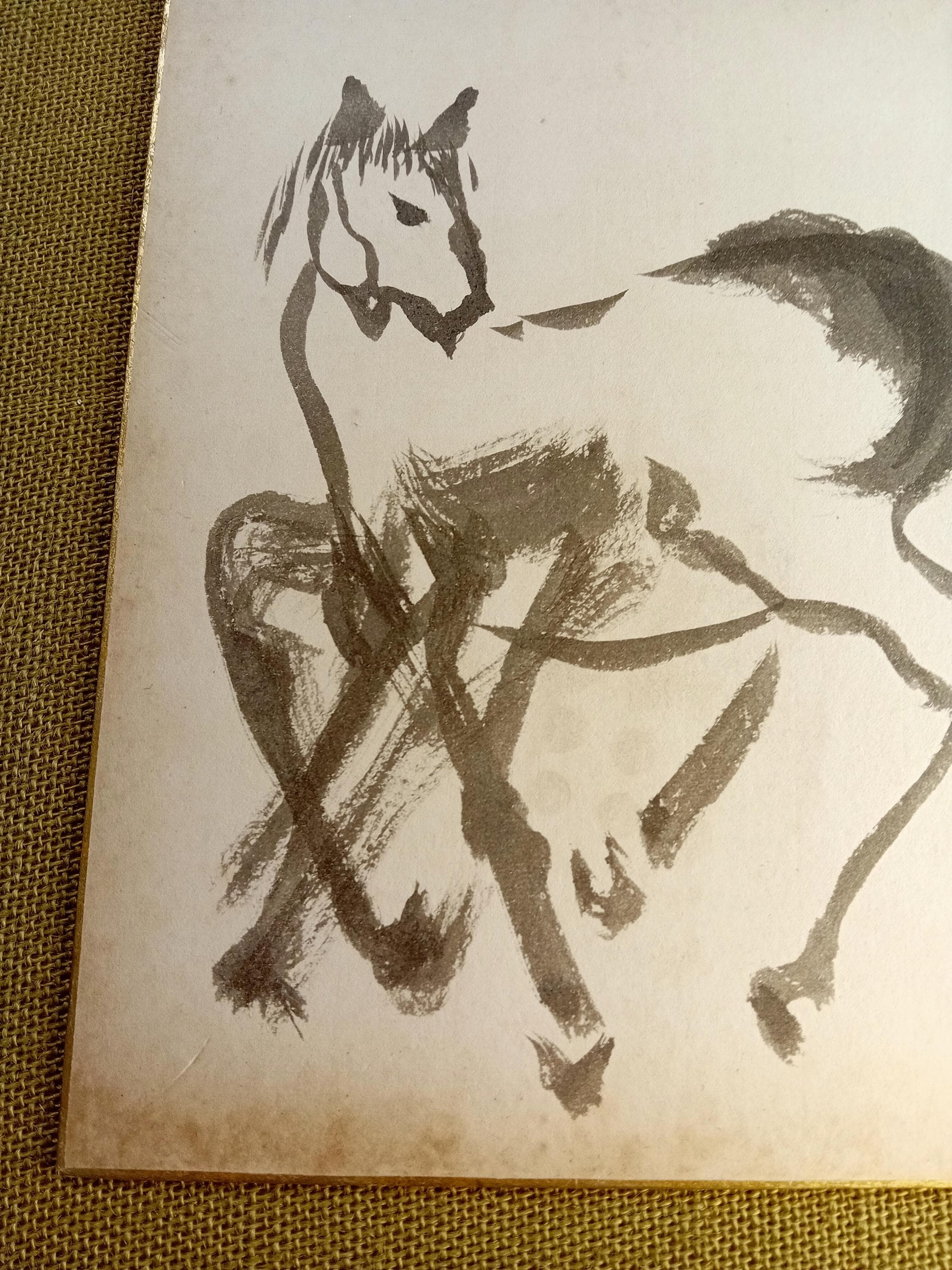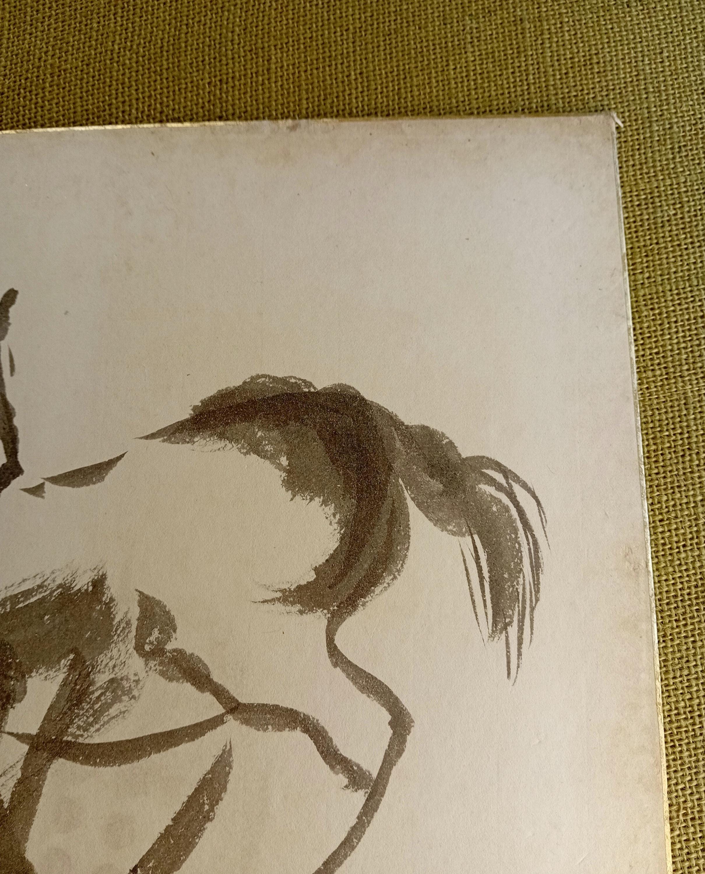 Double-sided Japanese shikishi board with an expressive ink study of a horse.