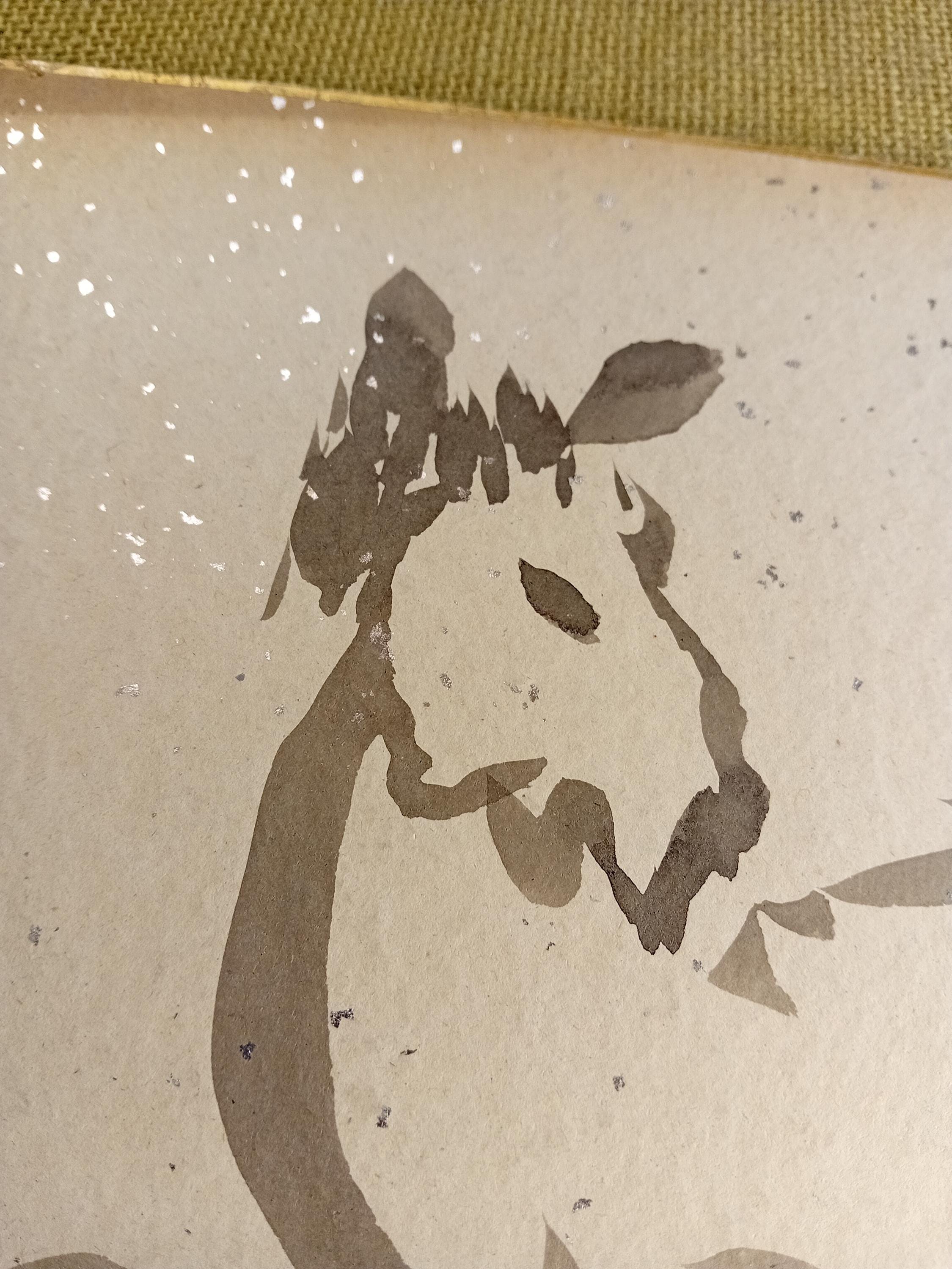 Material: ink on traditional shikishi board with a thin metallic edge.