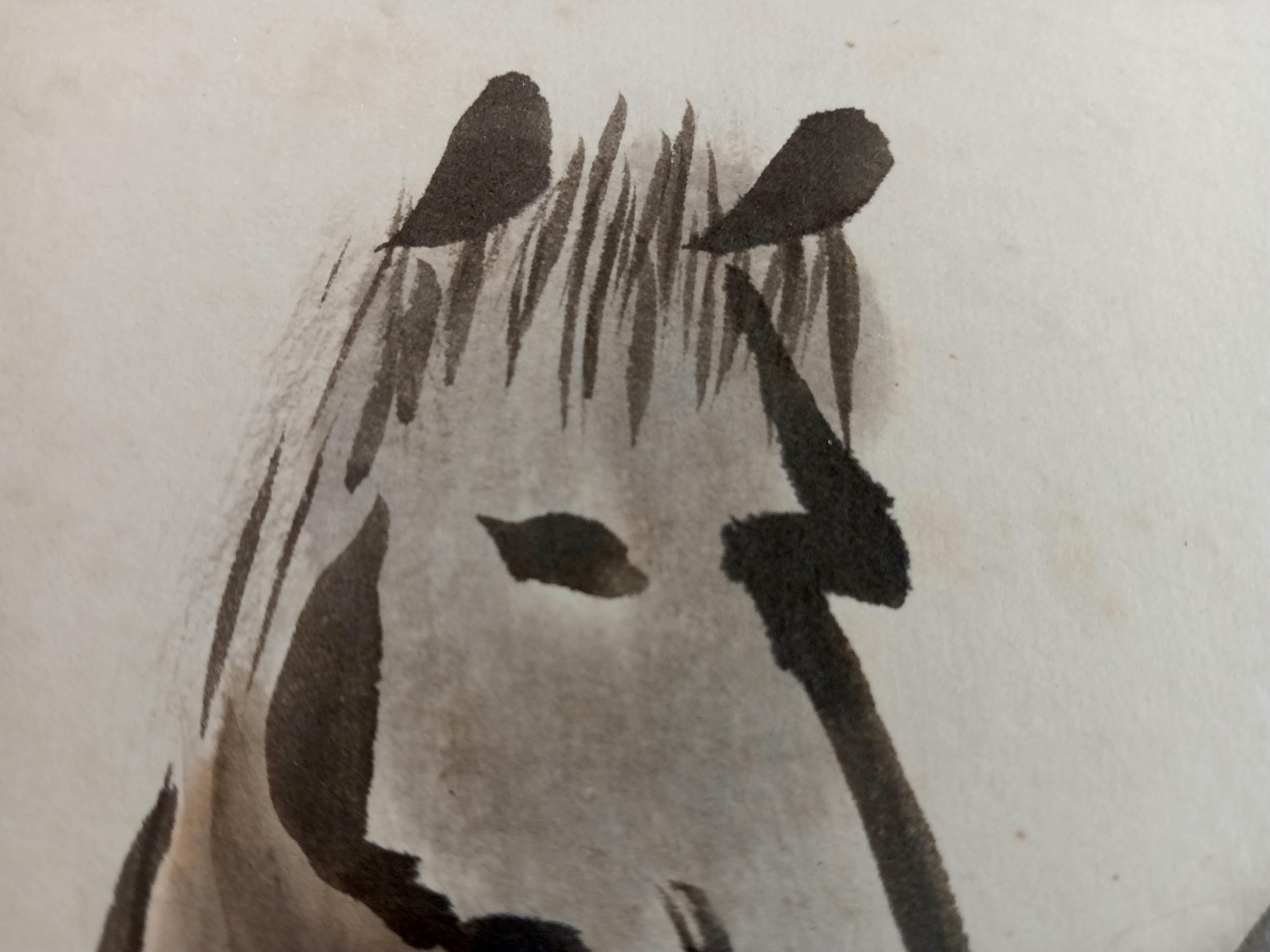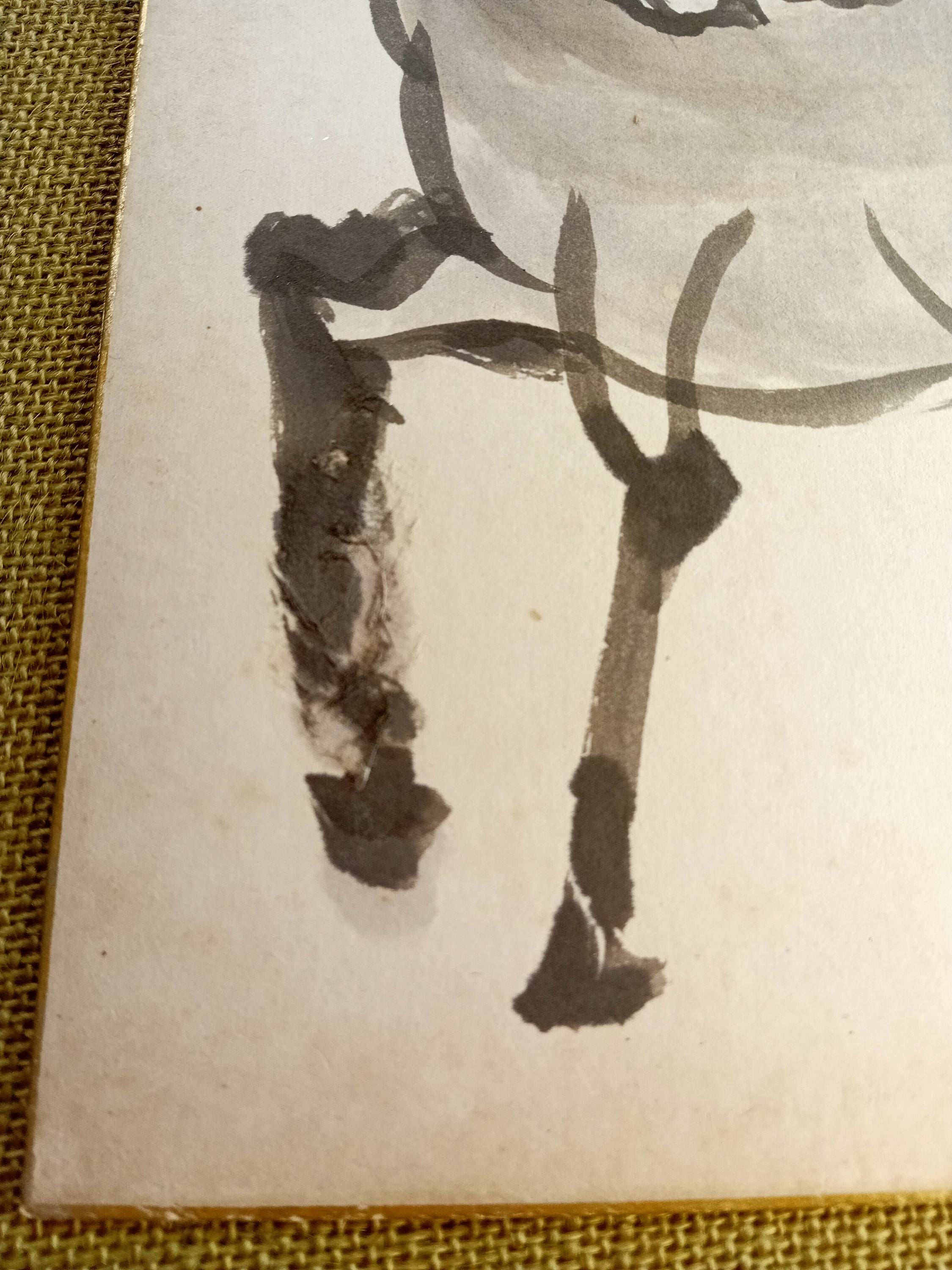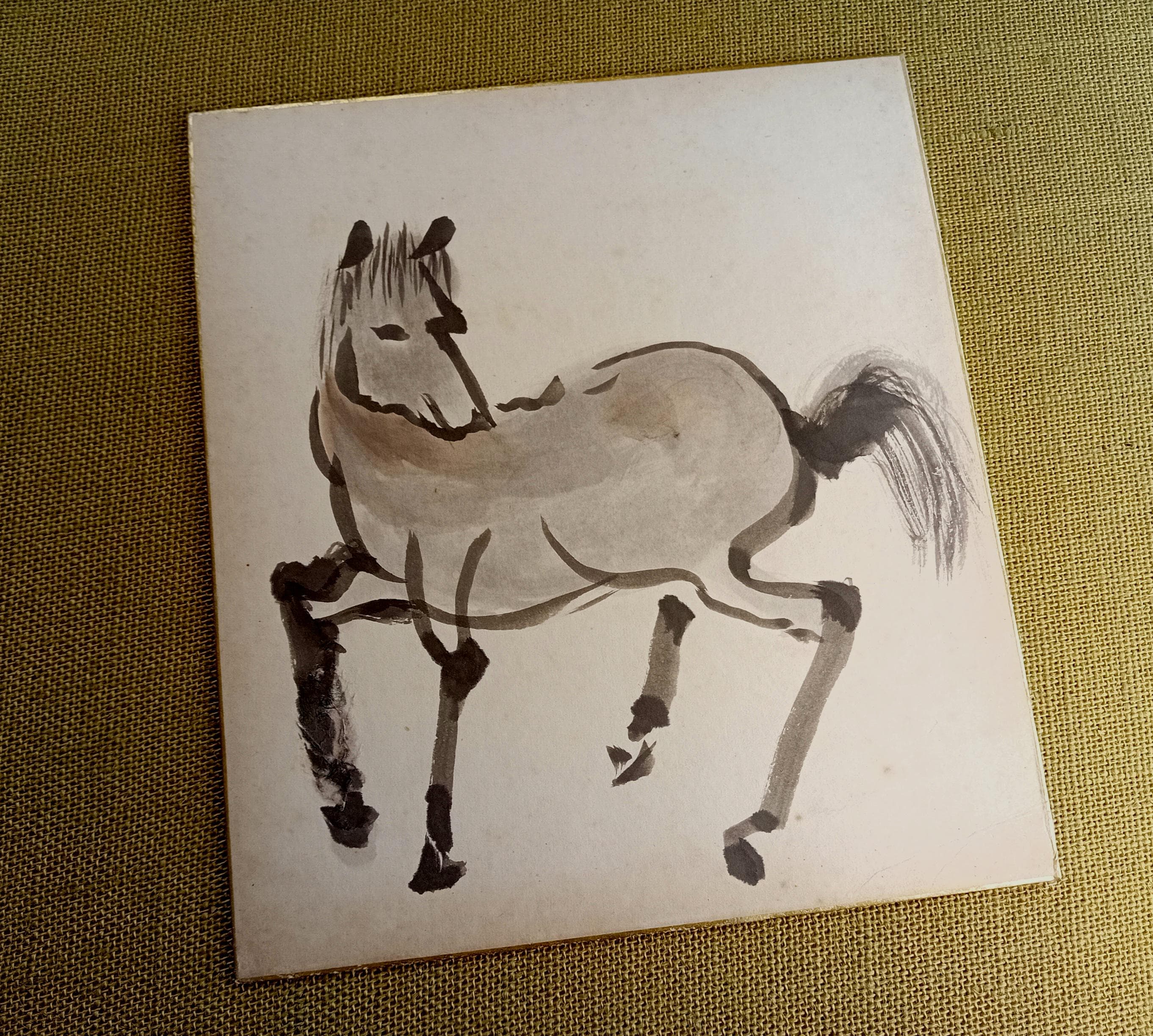 Vintage Japanese double-sided shikishi with two ink-and-wash horse studies, created in the early–mid Shōwa period.