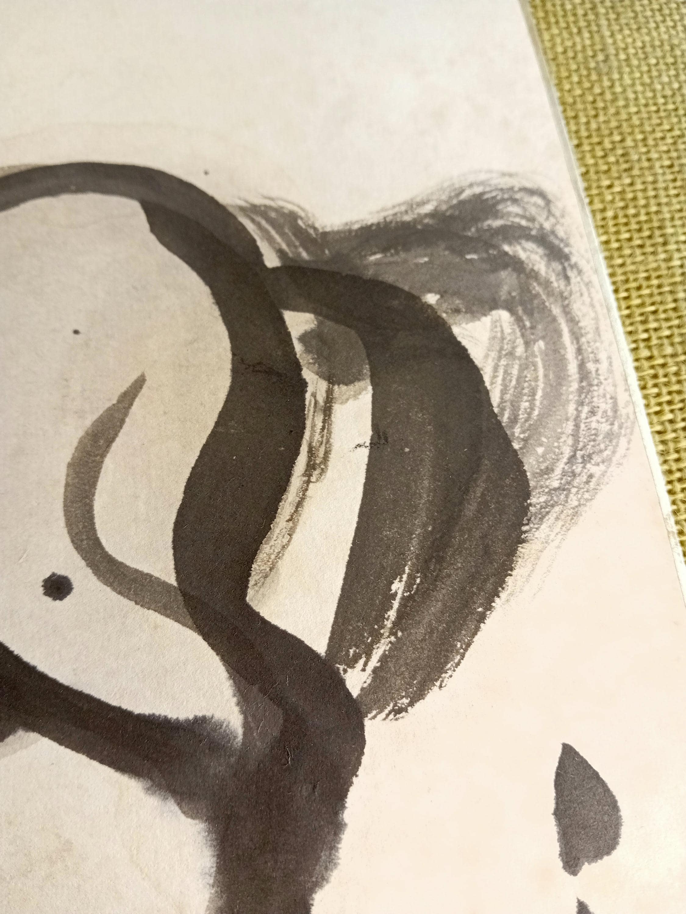 Style note: sumi-e with soft wash modelling and complementary calligraphic gesture.