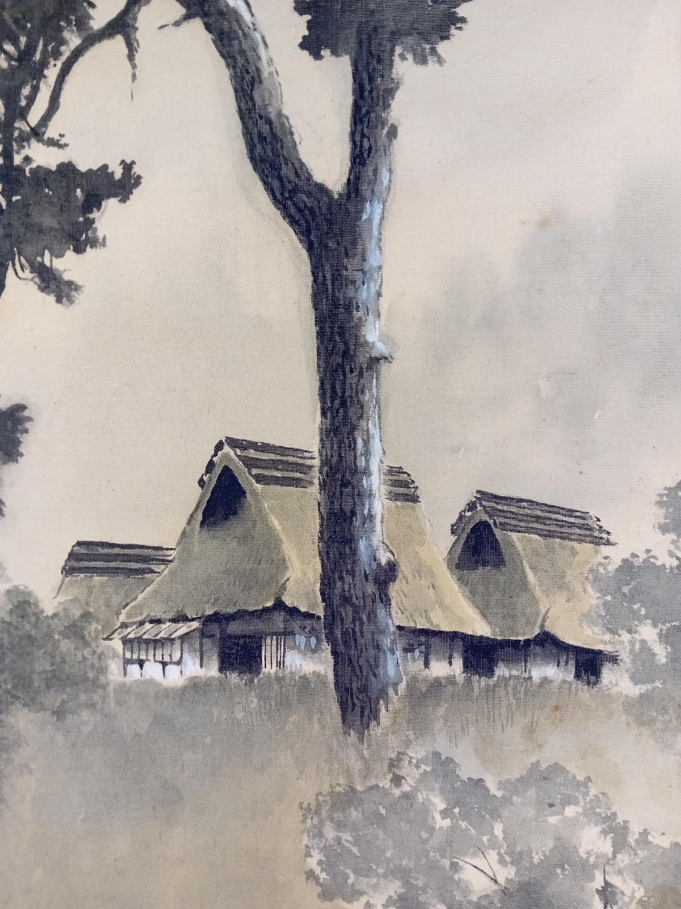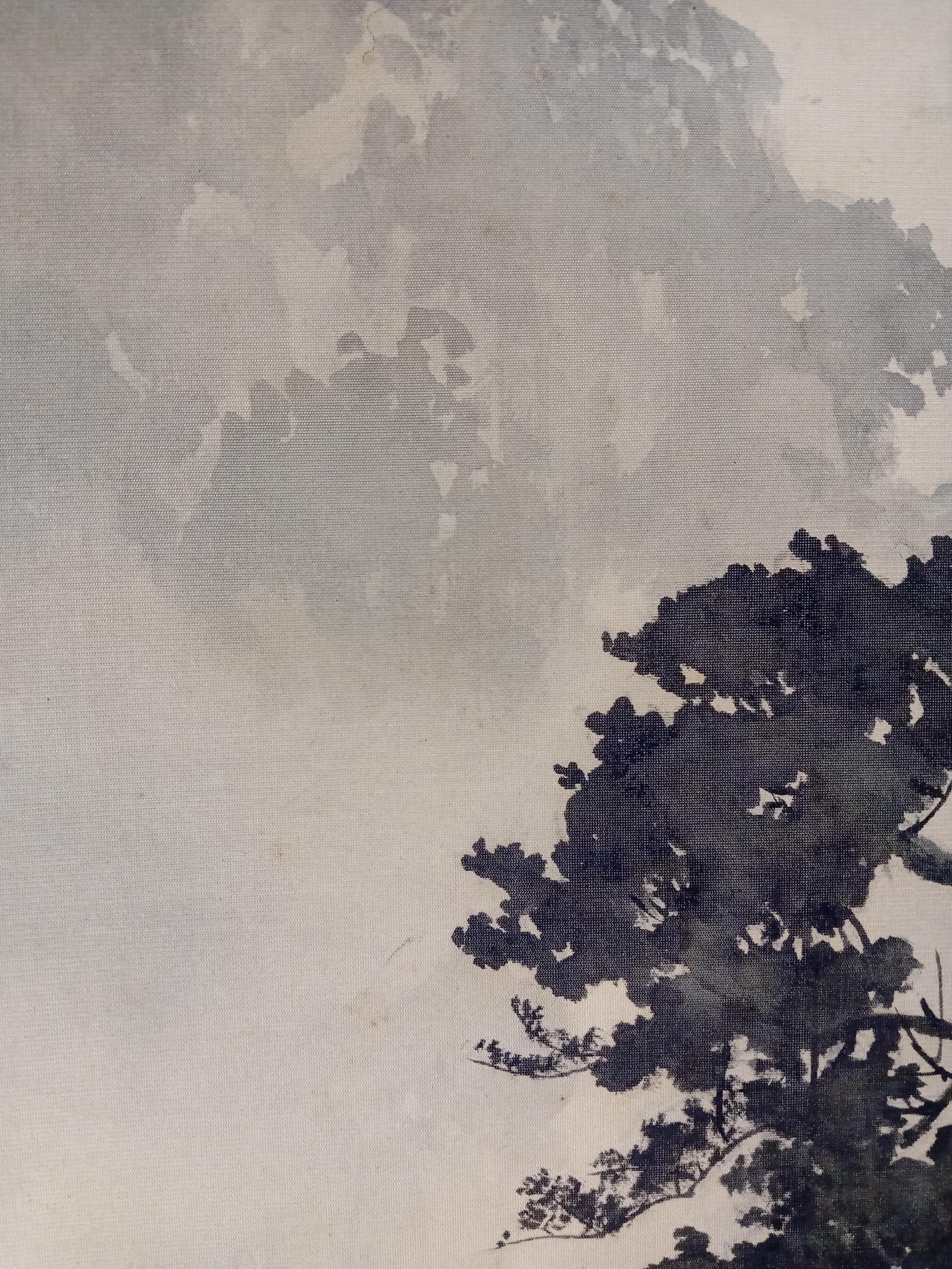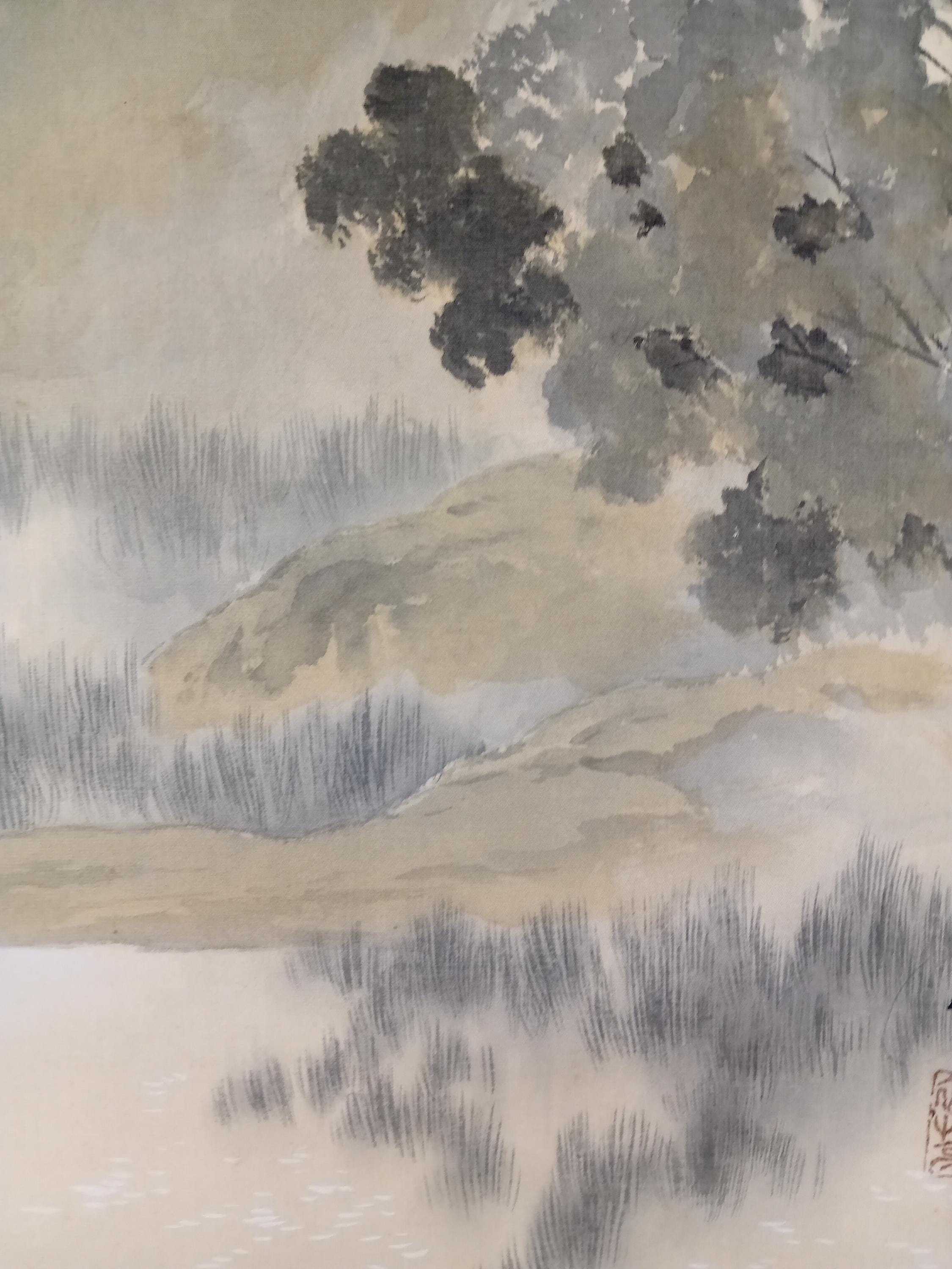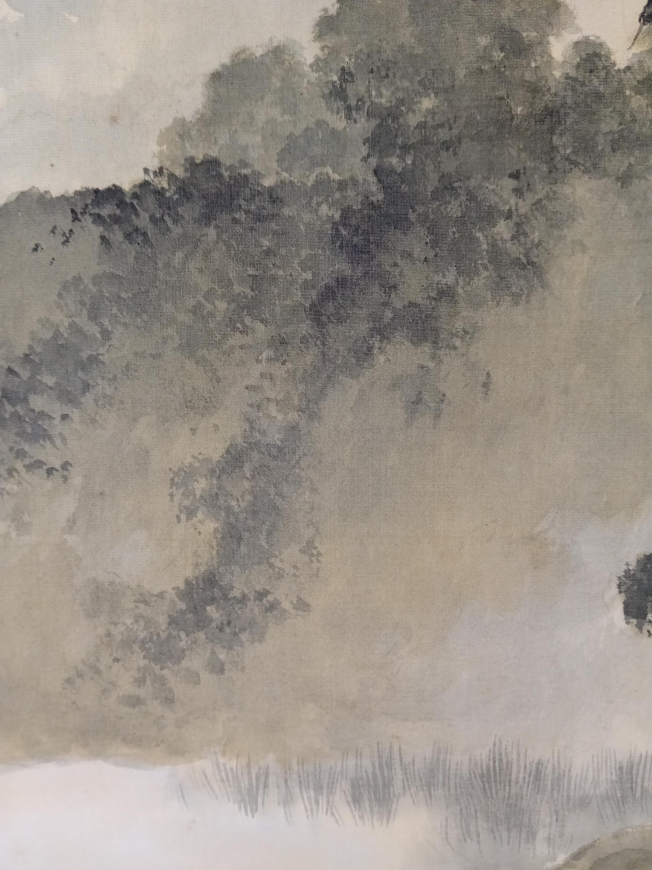 Condition: good vintage condition; natural folds from storage not affecting the painted area. Clean surface with preserved silk texture.