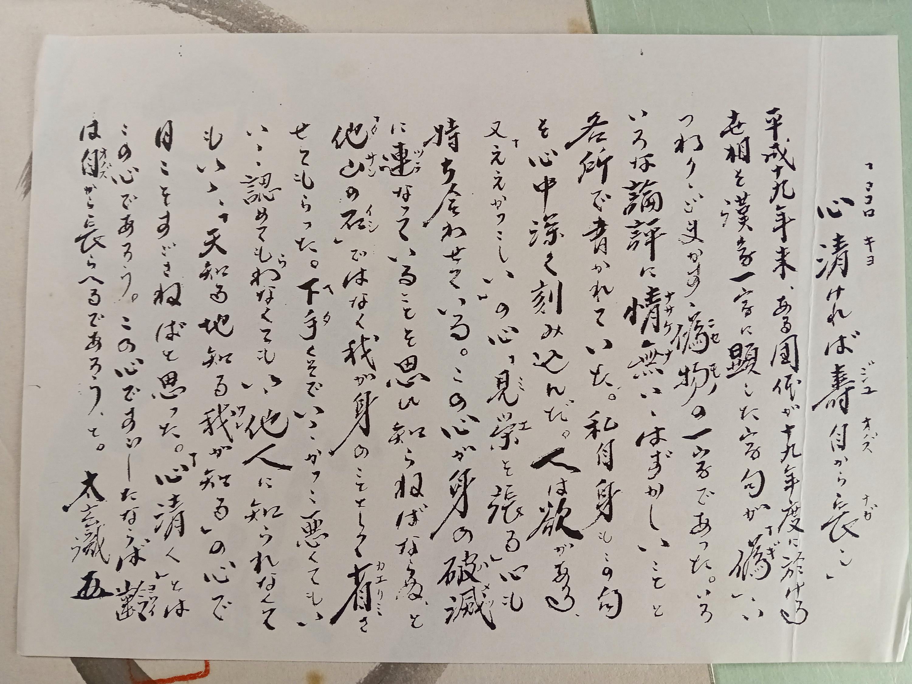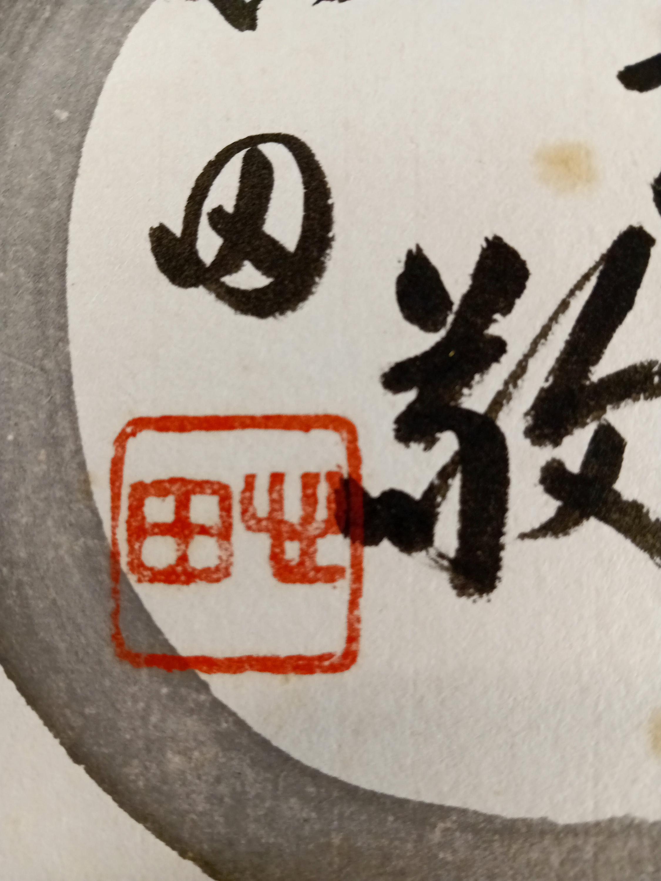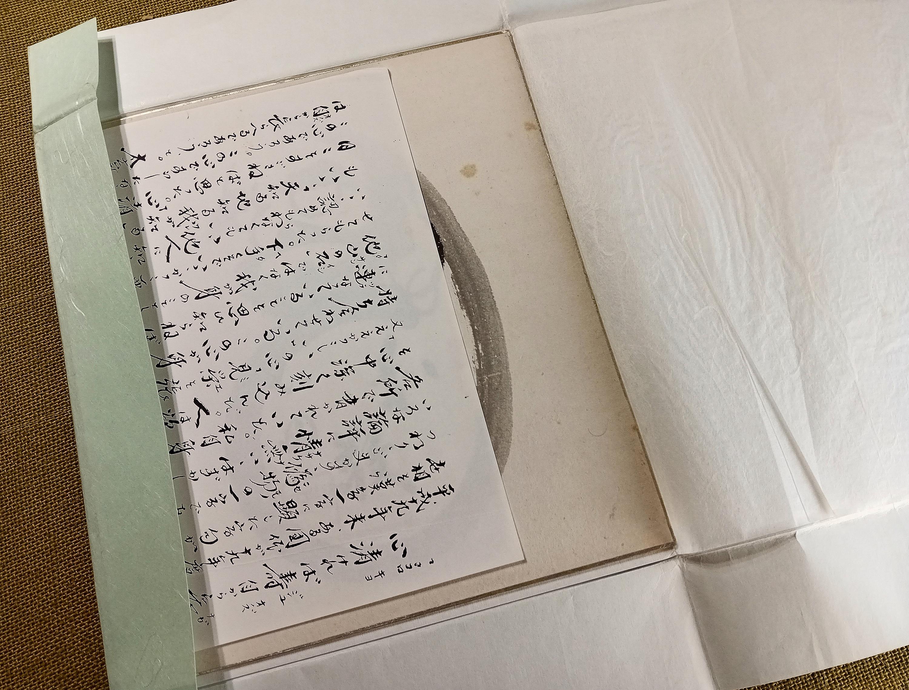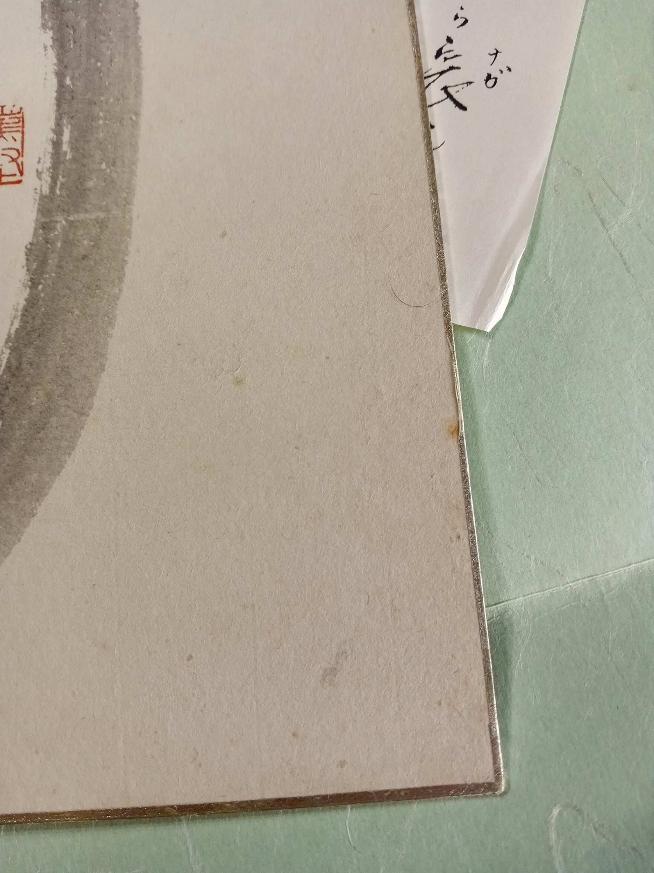 The shikishi bears the artist’s seals and a short handwritten signature in hiragana. The seals on the folder correspond to those on the painting.