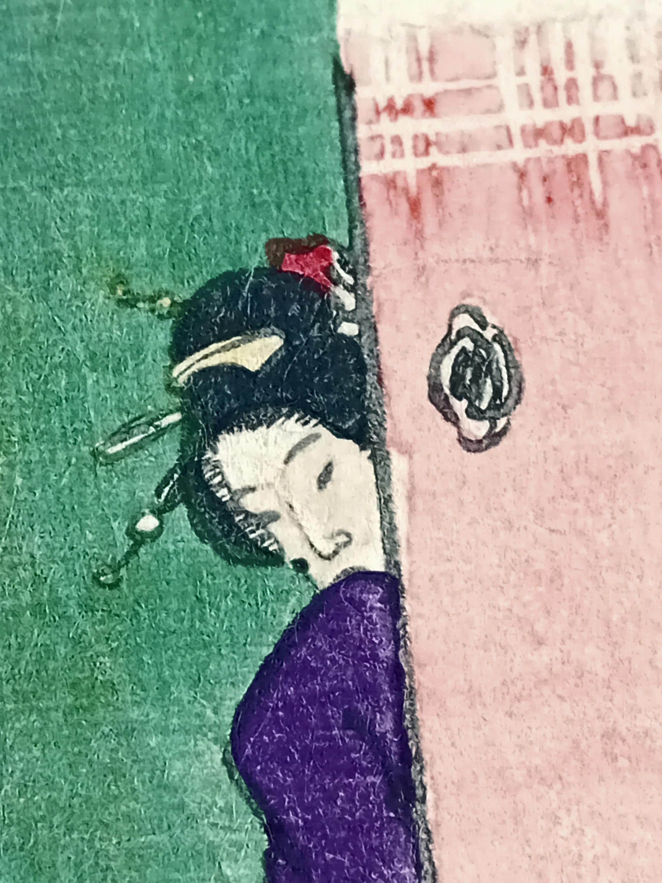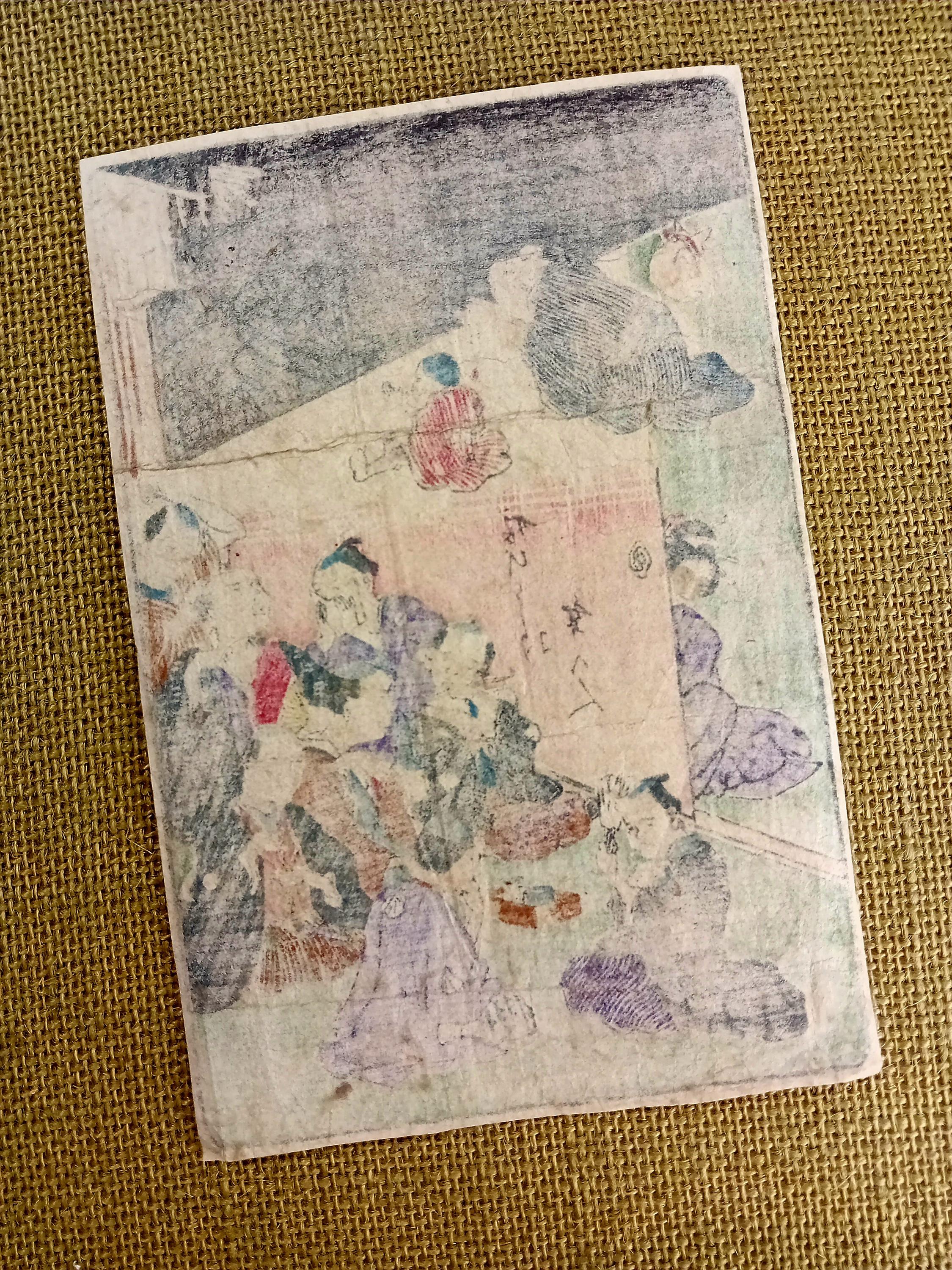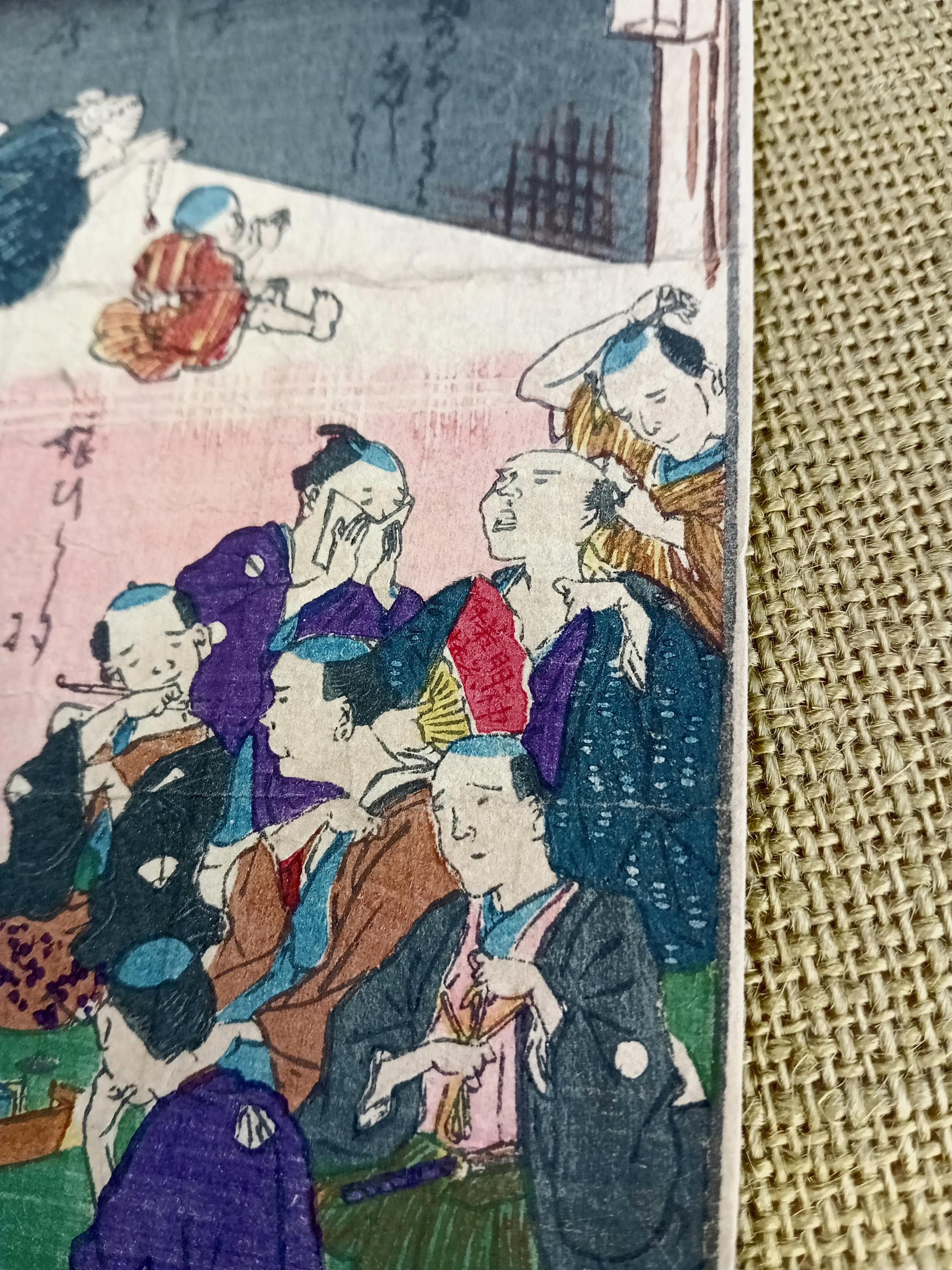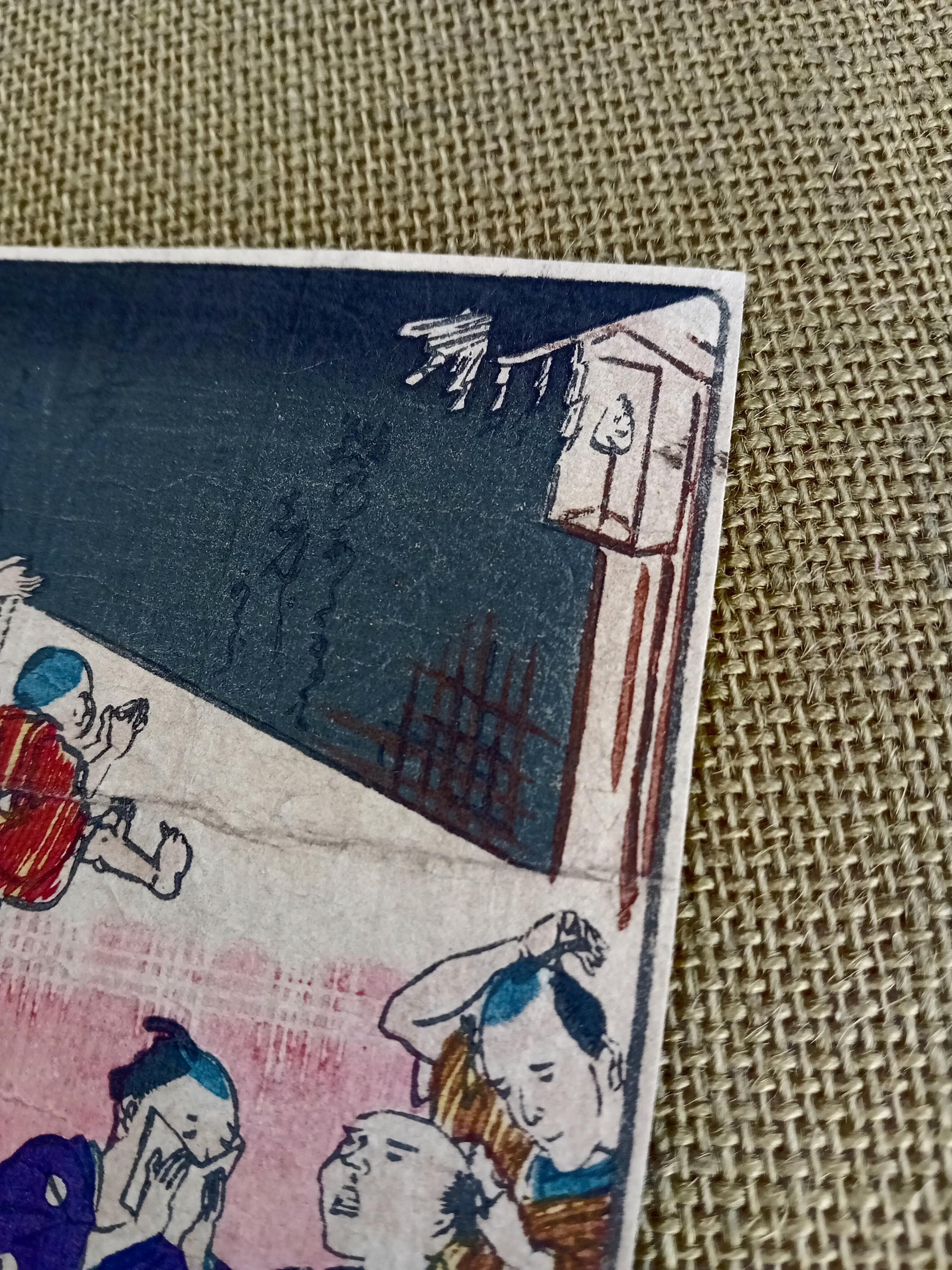 Original Japanese woodblock print from the late Edo to early Meiji period, from the series One Hundred Pictures by Kyosai (Kyosai Hyakuzu) by Kawanabe Kyosai. Printed in nishiki-e technique on traditional washi paper. This sheet comes from authentic nineteenth-century impressions of the series.