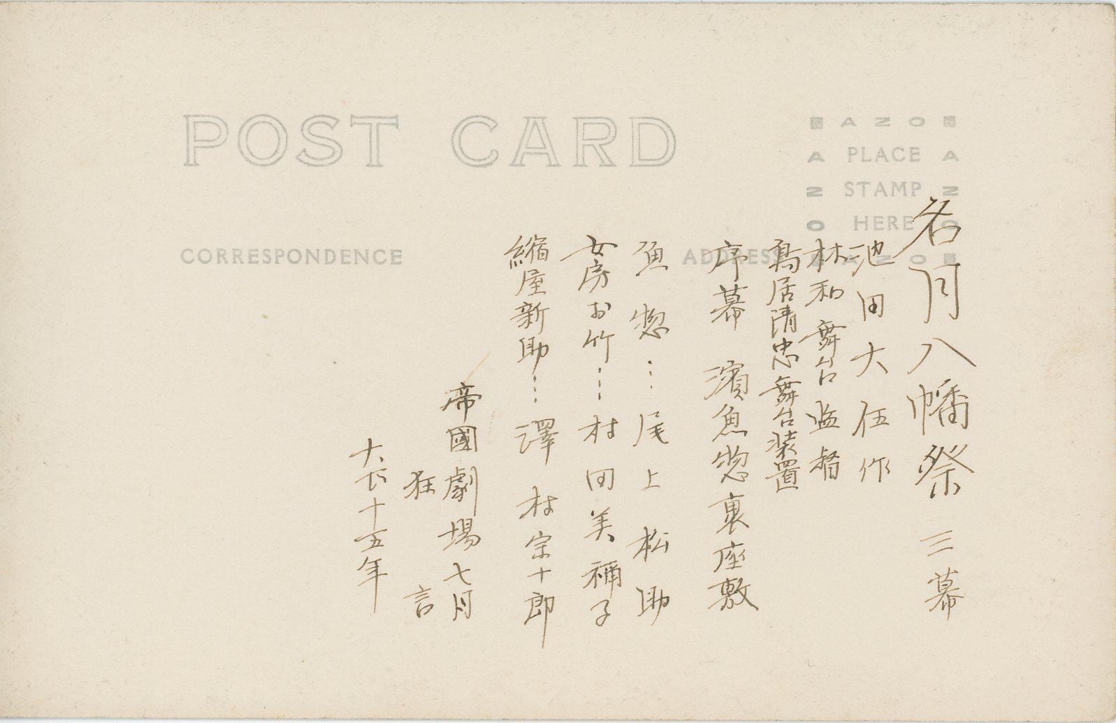 Stage photography (butai-shashin) of the Taishō–Shōwa transition represents an important record of kabuki staging practices, costume design and early 20th-century theatrical aesthetics. Complete surviving groups of this size are increasingly uncommon.