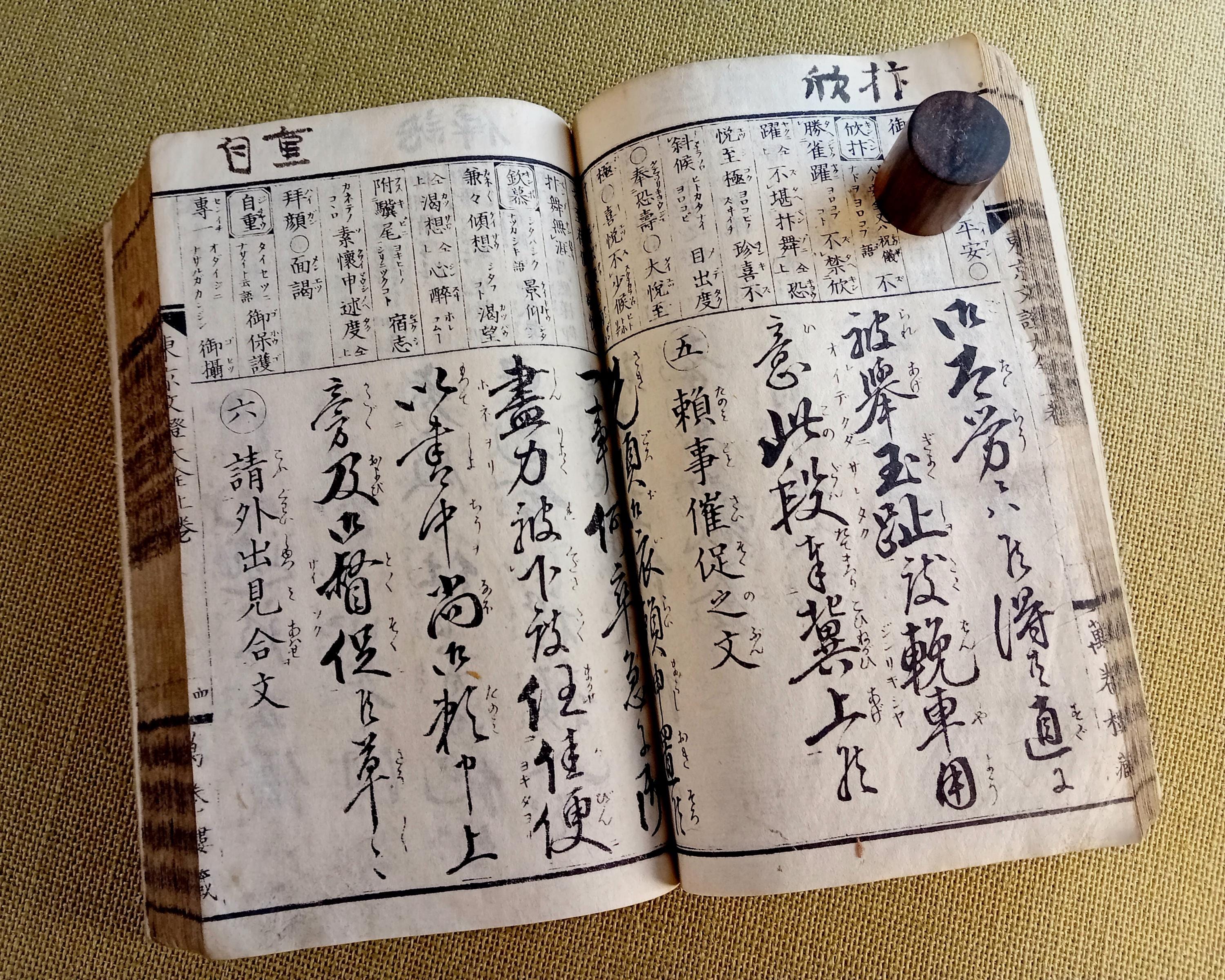 Original Japanese woodblock-printed handbook from the Meiji period (1880s), preserved in its traditional fukuro-toji binding.