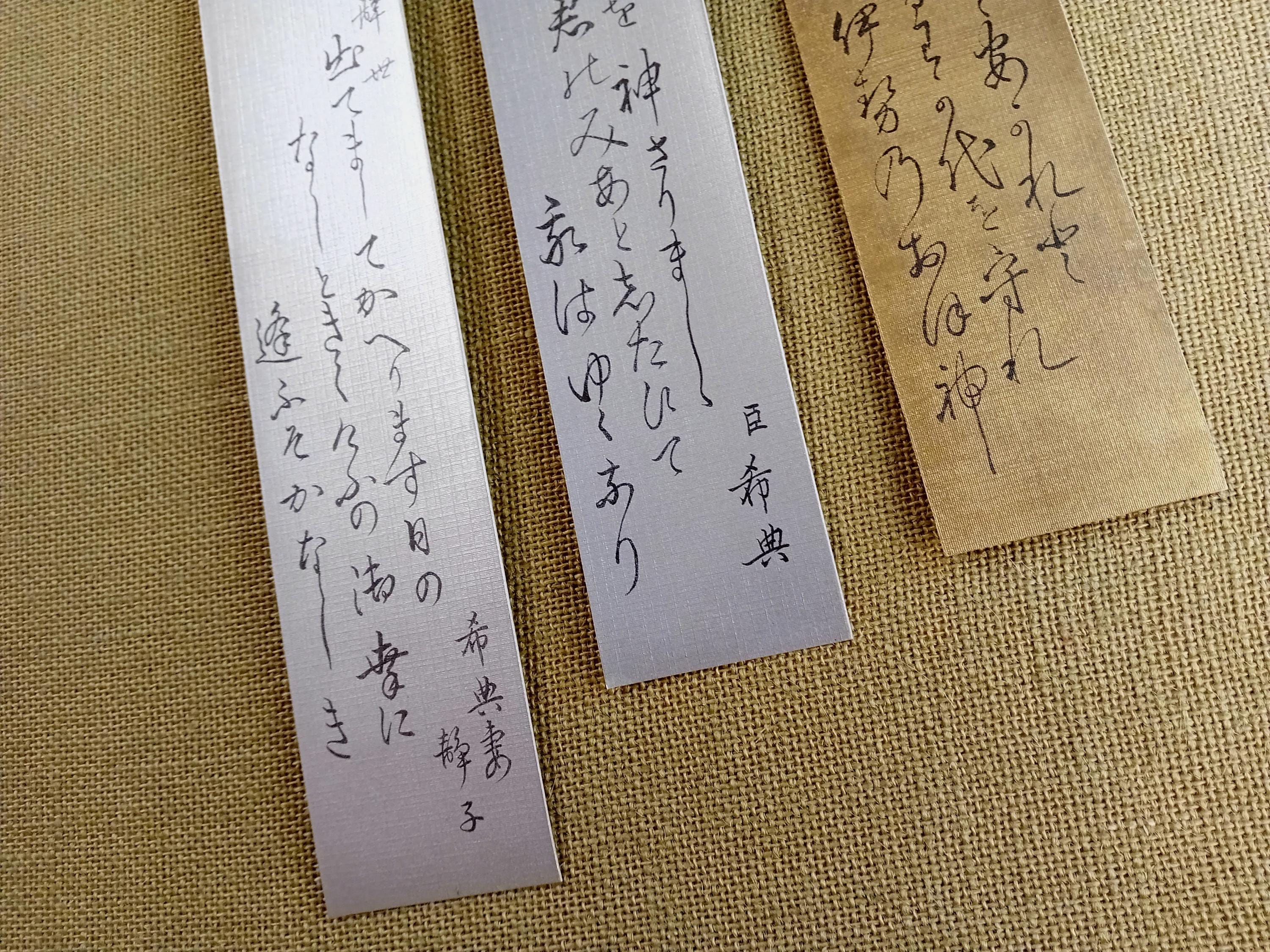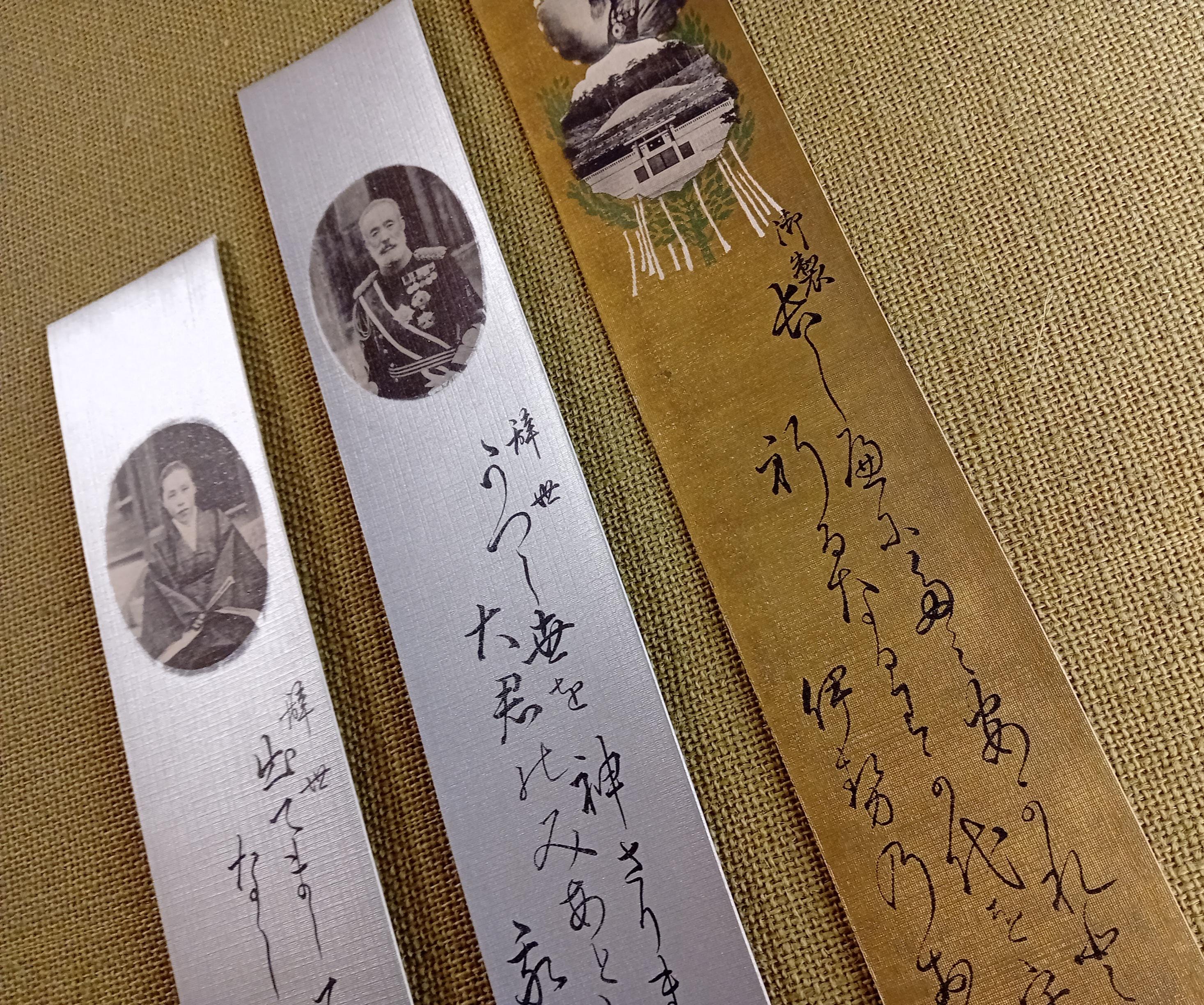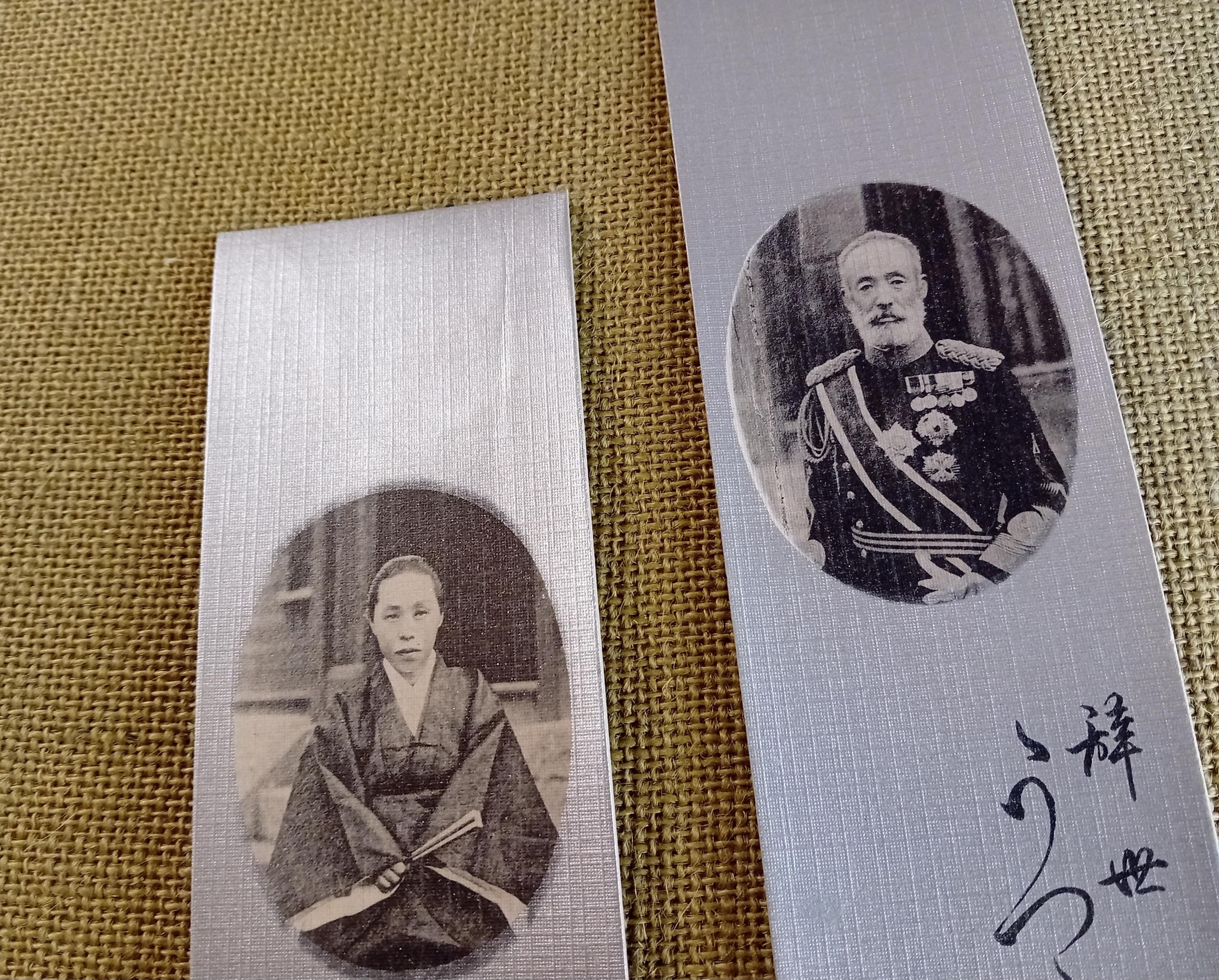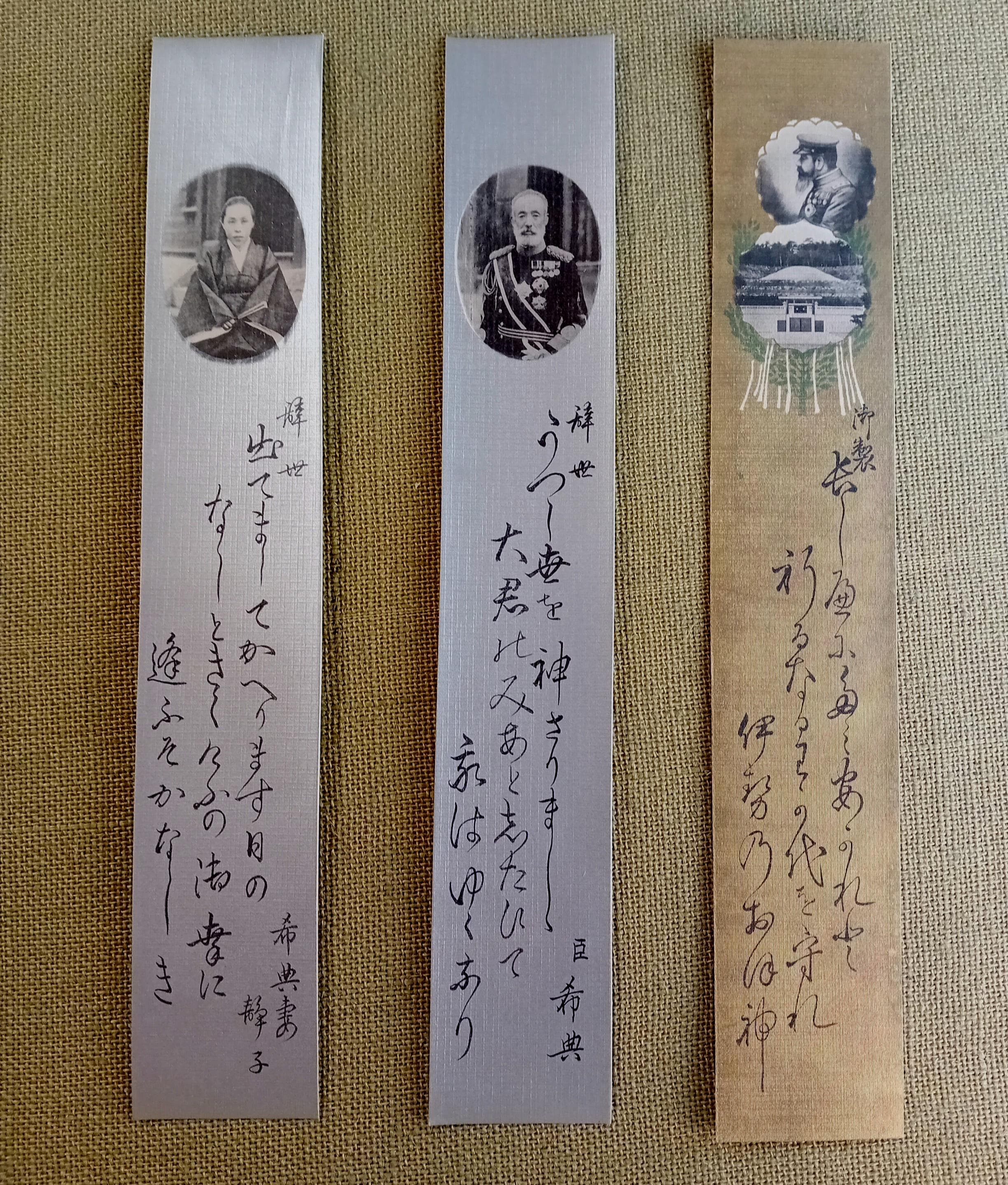 • Shizuko Nogi (乃木静子) — silver-toned tanzaku depicting the wife of General Nogi; the image corresponds to documented museum and archival representations.