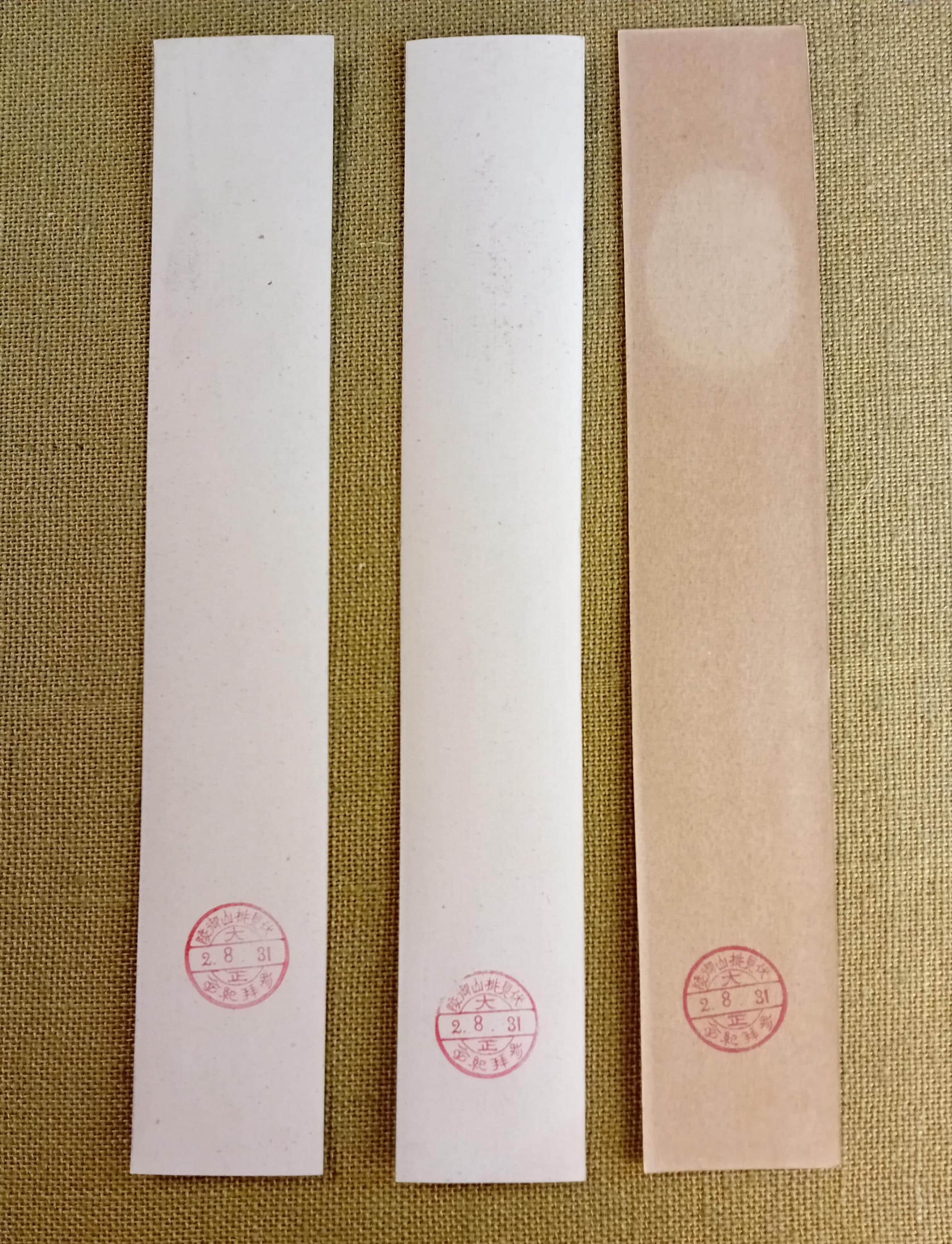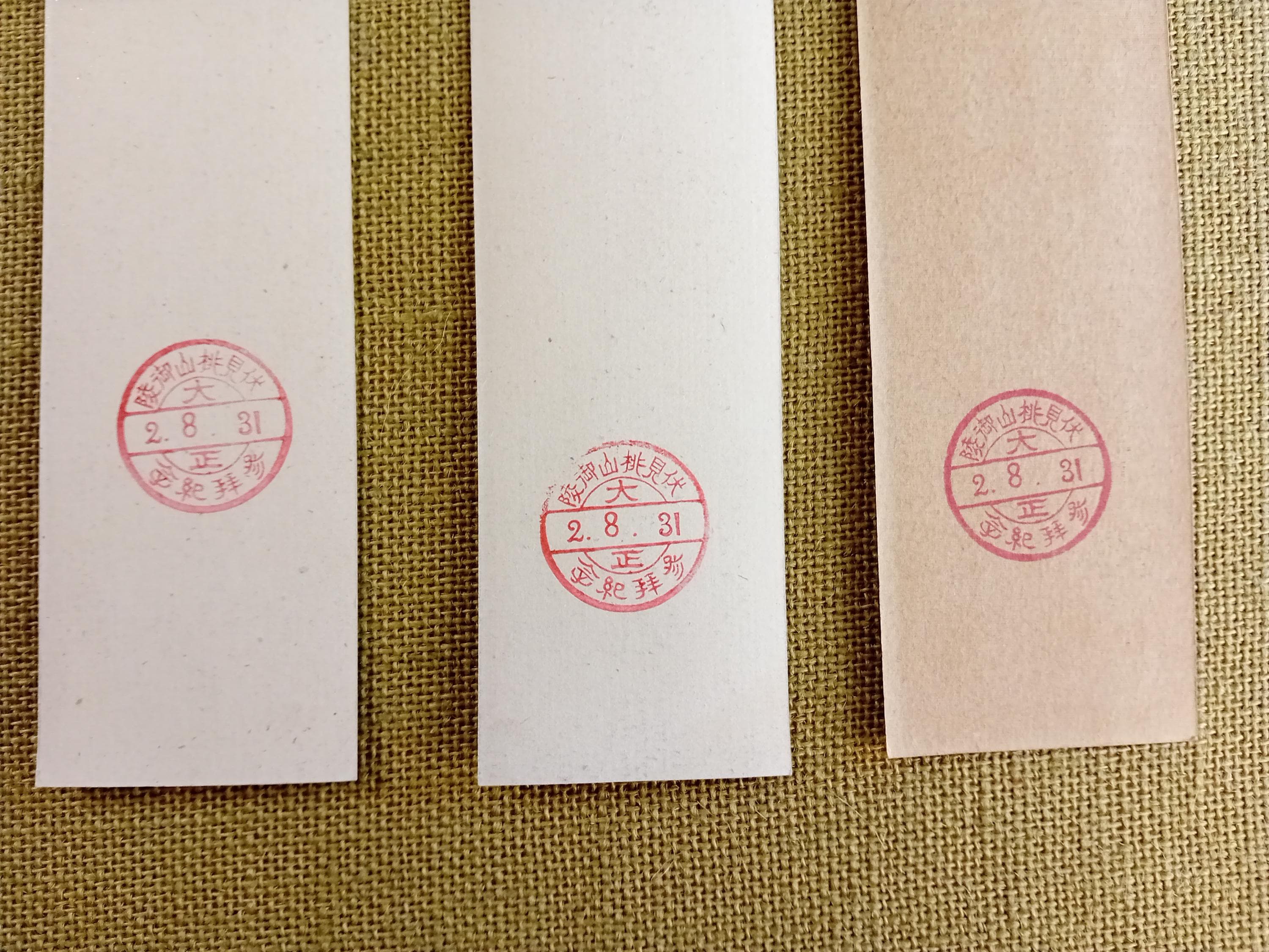 Each tanzaku bears an identical circular red stamp on the reverse with the date 2.8.31 (2 August 1931), indicating the original production period of the set.