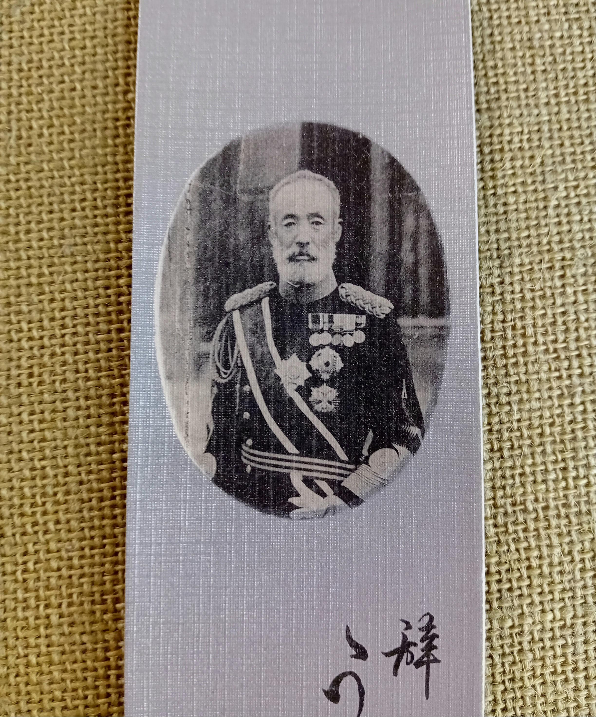 • General Nogi Maresuke (乃木希典) — silver-toned tanzaku with a printed portrait and commemorative text related to his widely known farewell poem (jisei no uta).