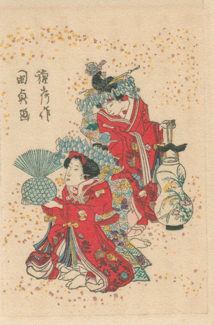 Color woodblock prints, miniature format, turn of the 19th–20th century