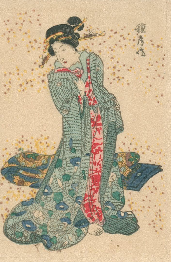 Based on format, printing technique, and decorative features, this set belongs to early modern reprints produced around the turn of the 19th–20th century, faithfully reproducing Edo-period compositions by Kunisada. These are not Edo-period originals, but authentic antique woodblock prints intended for collecting and appreciation at the time of issue.