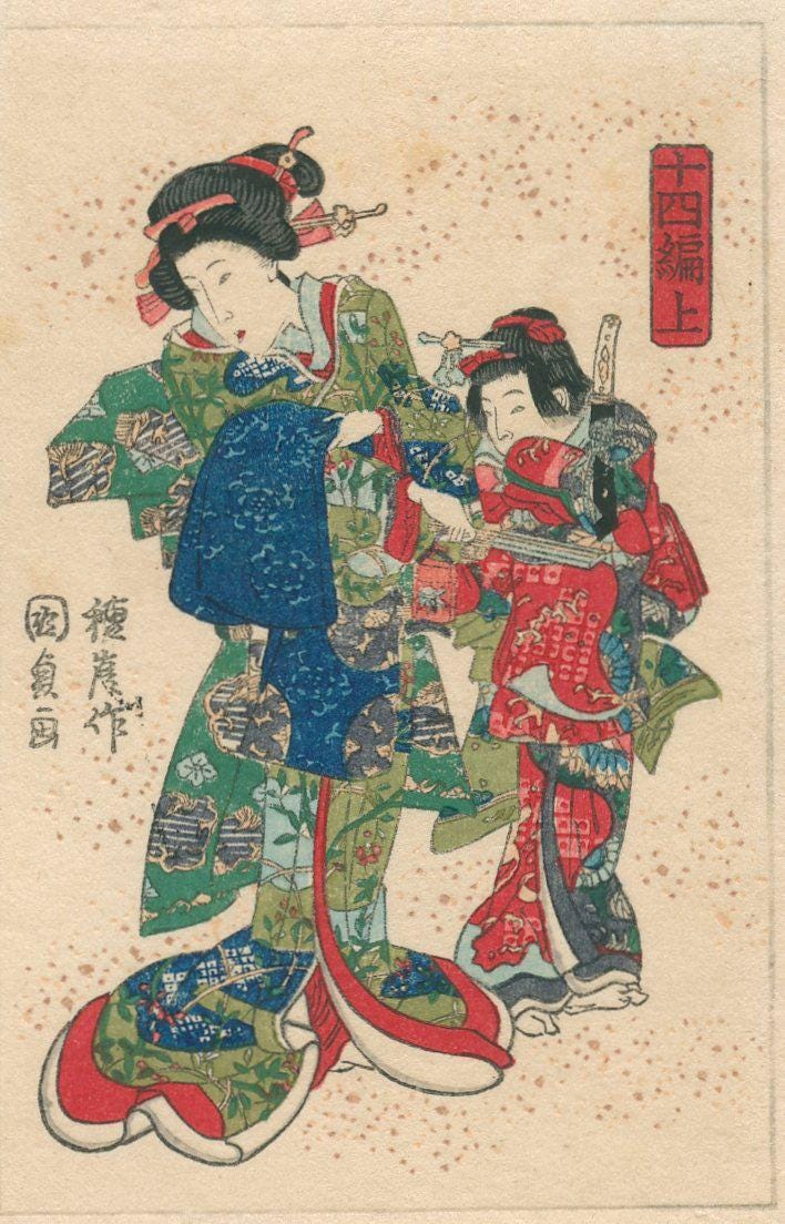 Nise Murasaki Inaka Genji is a well-known illustrated series based on a popular Edo-period novel by Ryutei Tanehiko, with original designs by Utagawa Kunisada (Toyokuni III).