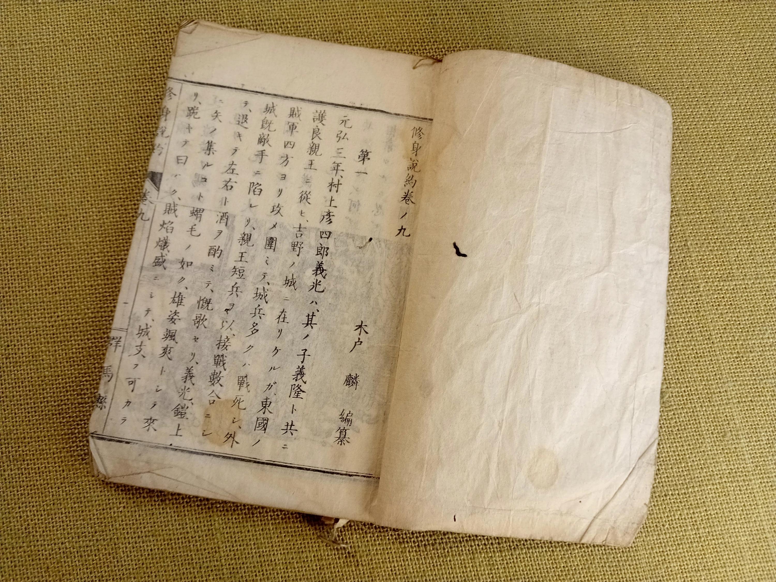 An antique Japanese wahon book with stitched binding, published during the Meiji period.