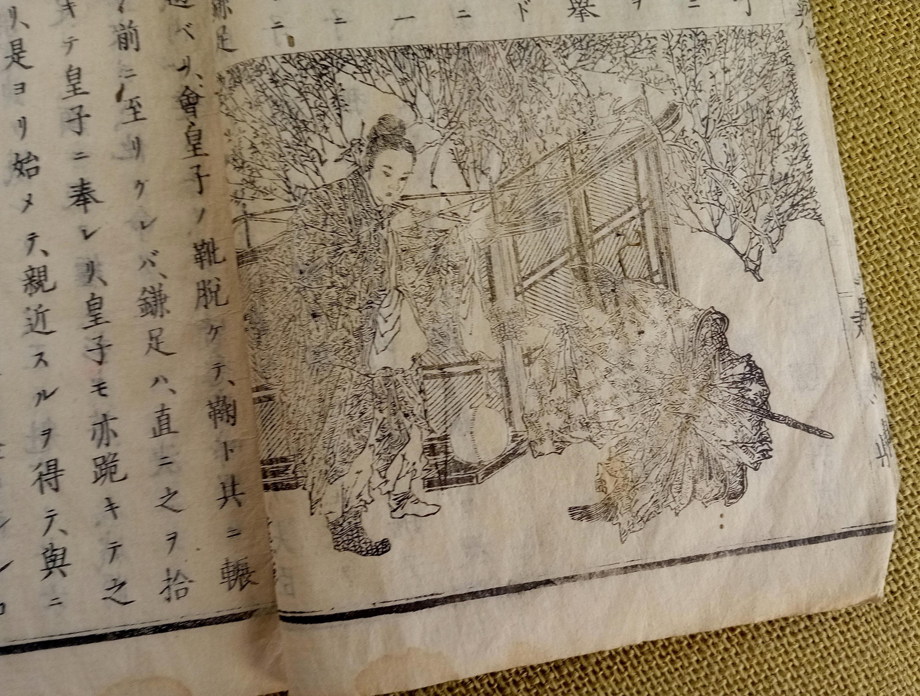 Illustrated educational book, late 19th century Japanese woodblock printing.