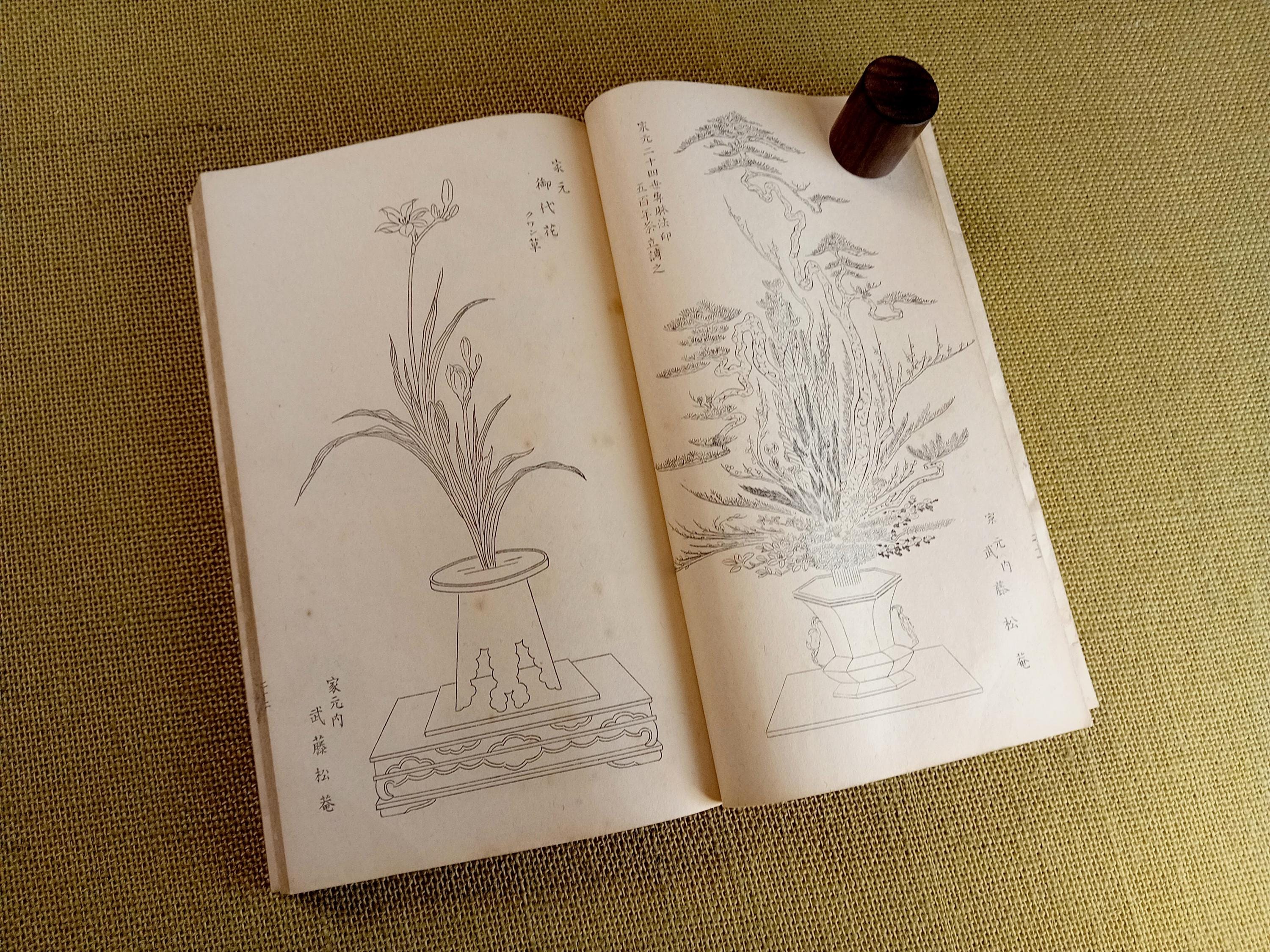 Japanese ikebana instructional book issued by the Ikenobo school. Internal educational publication with illustrations and explanatory text.
