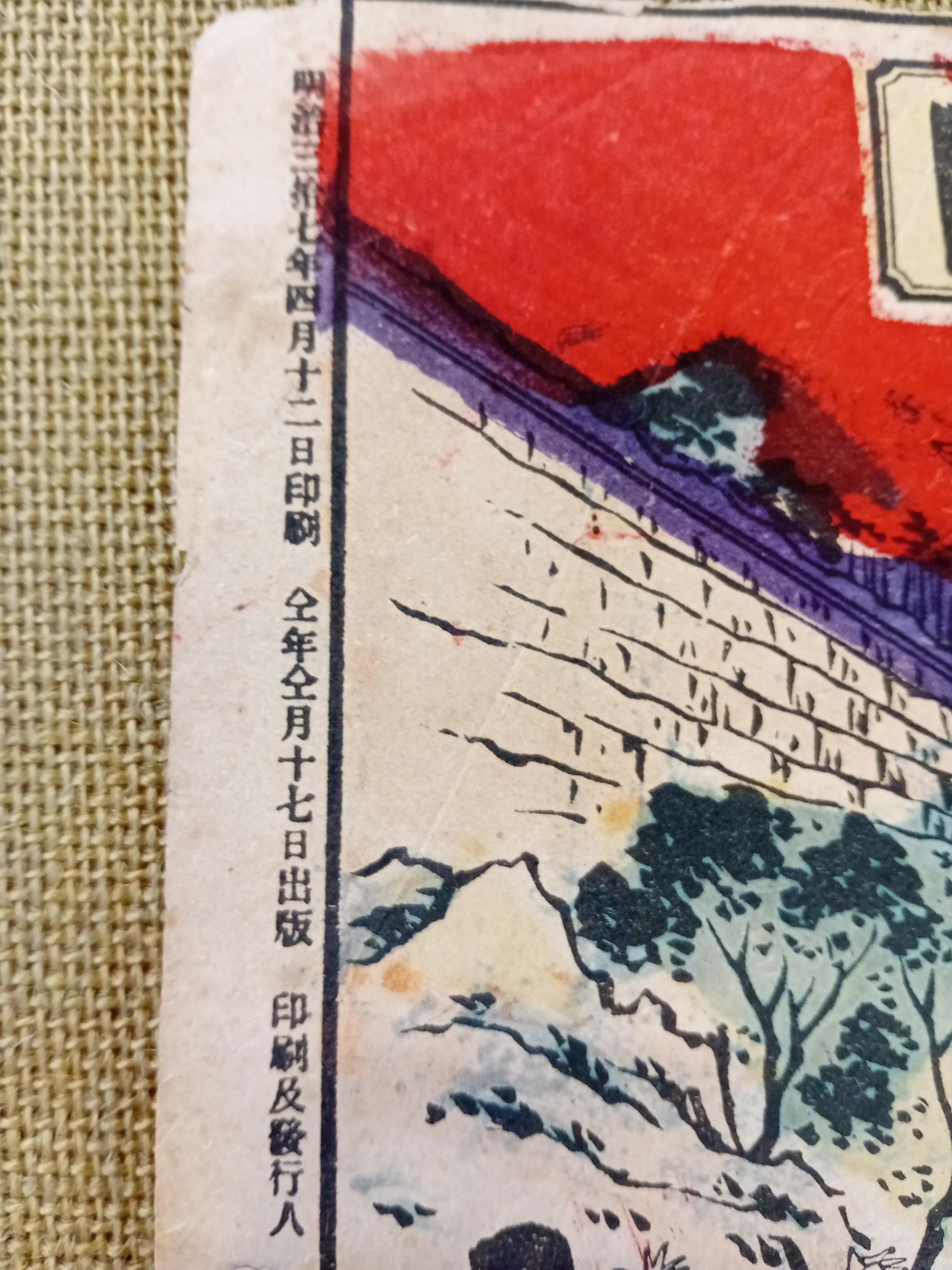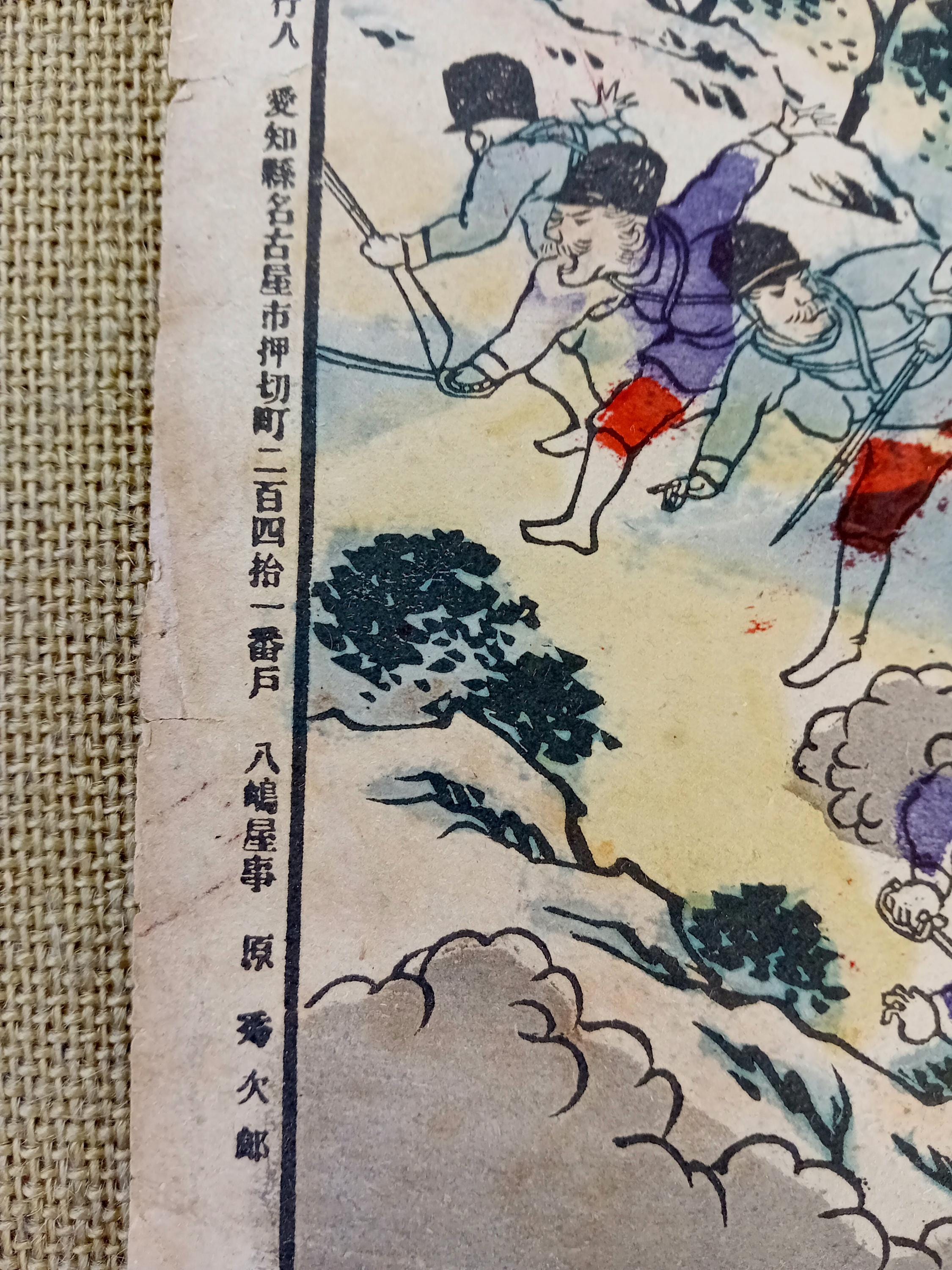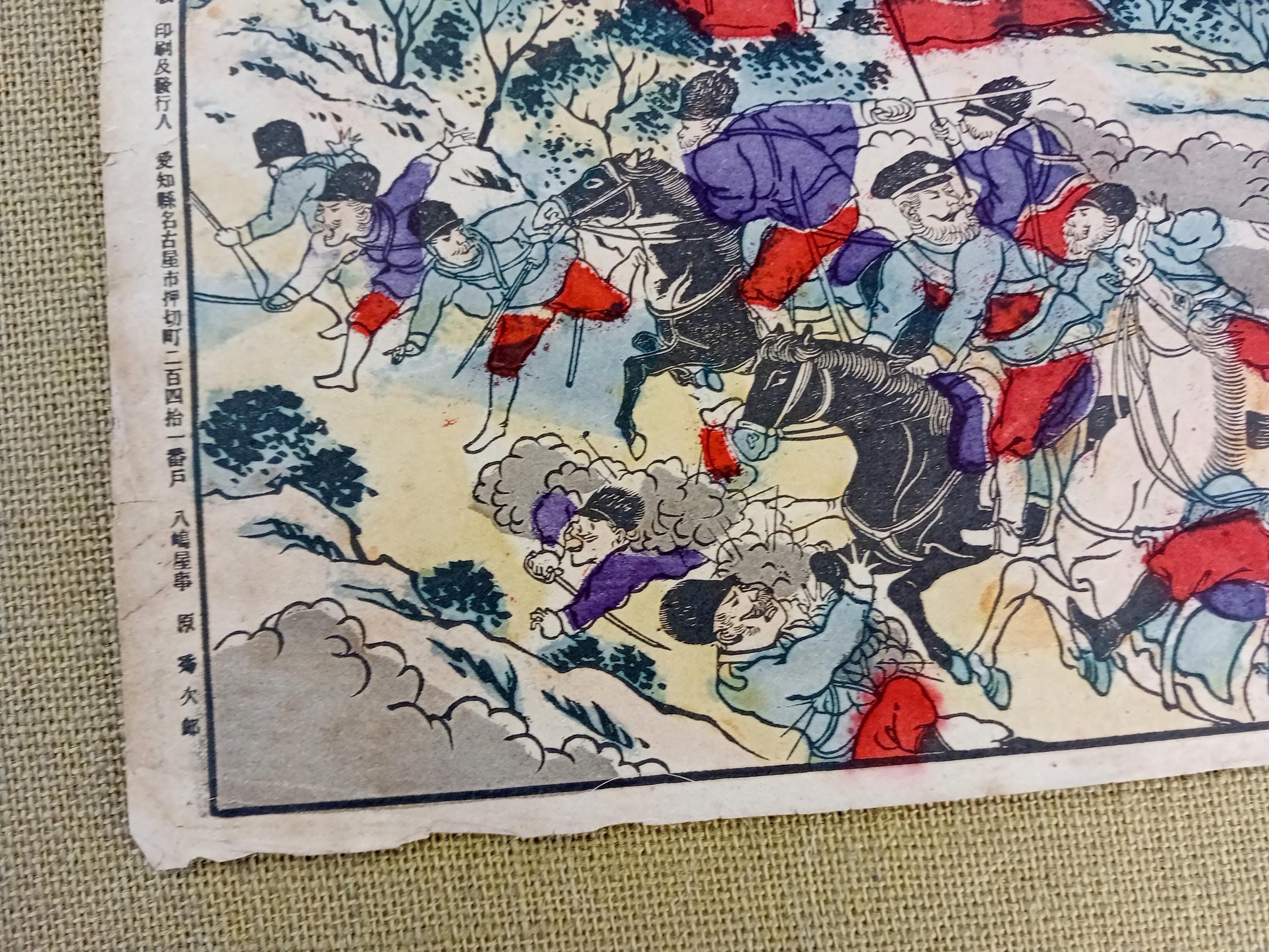 Antique Meiji Japanese war woodblock print – Russo-Japanese War battle scene (#1)