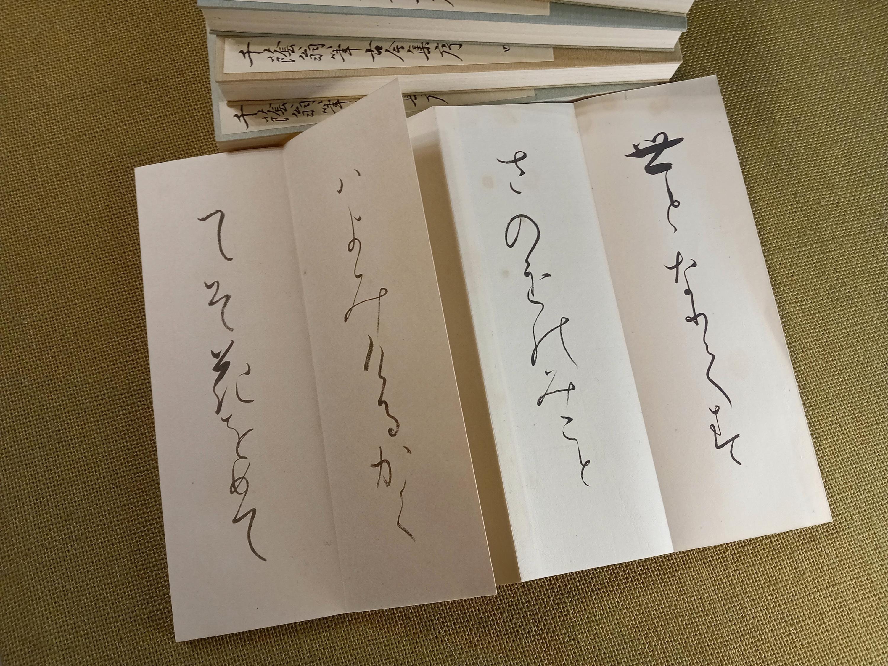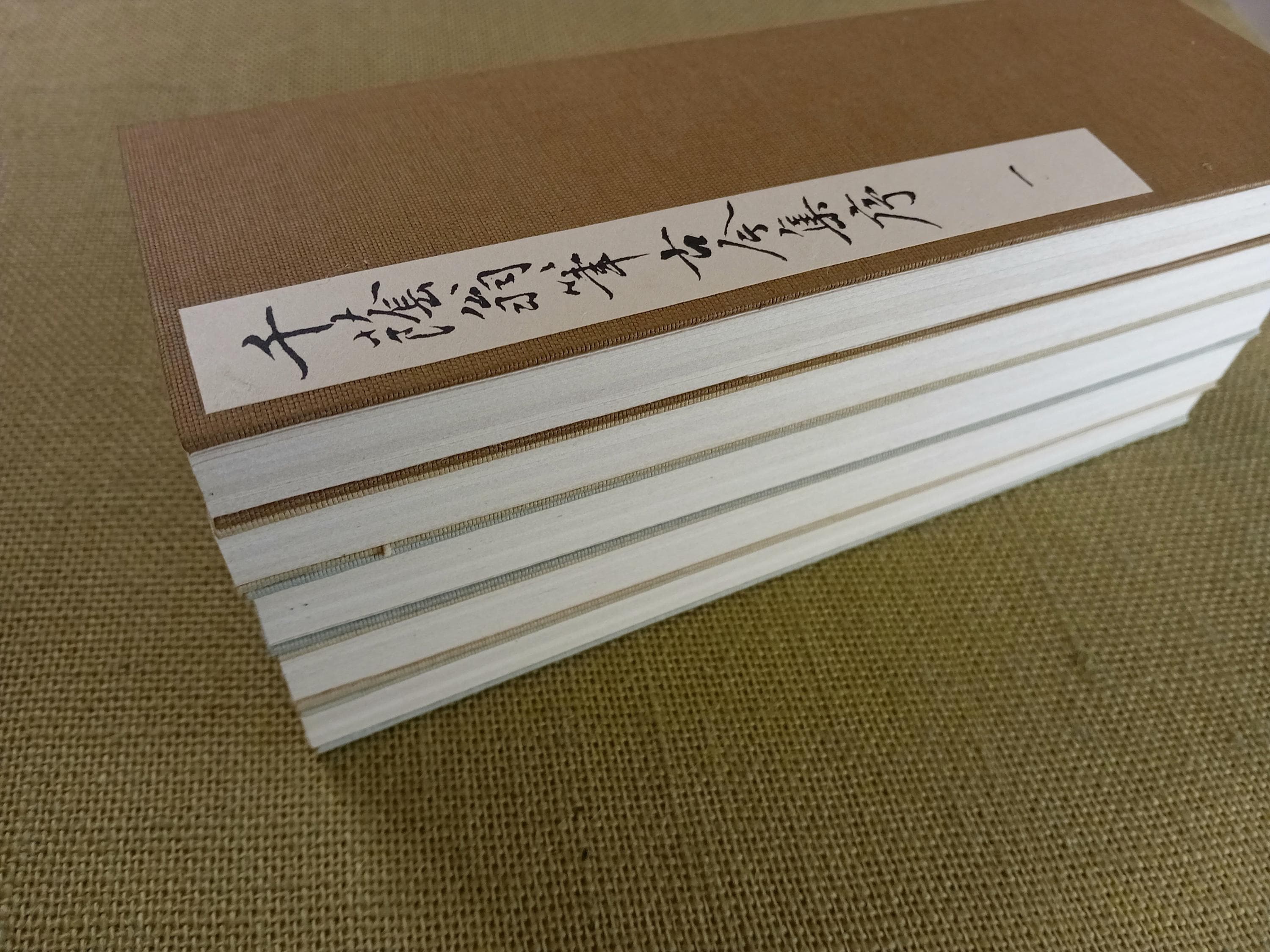 Five separate folding-book volumes (orihon format), complete set, with original cloth storage case.