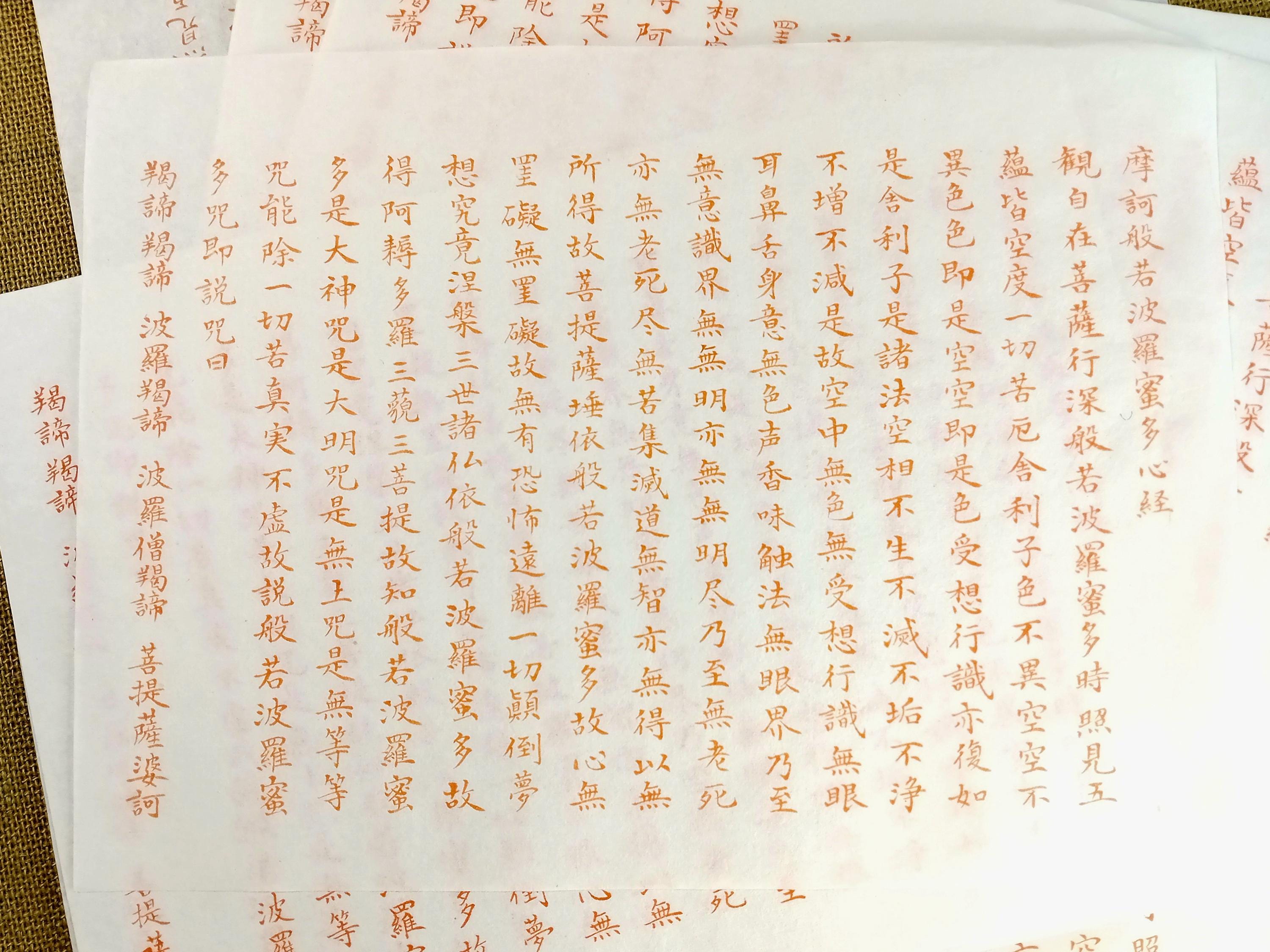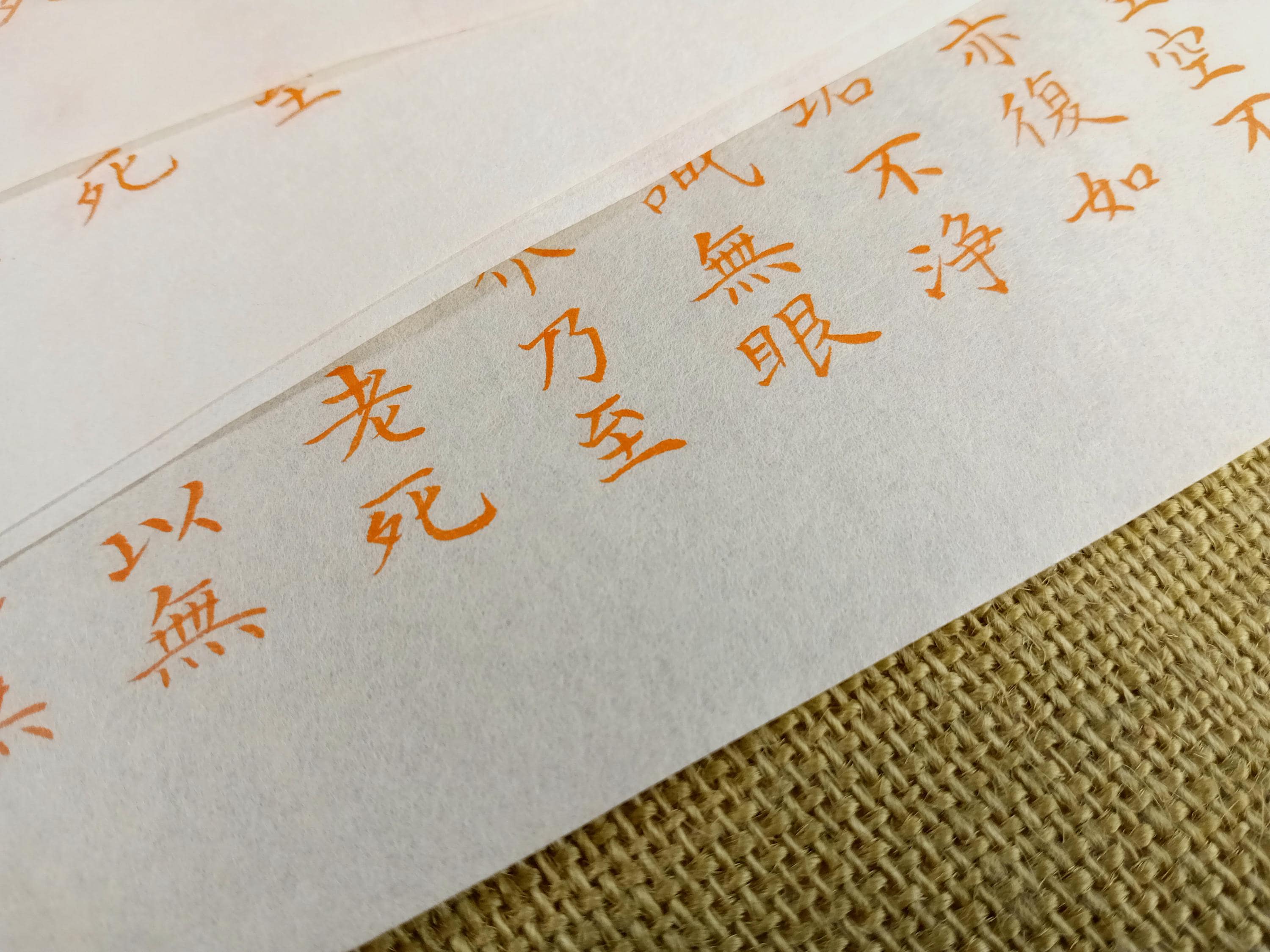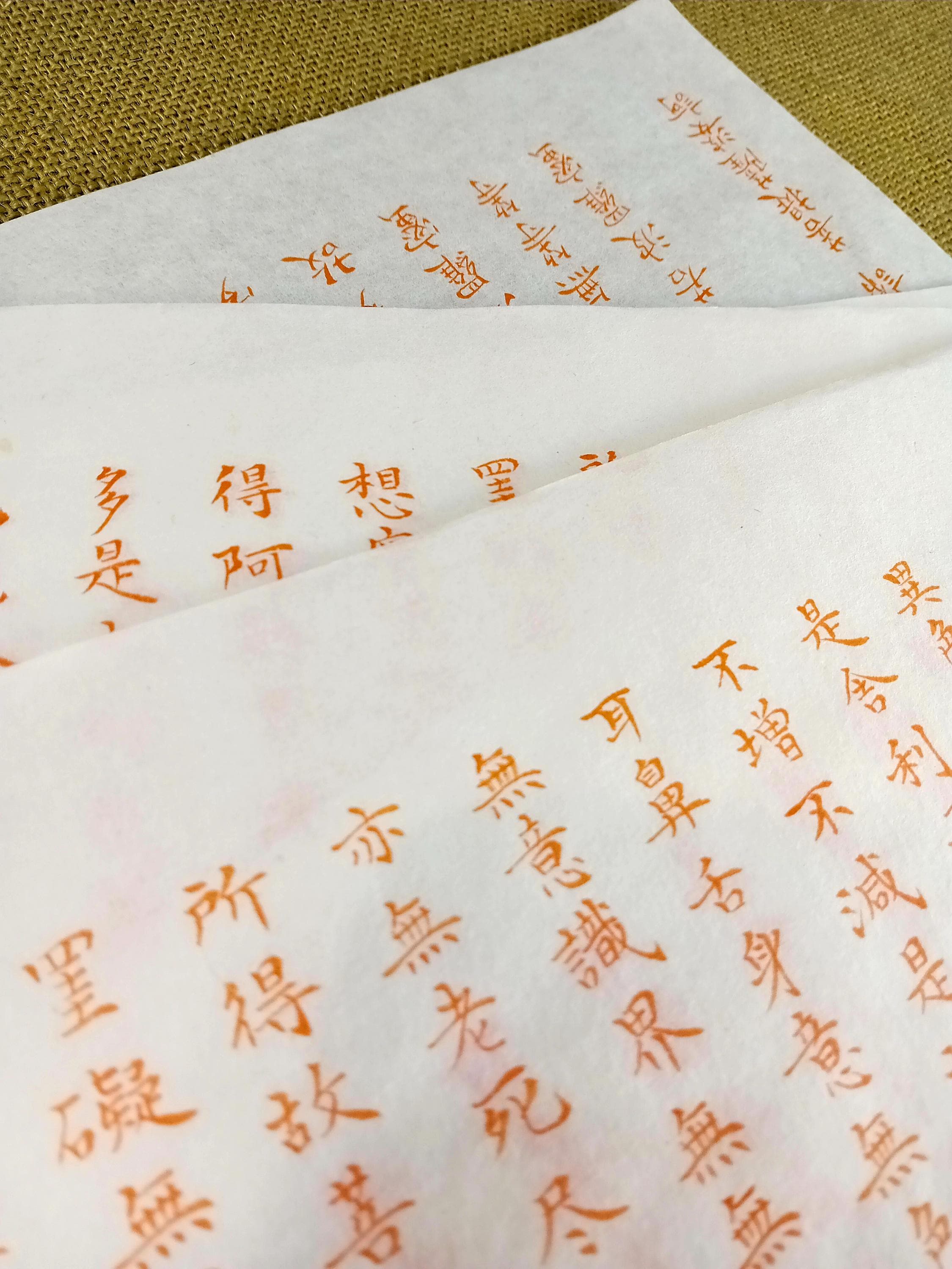 Set of 10 vintage Japanese temple printed sheets on washi with the text of the Heart Sutra.