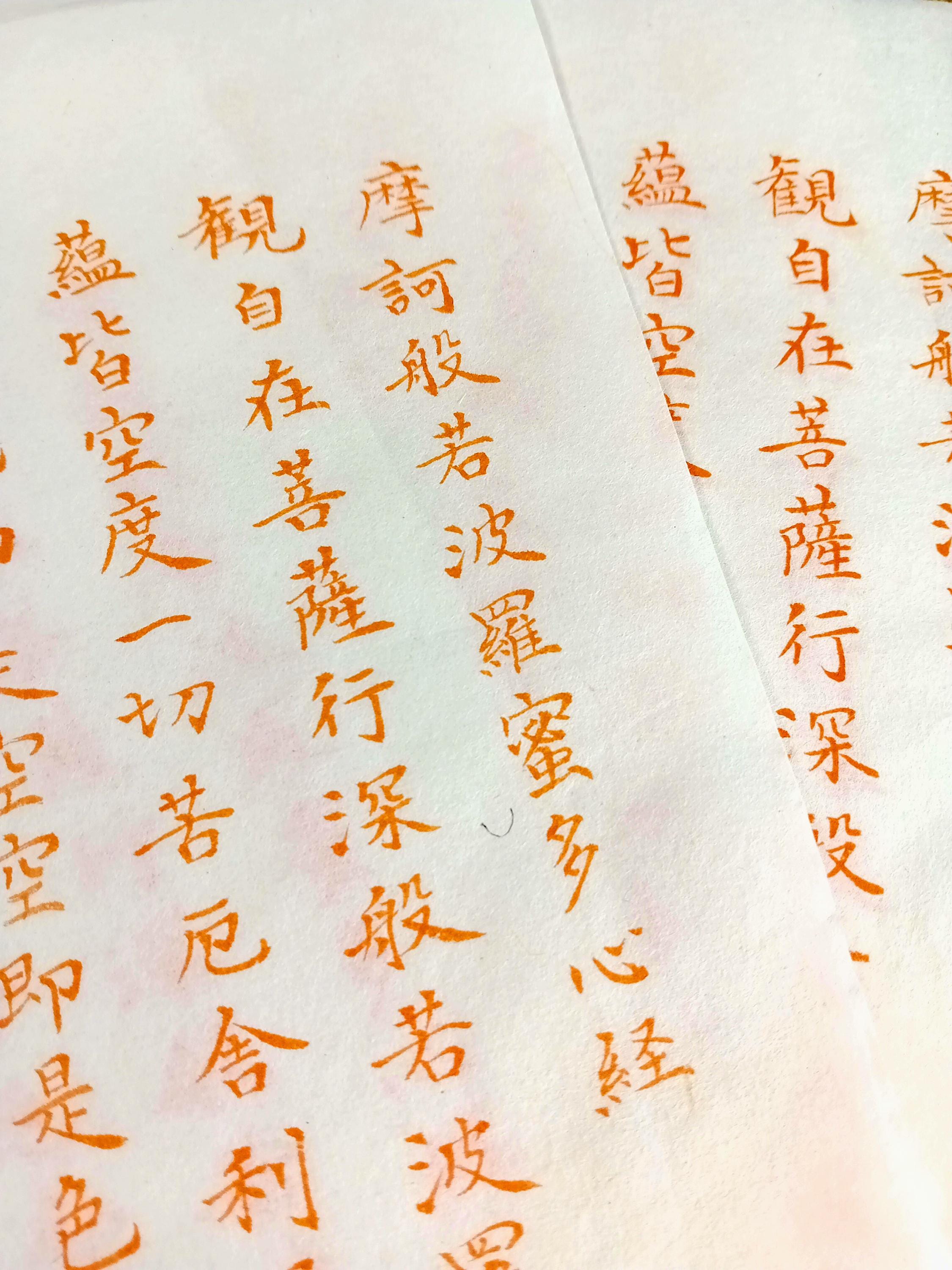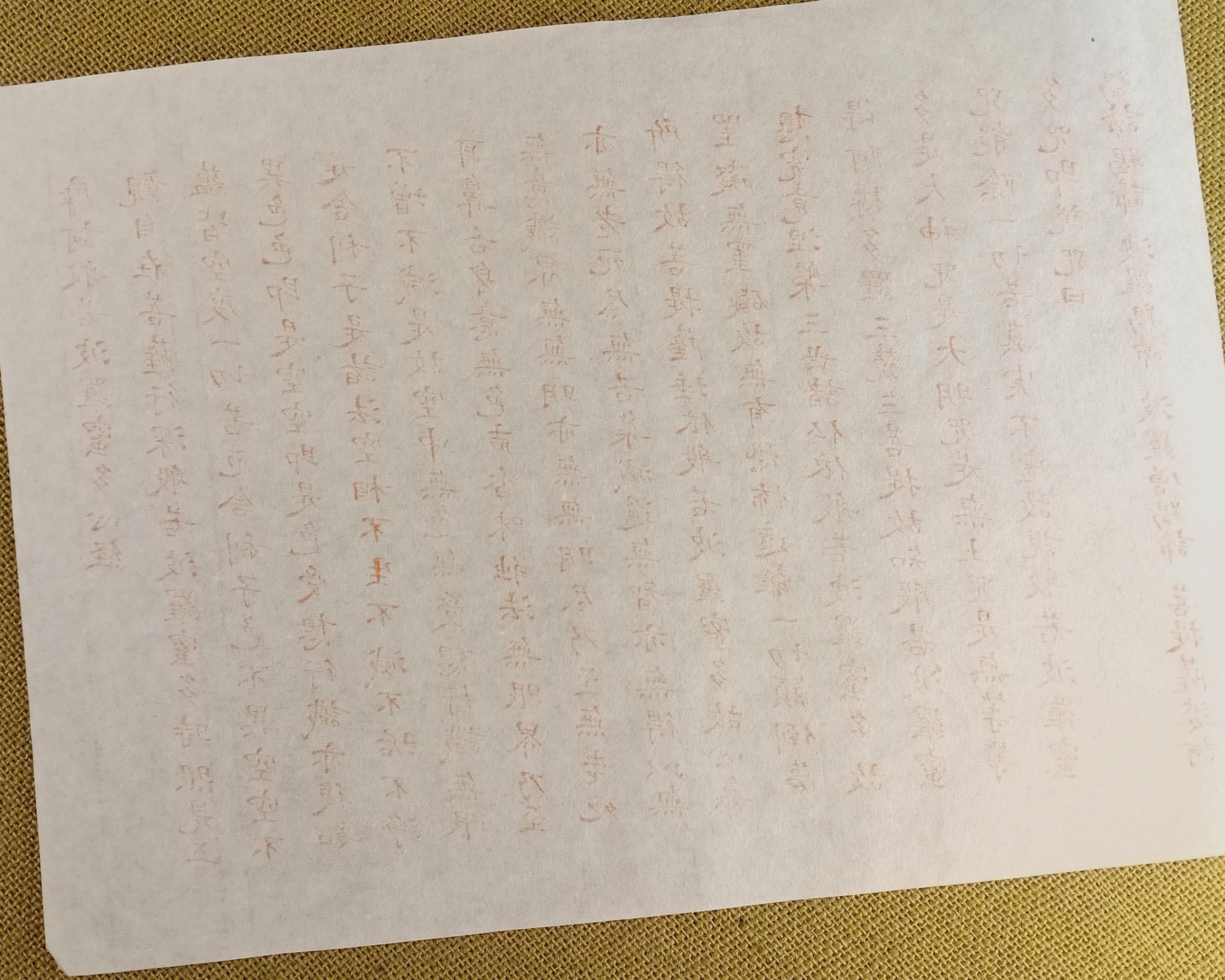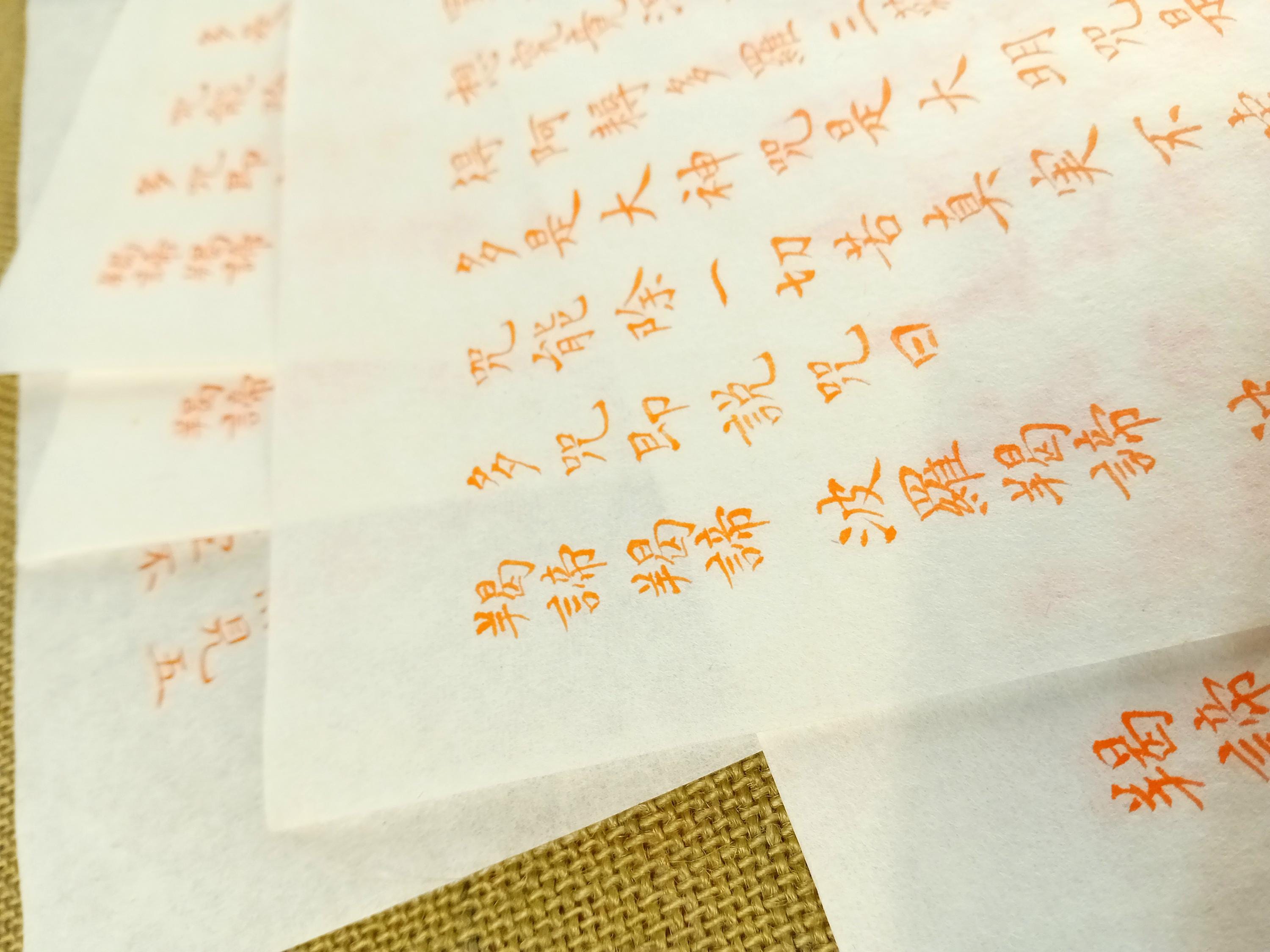 Set of 10 vintage Japanese temple printed sheets on washi with the text of the Heart Sutra.