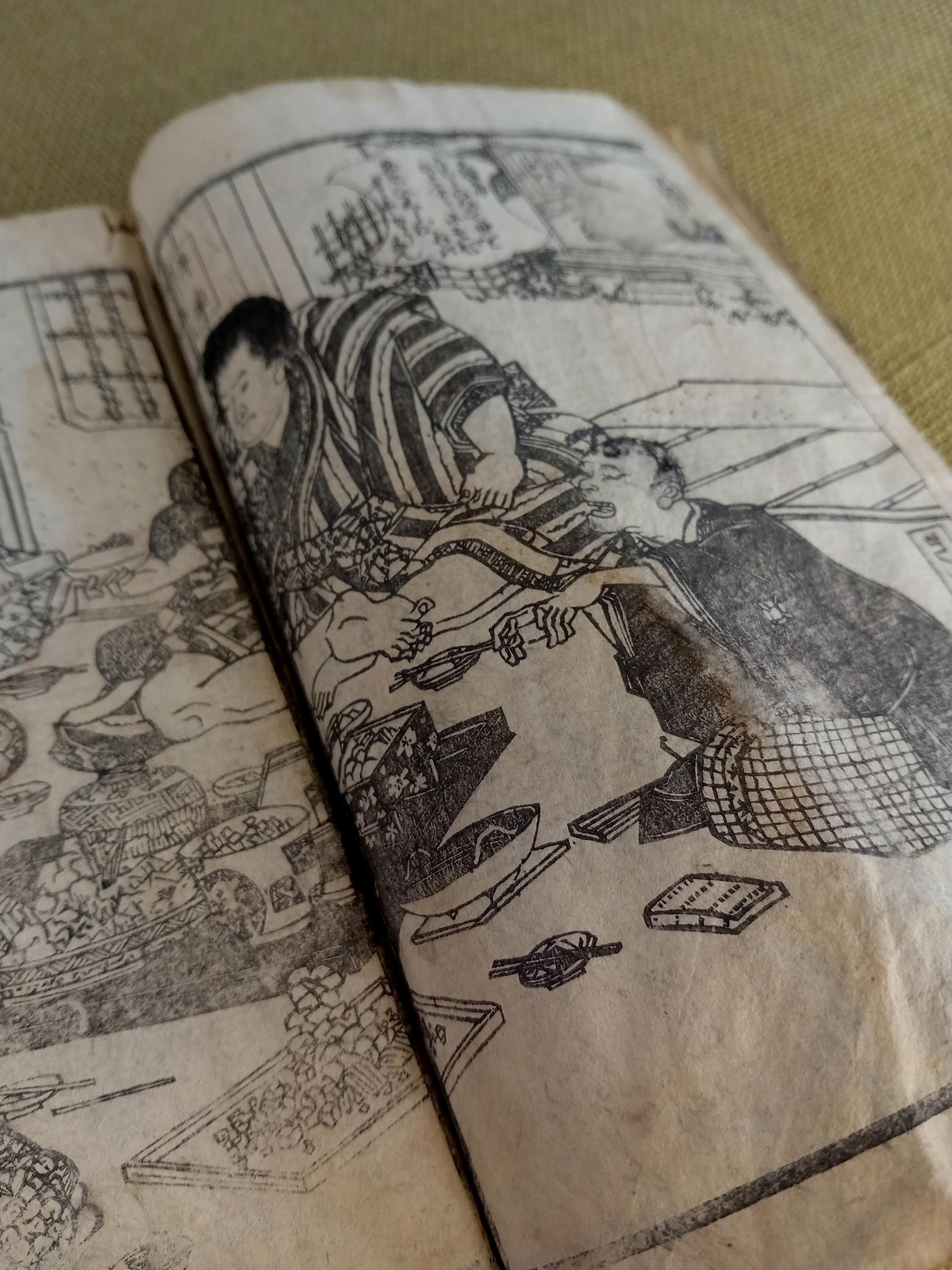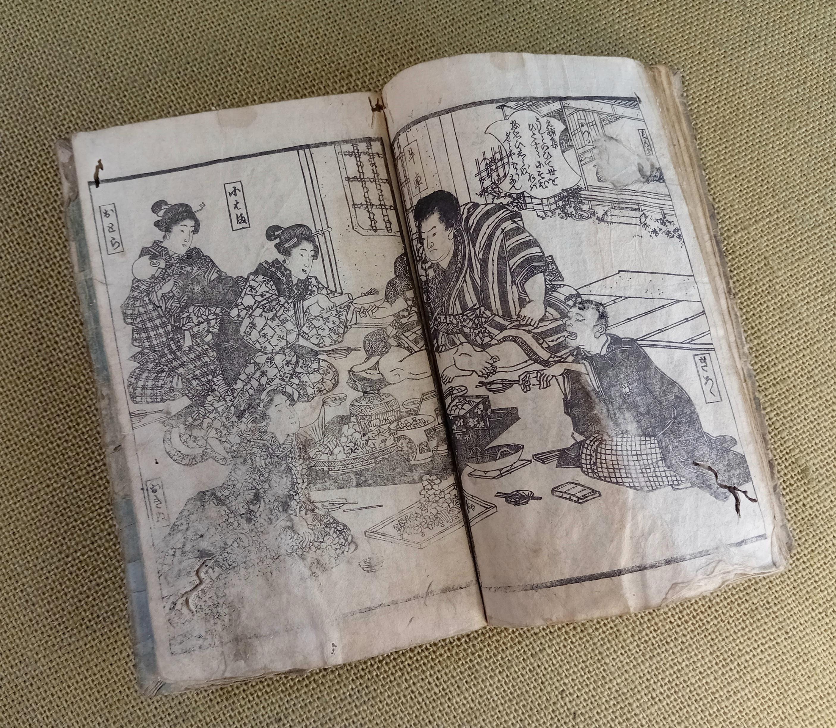 Ninjobon is a major genre of late Edo popular prose, produced for a wide urban readership and published as illustrated woodblock-printed books. Such works are important historical sources for the study of reading culture, publishing practices, and the visual environment of nineteenth-century Japan. Original ninjobon volumes are valued as authentic documents of Edo-period literary and printing culture.