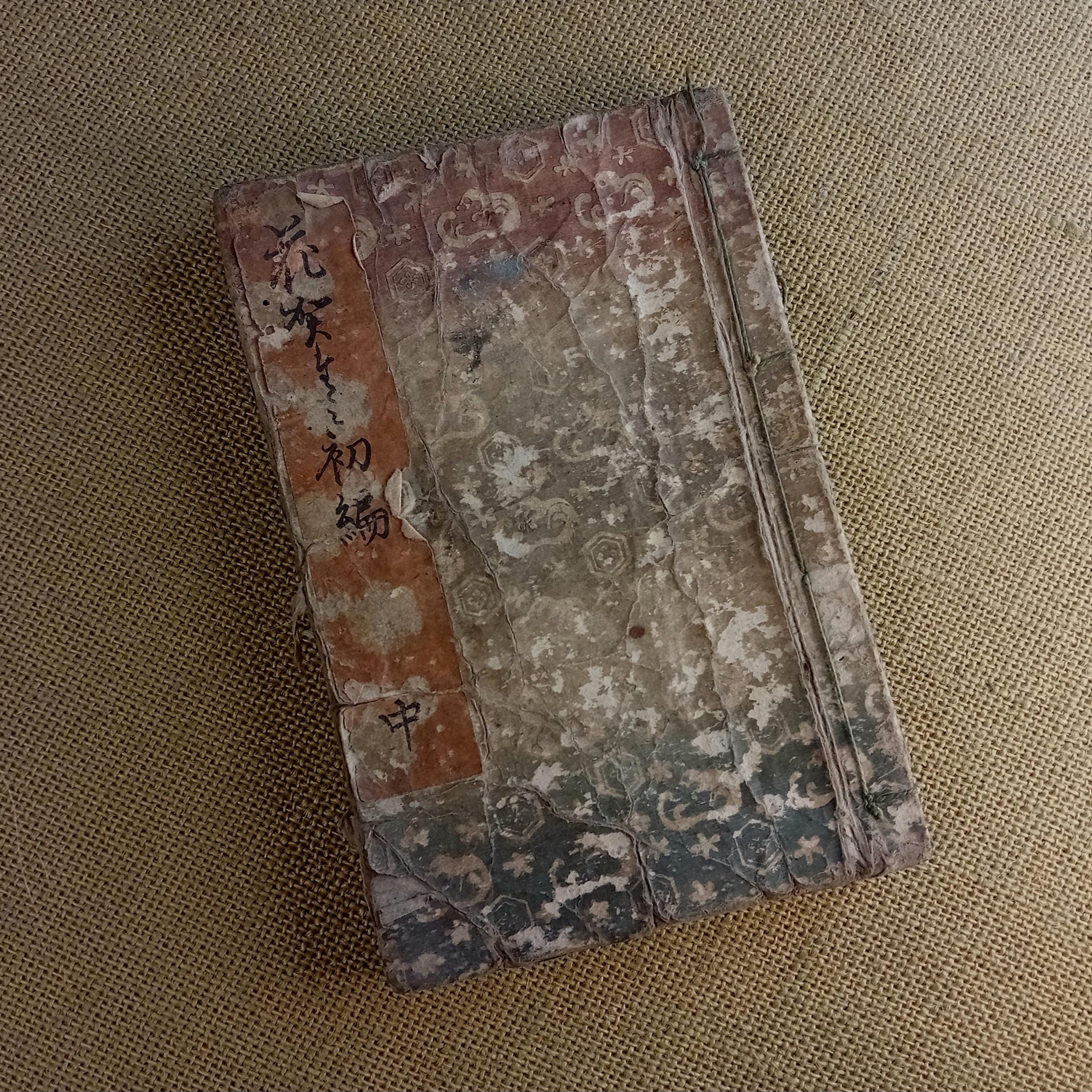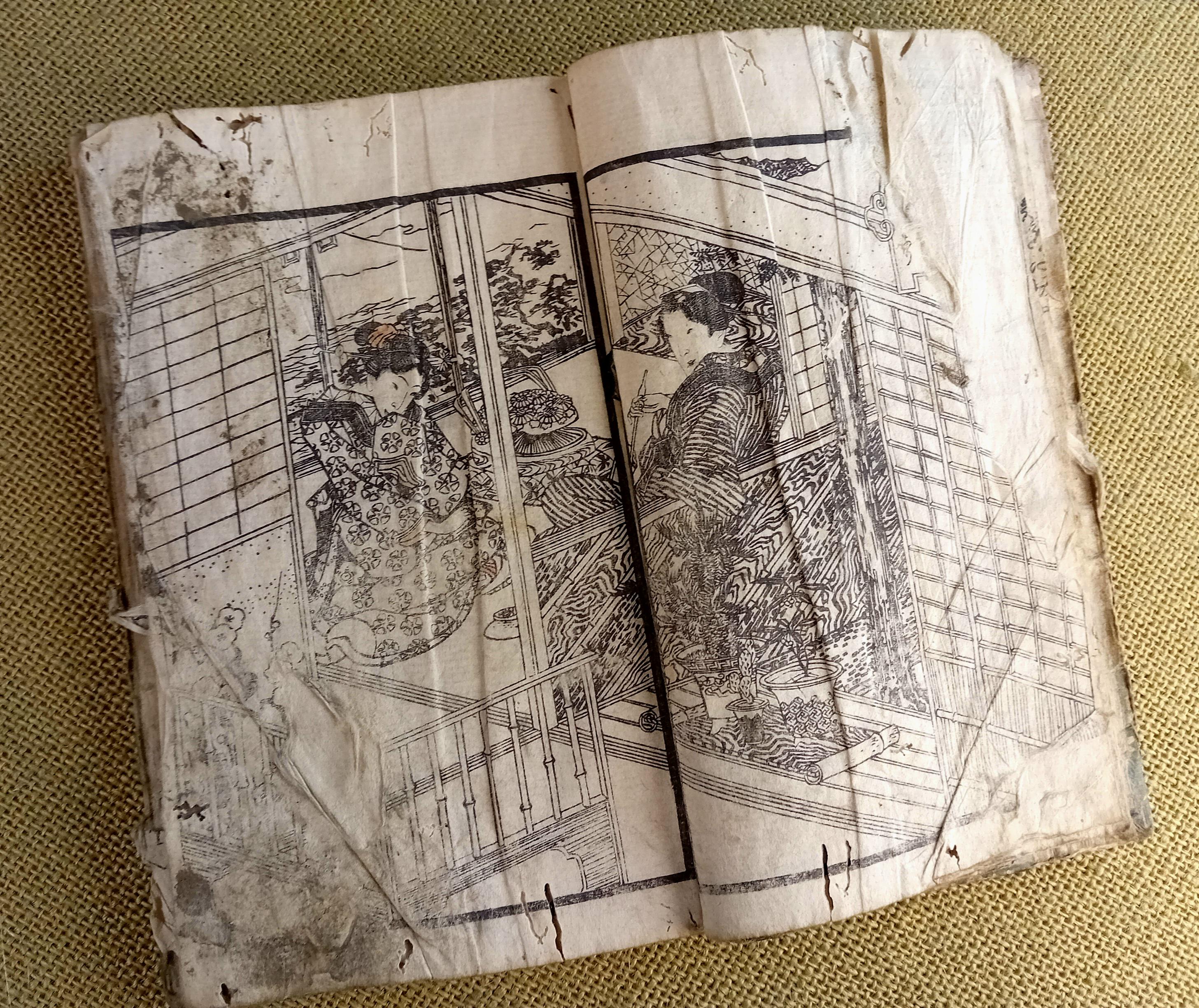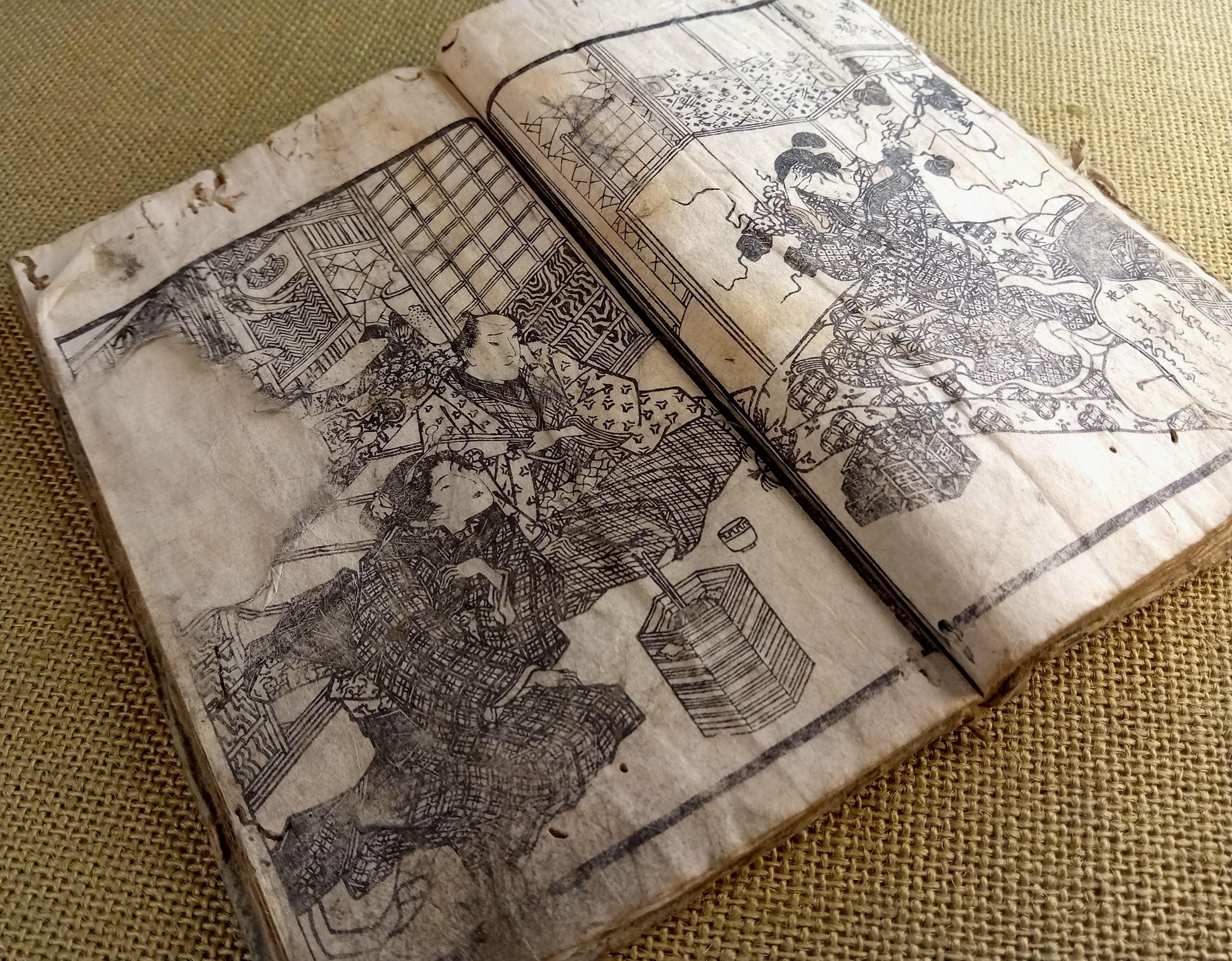Antique Japanese illustrated book produced using traditional woodblock printing.