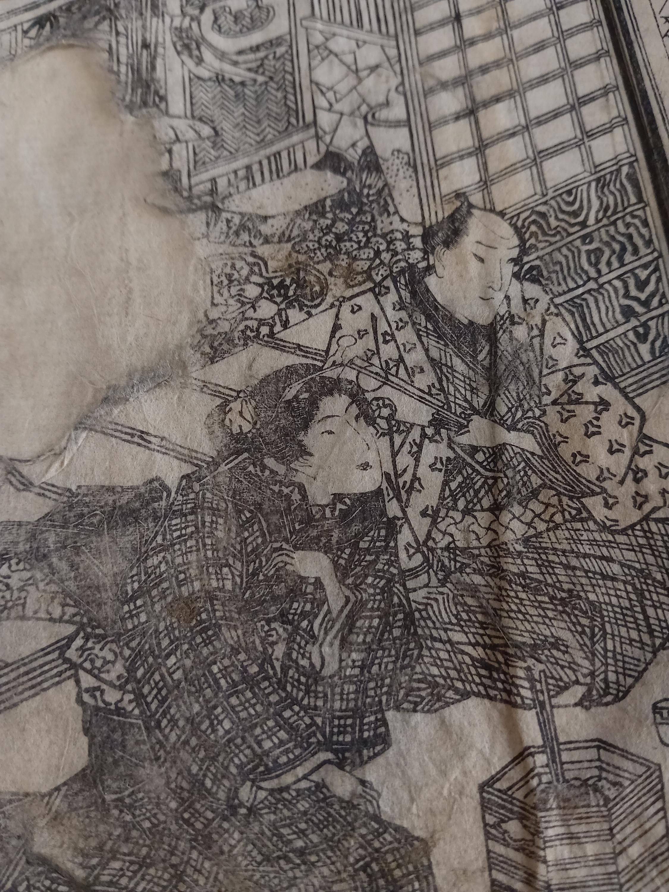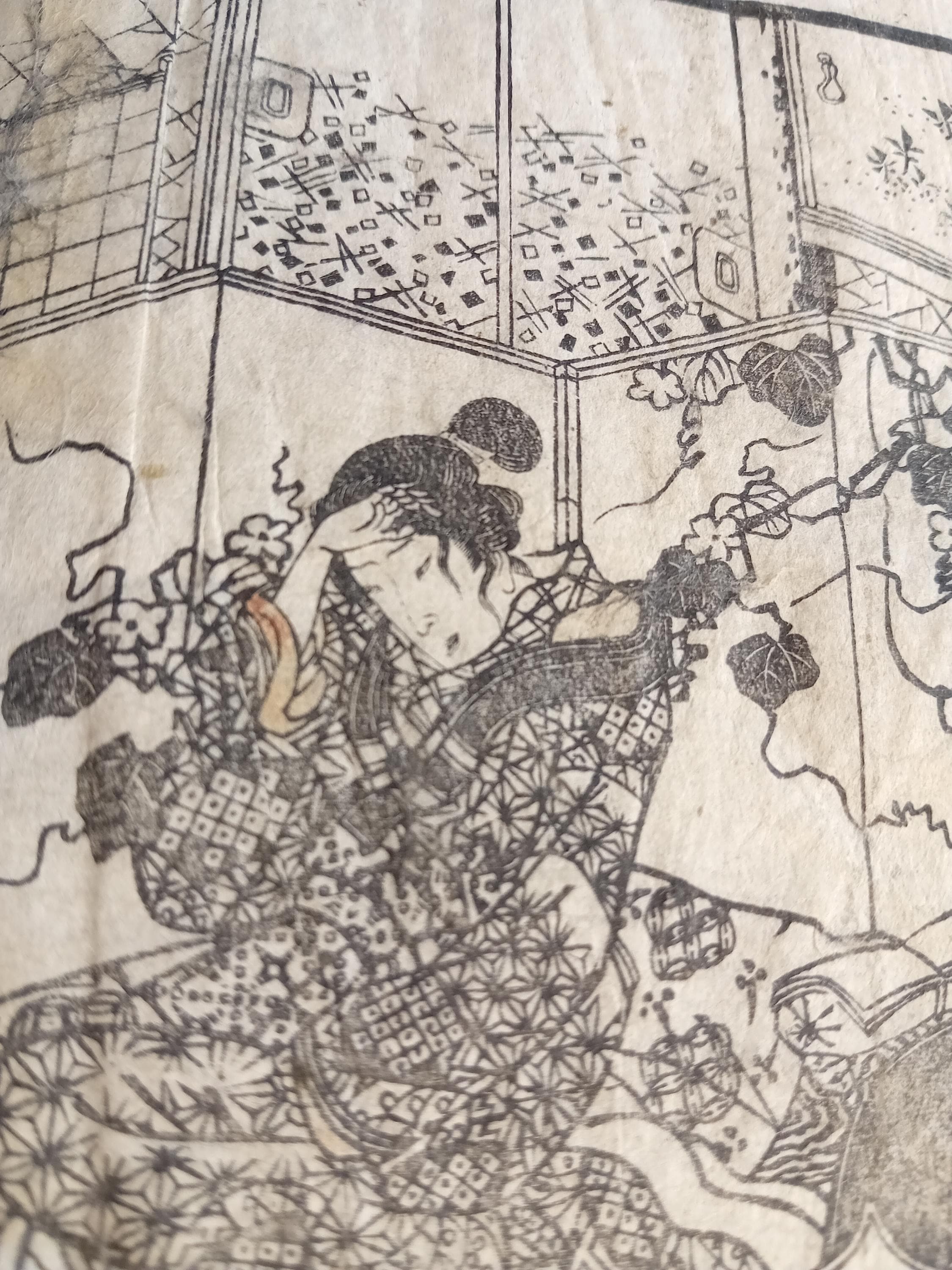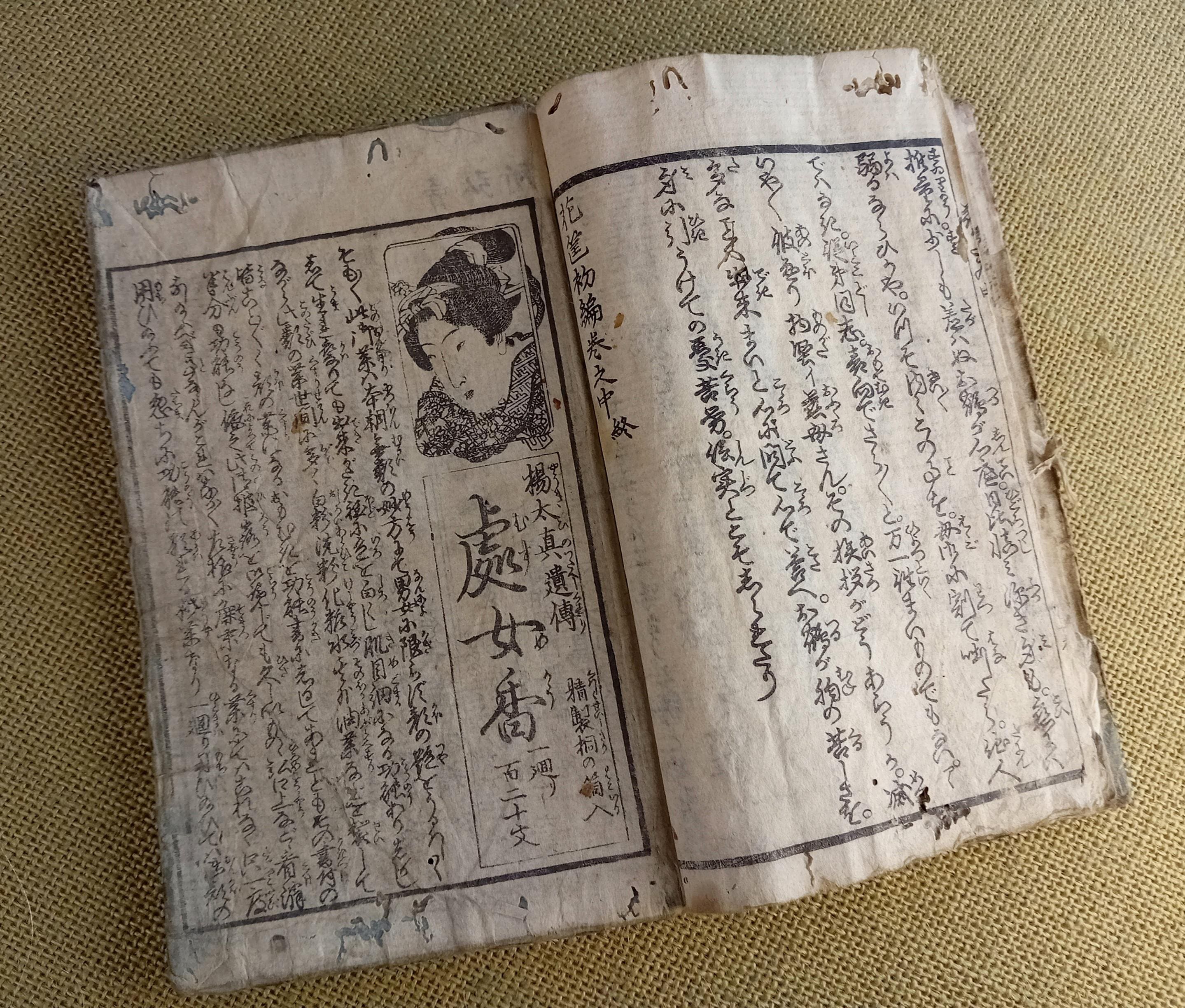 Antique Japanese illustrated book produced using traditional woodblock printing.