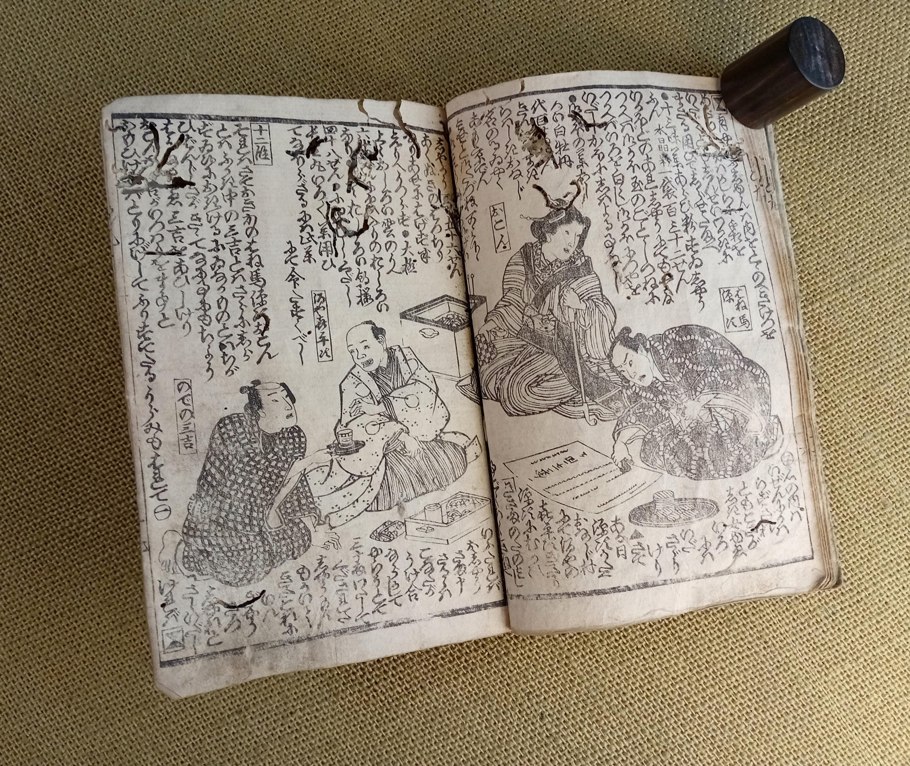 Illustrated Japanese book printed from carved wooden blocks on traditional paper.