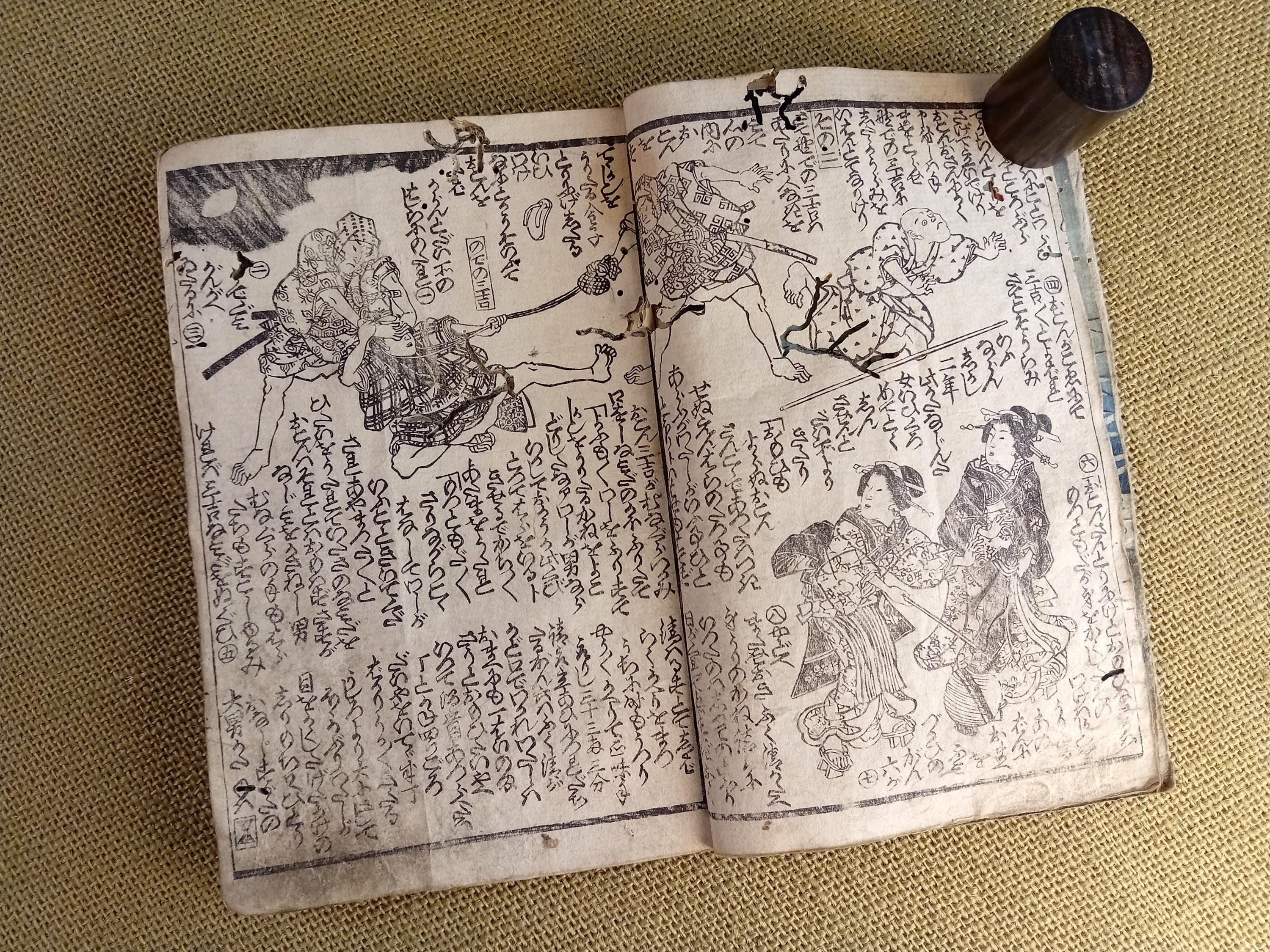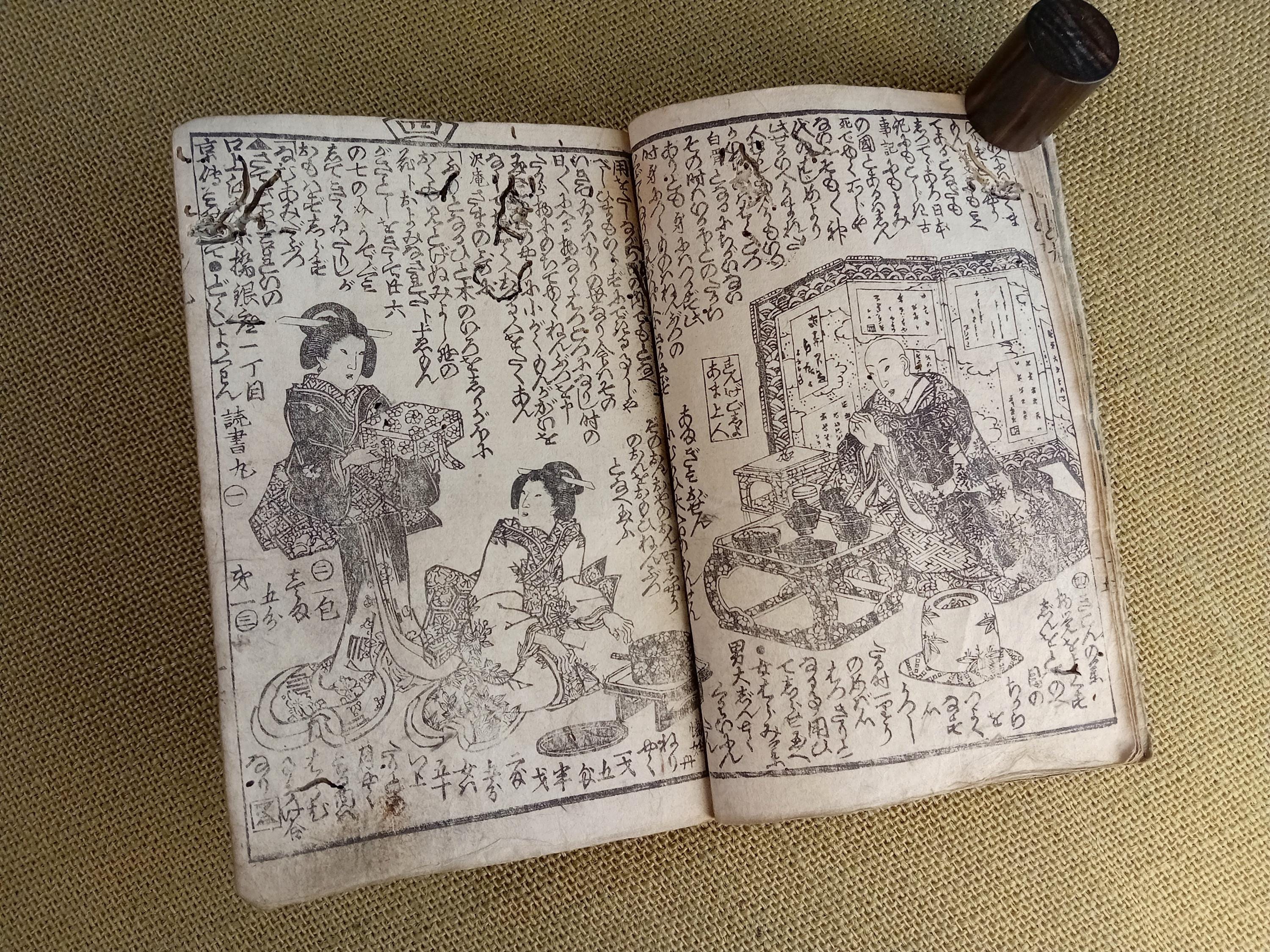 Antique Japanese illustrated book produced using traditional woodblock printing.