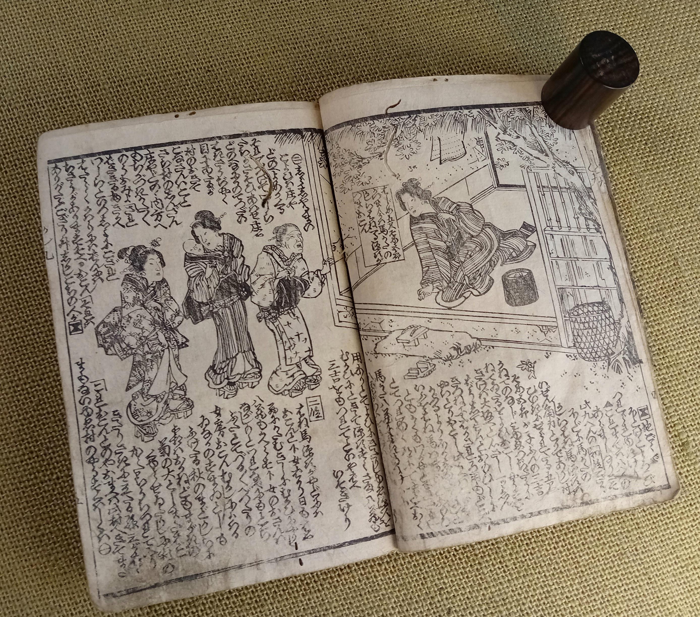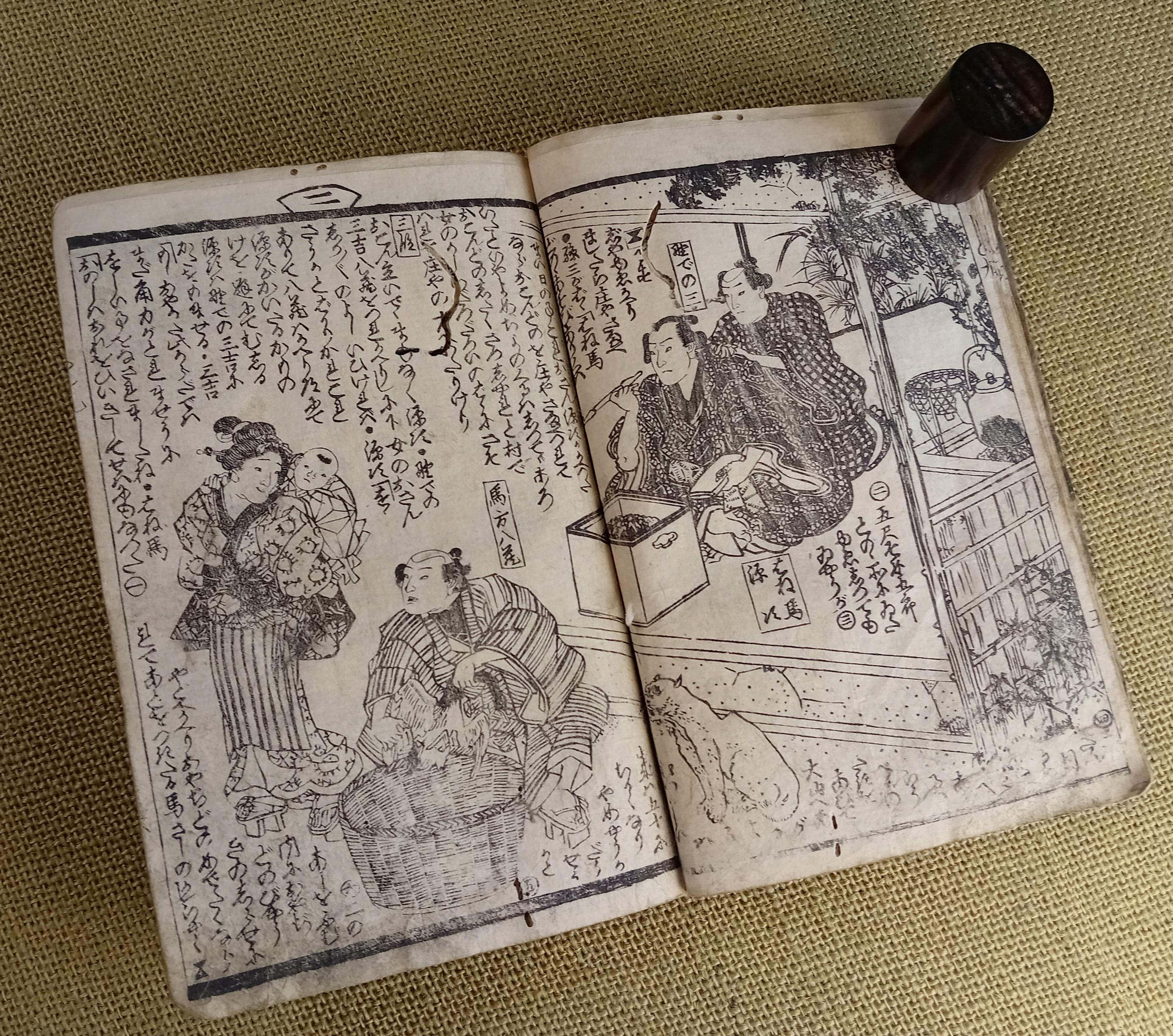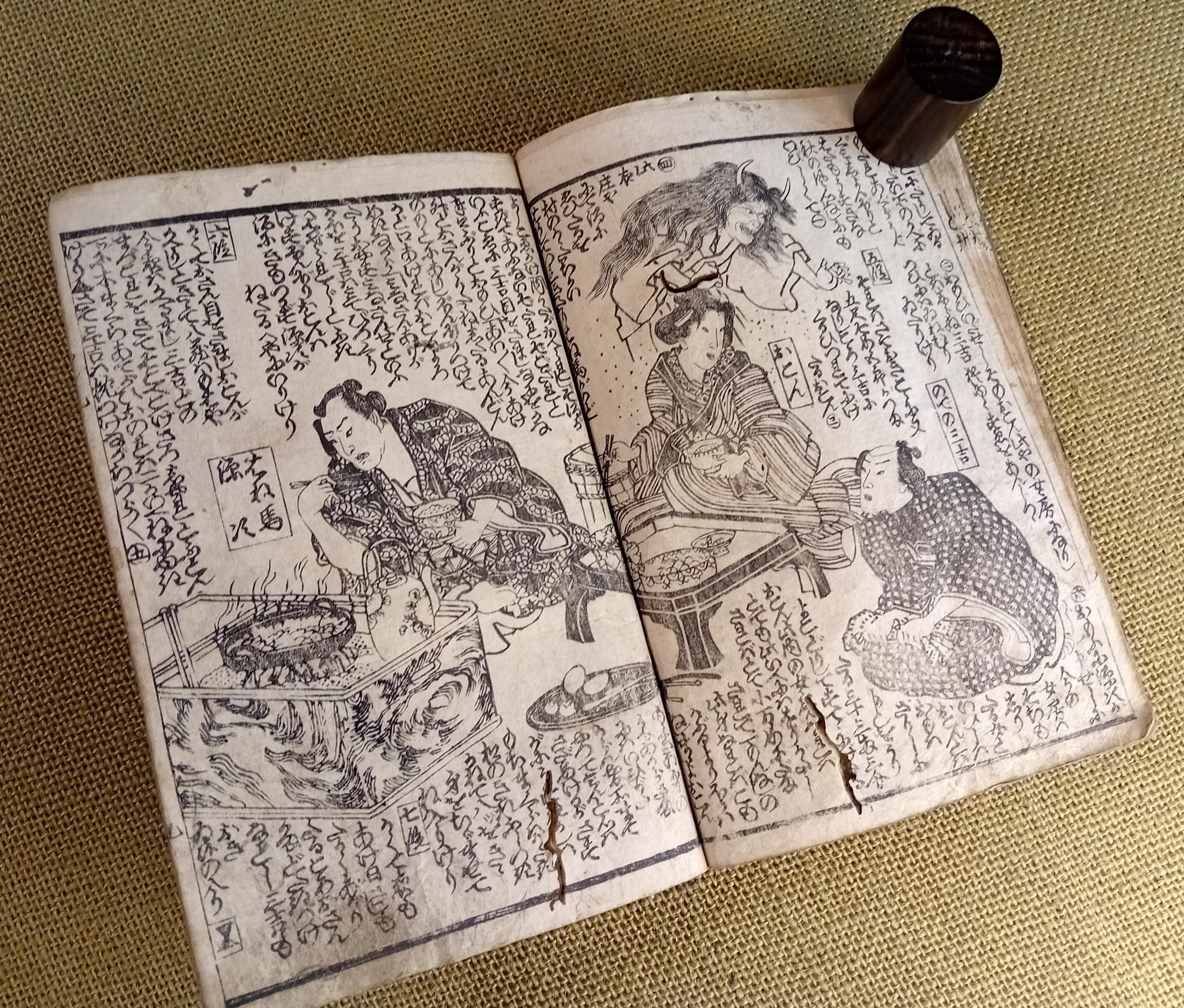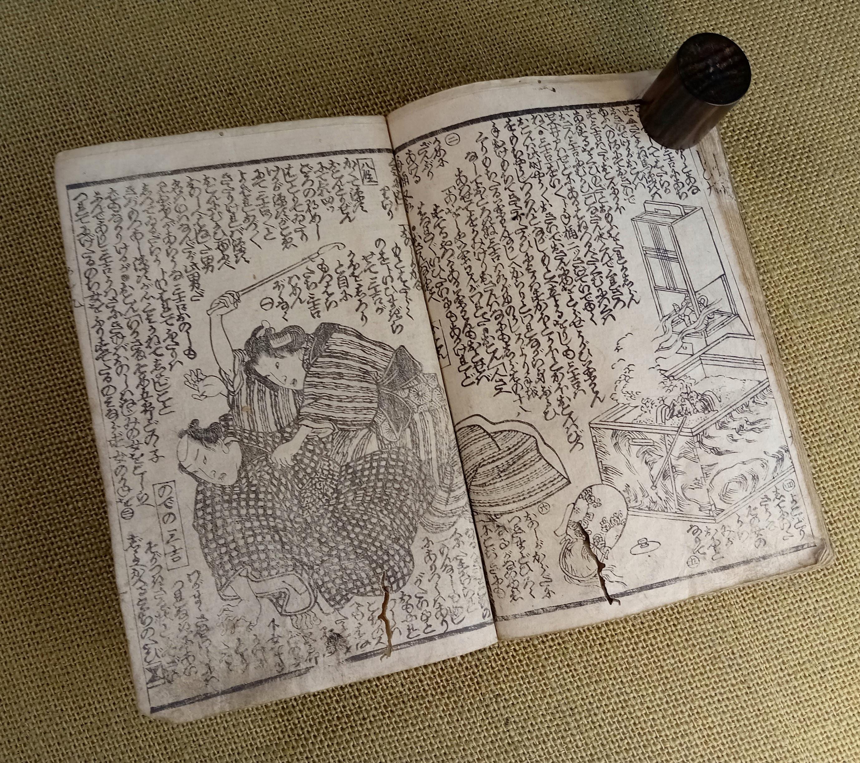 Illustrated Japanese book printed from carved wooden blocks on traditional paper.