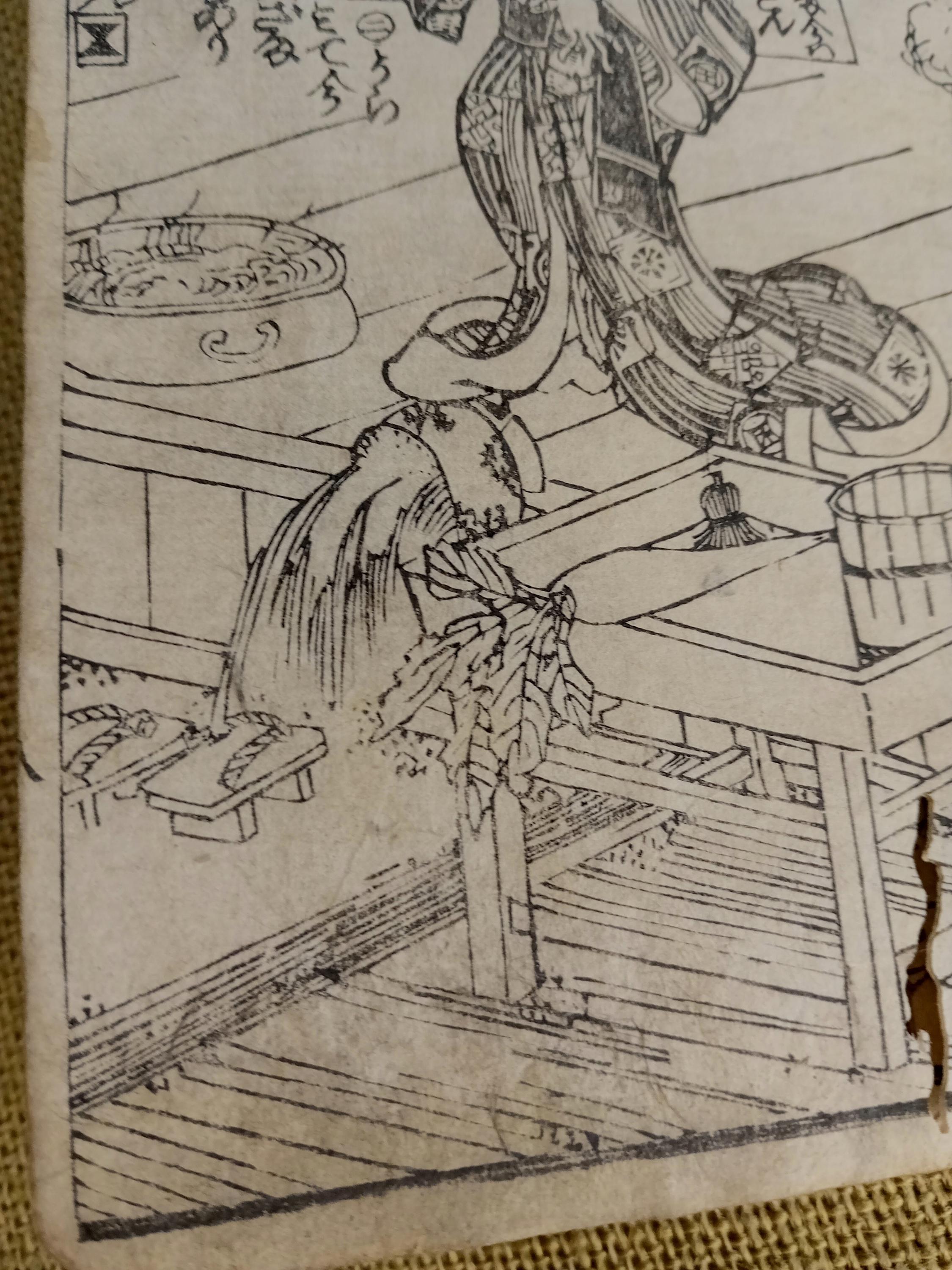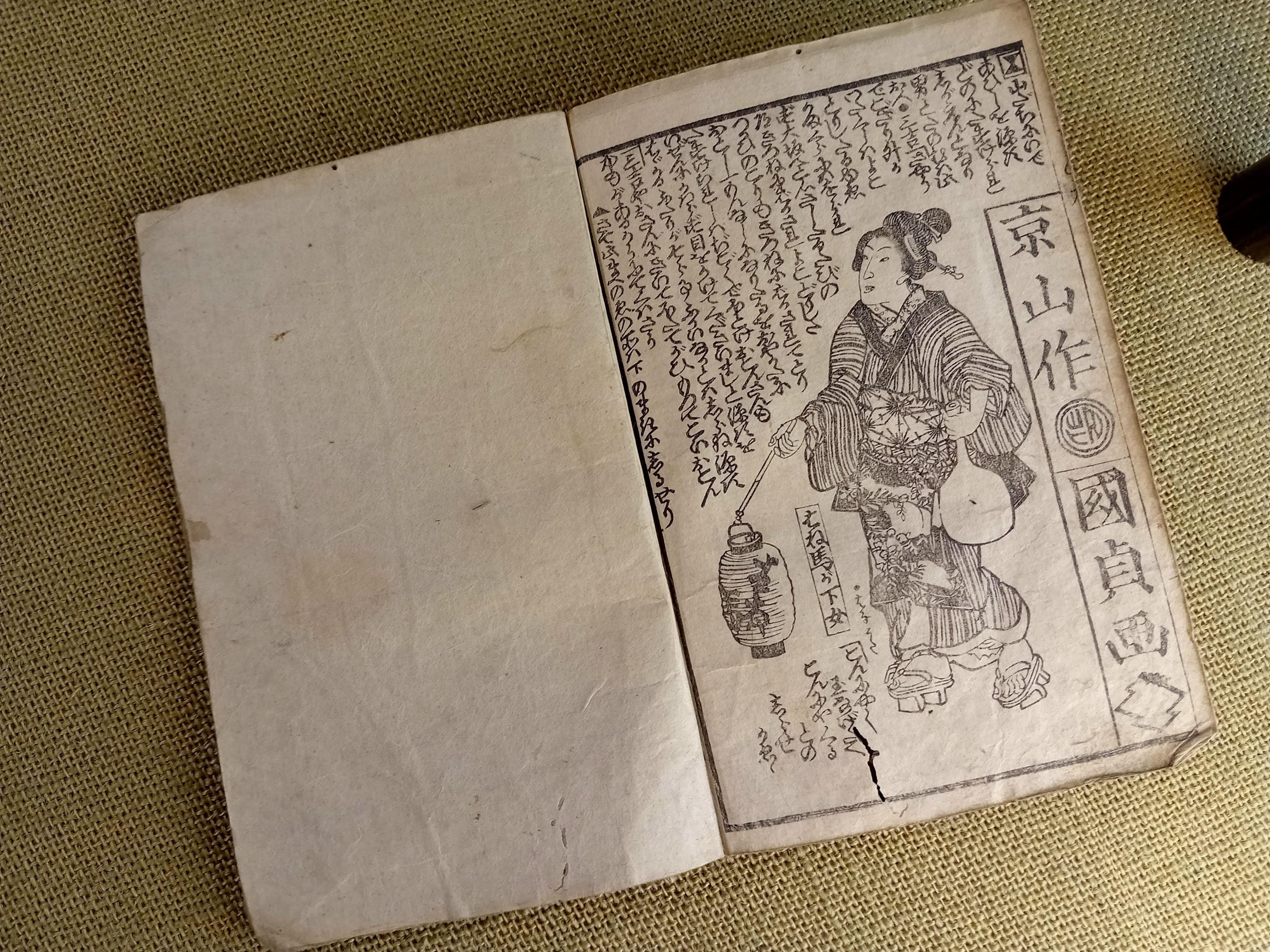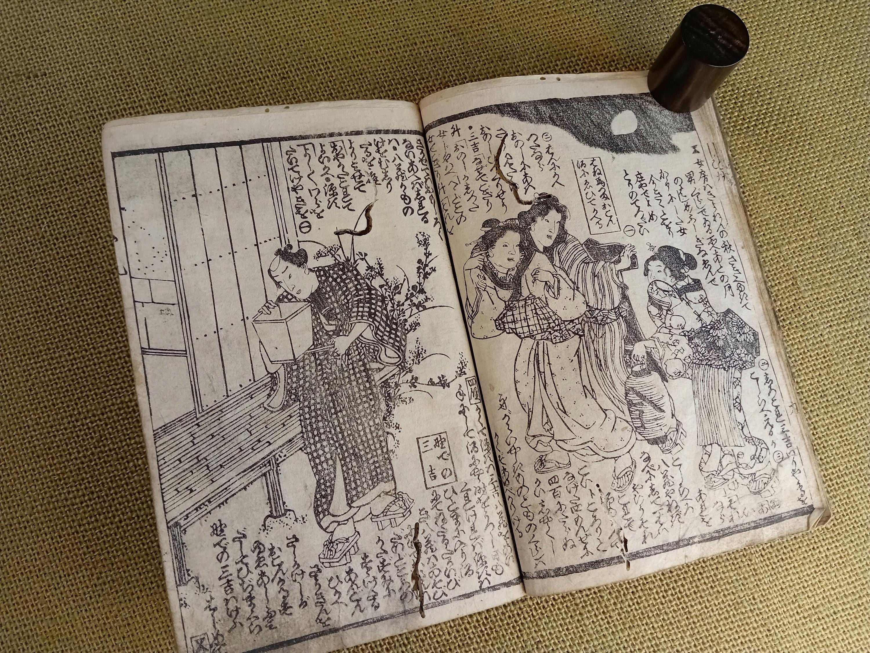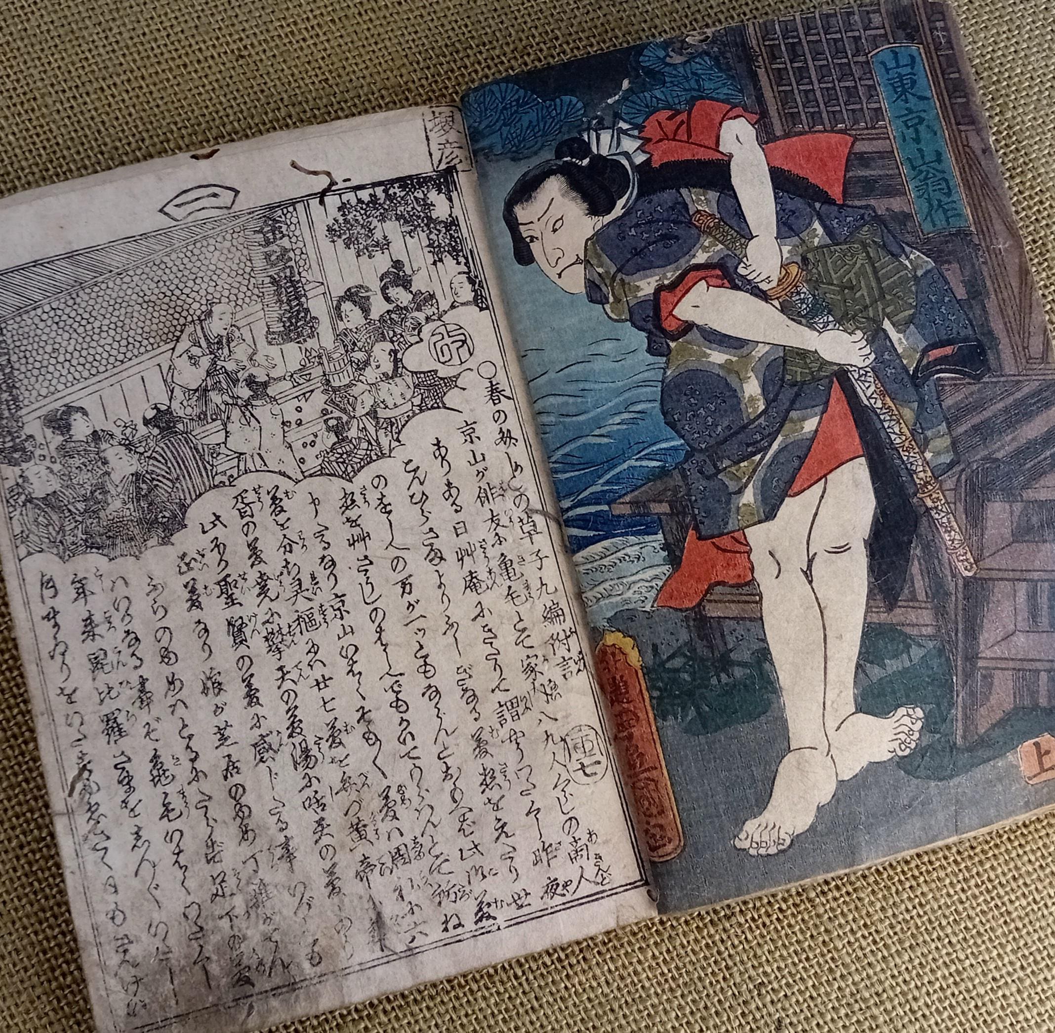 Illustrated Japanese book printed from carved wooden blocks on traditional paper.