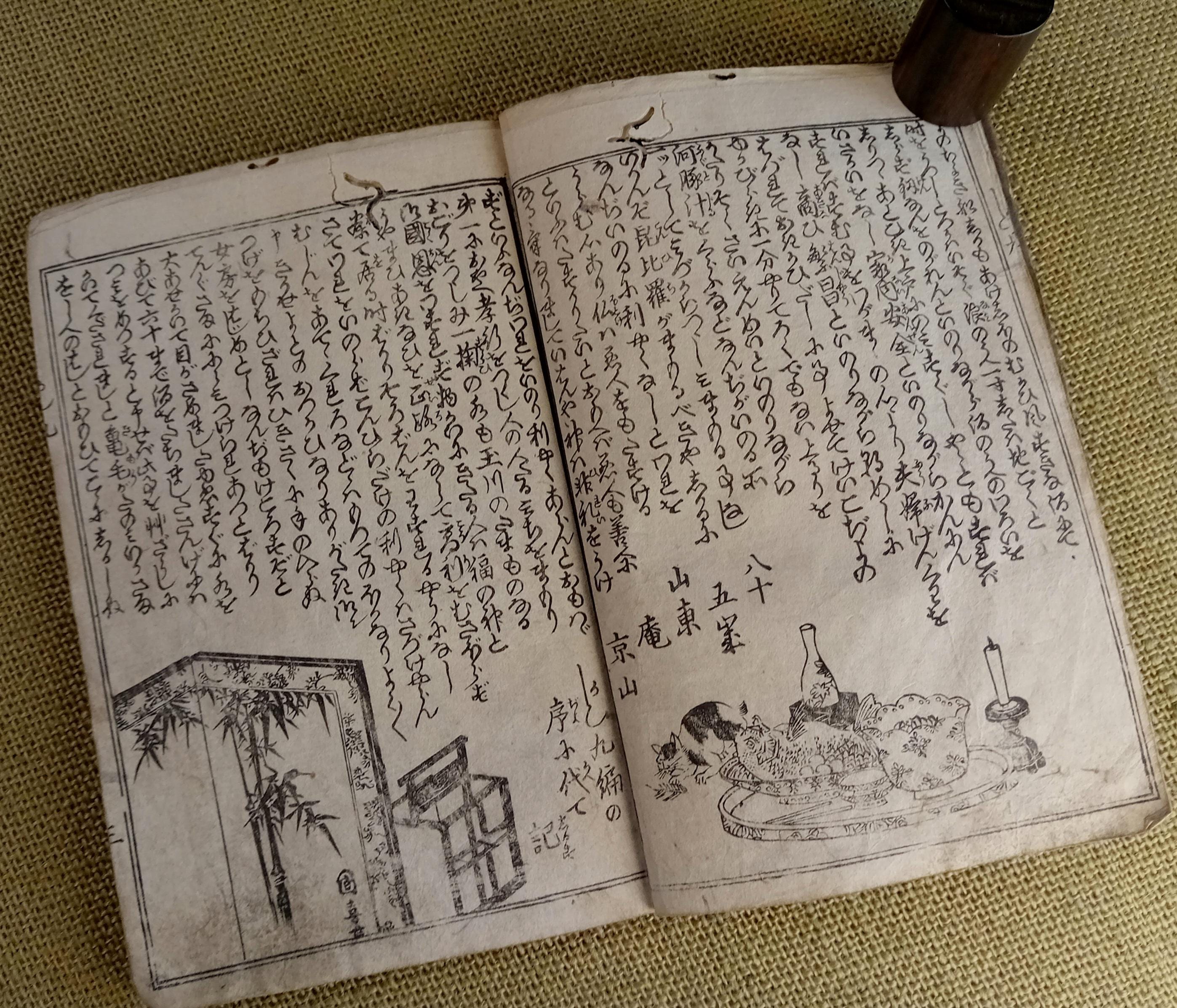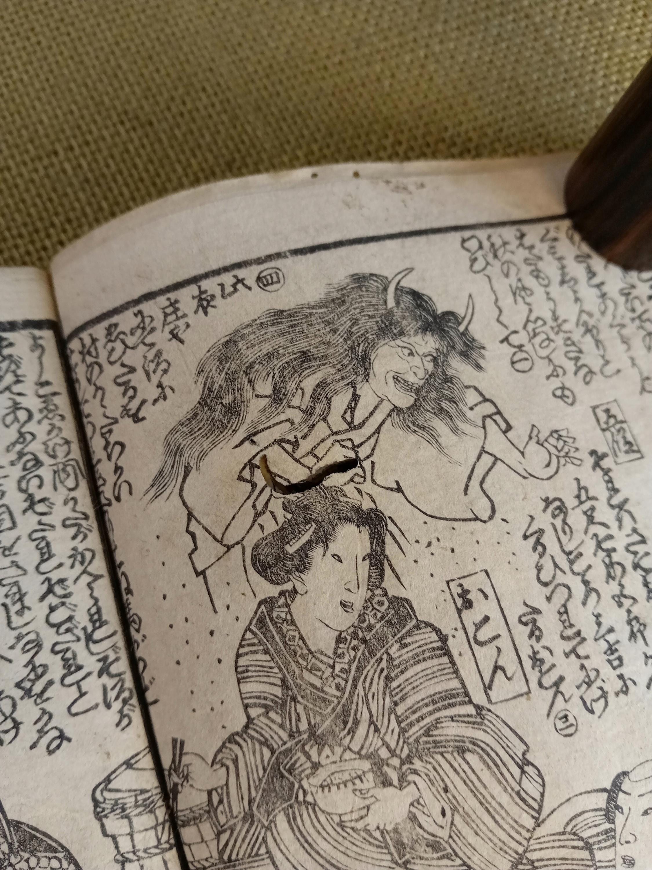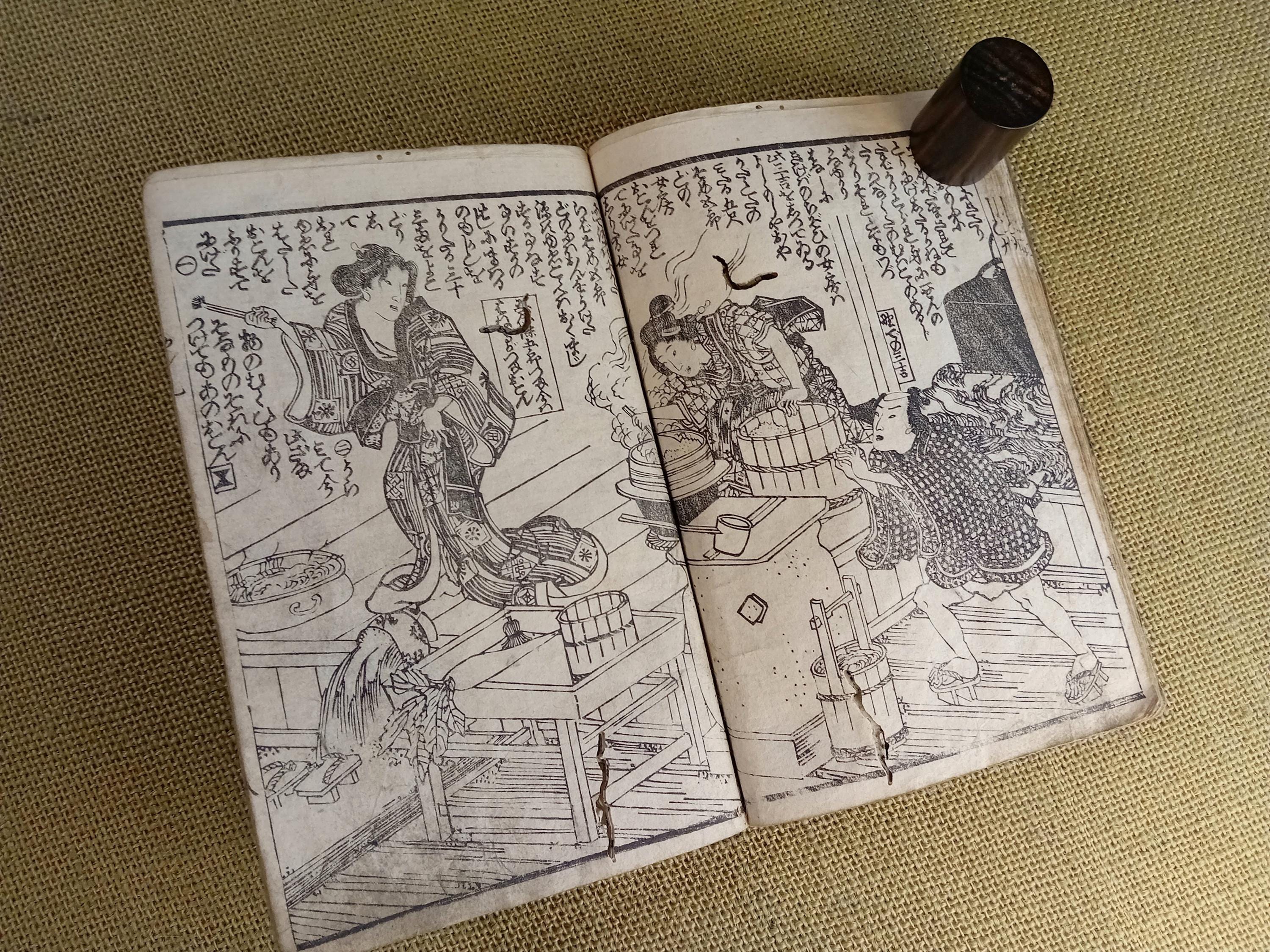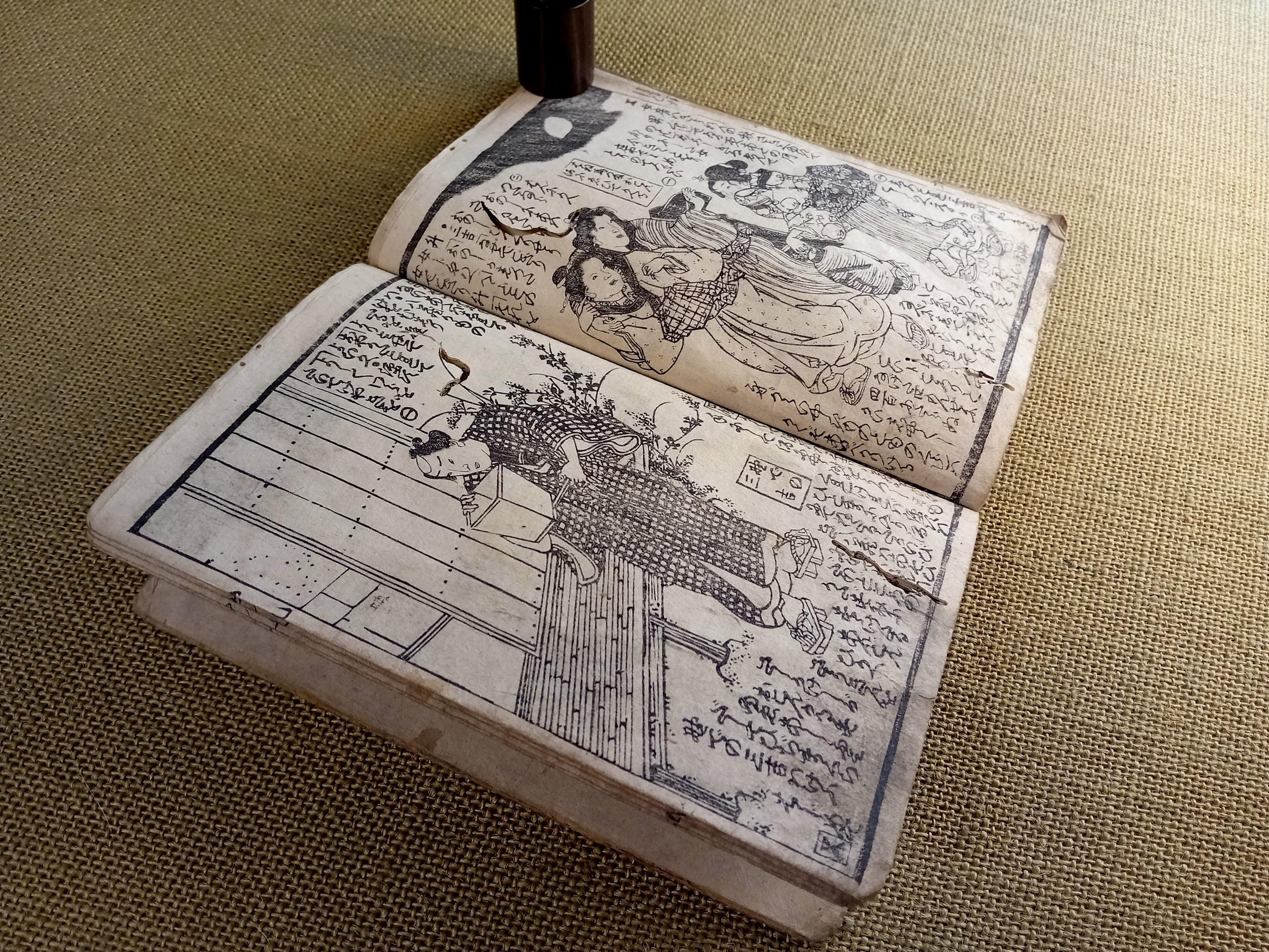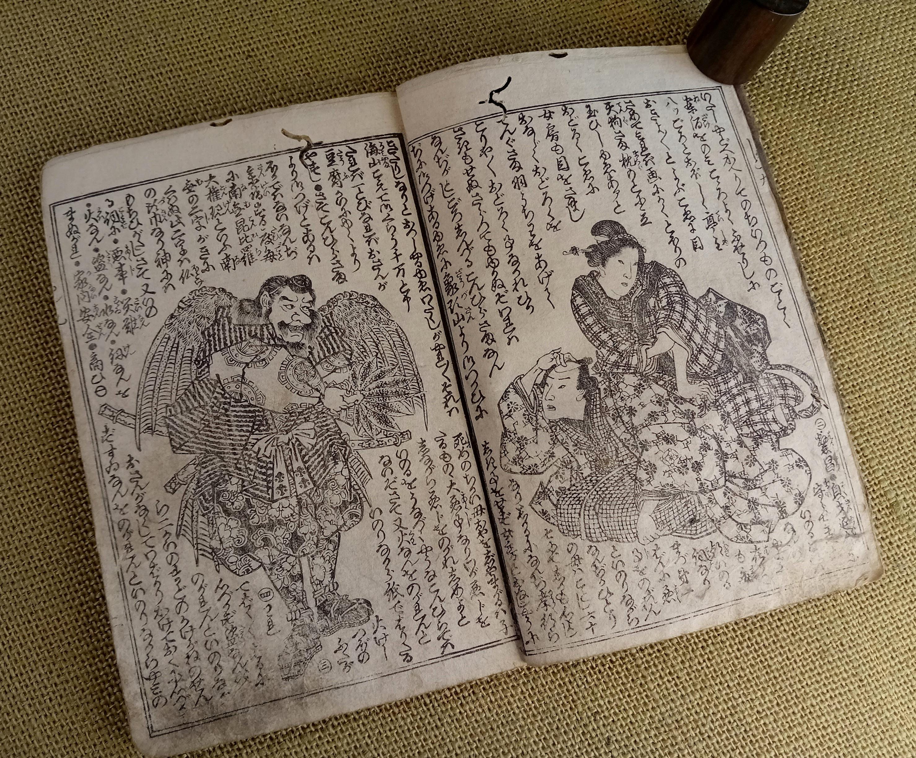 Antique Japanese illustrated book produced using traditional woodblock printing.