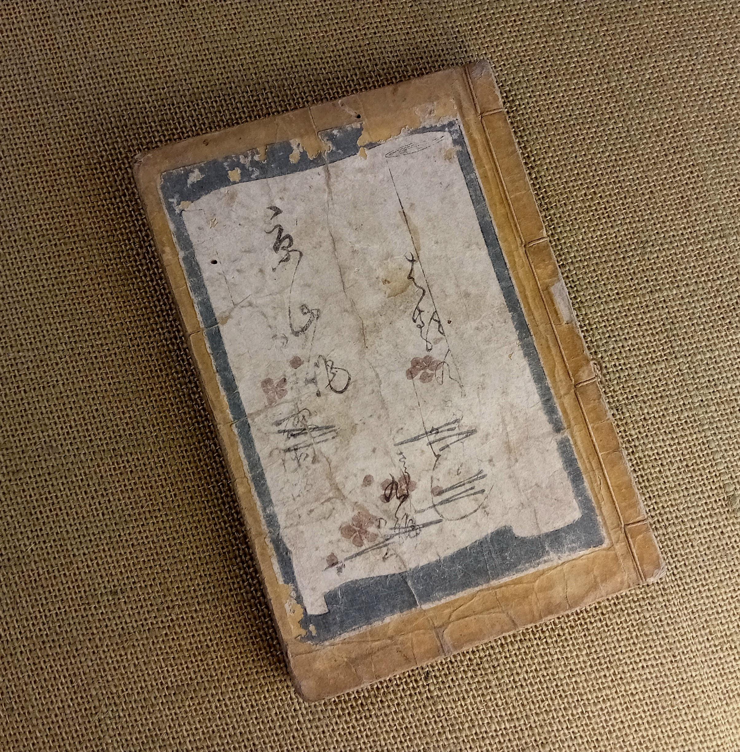 Antique condition. Natural signs of age are present, including paper toning, traces of insect activity, surface wear, and worn covers, consistent with the historical use of an authentic Edo-period woodblock-printed book.