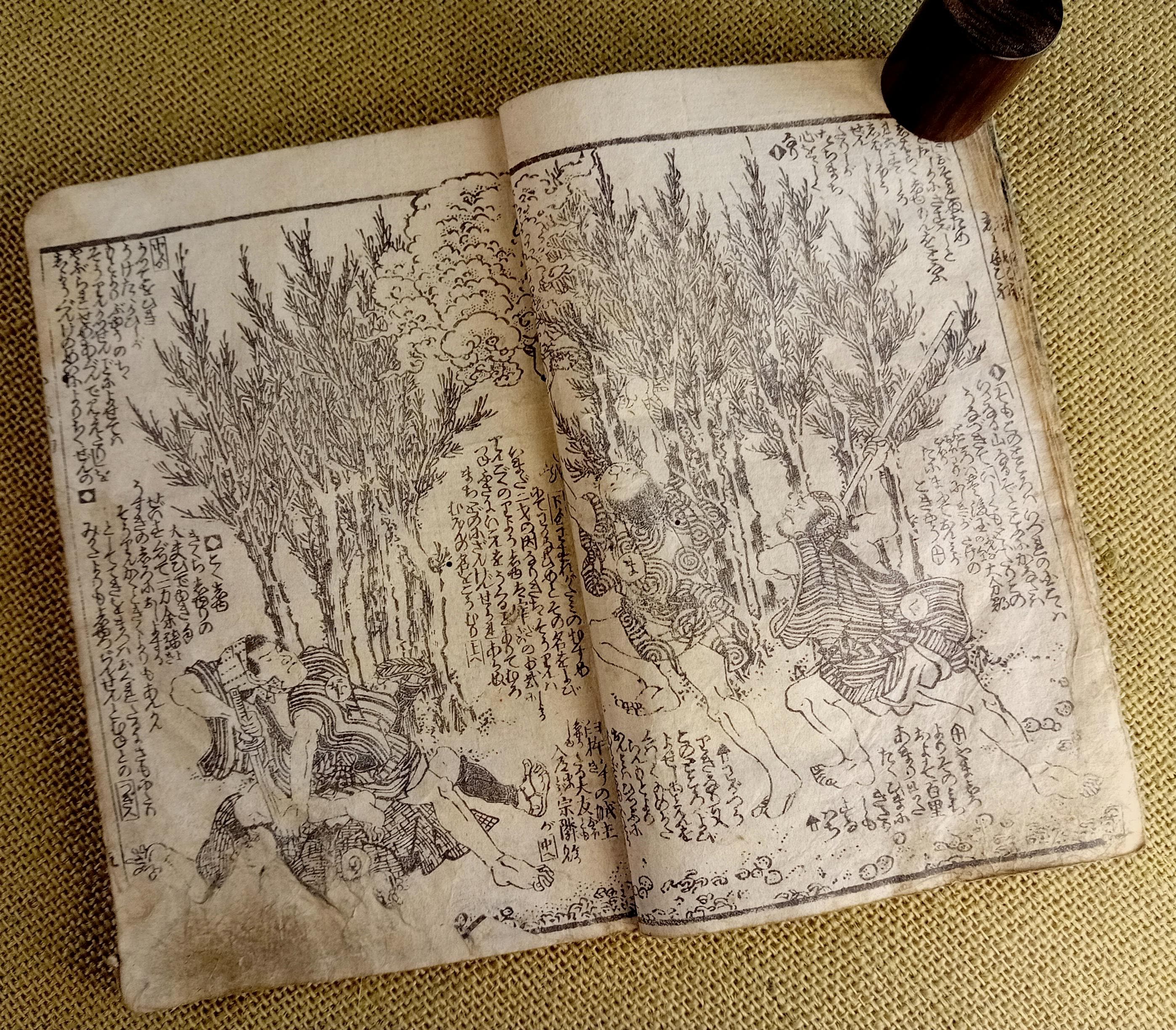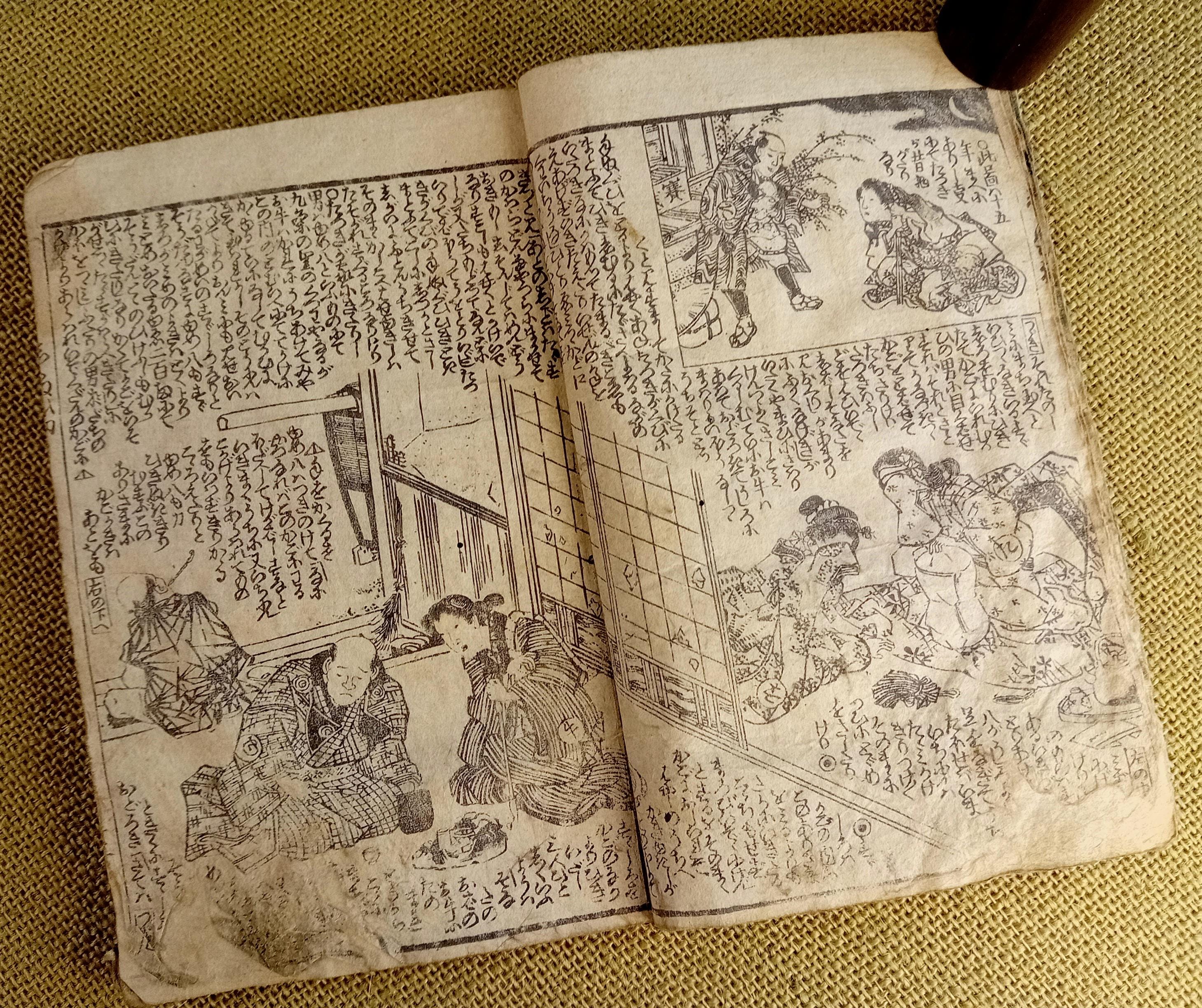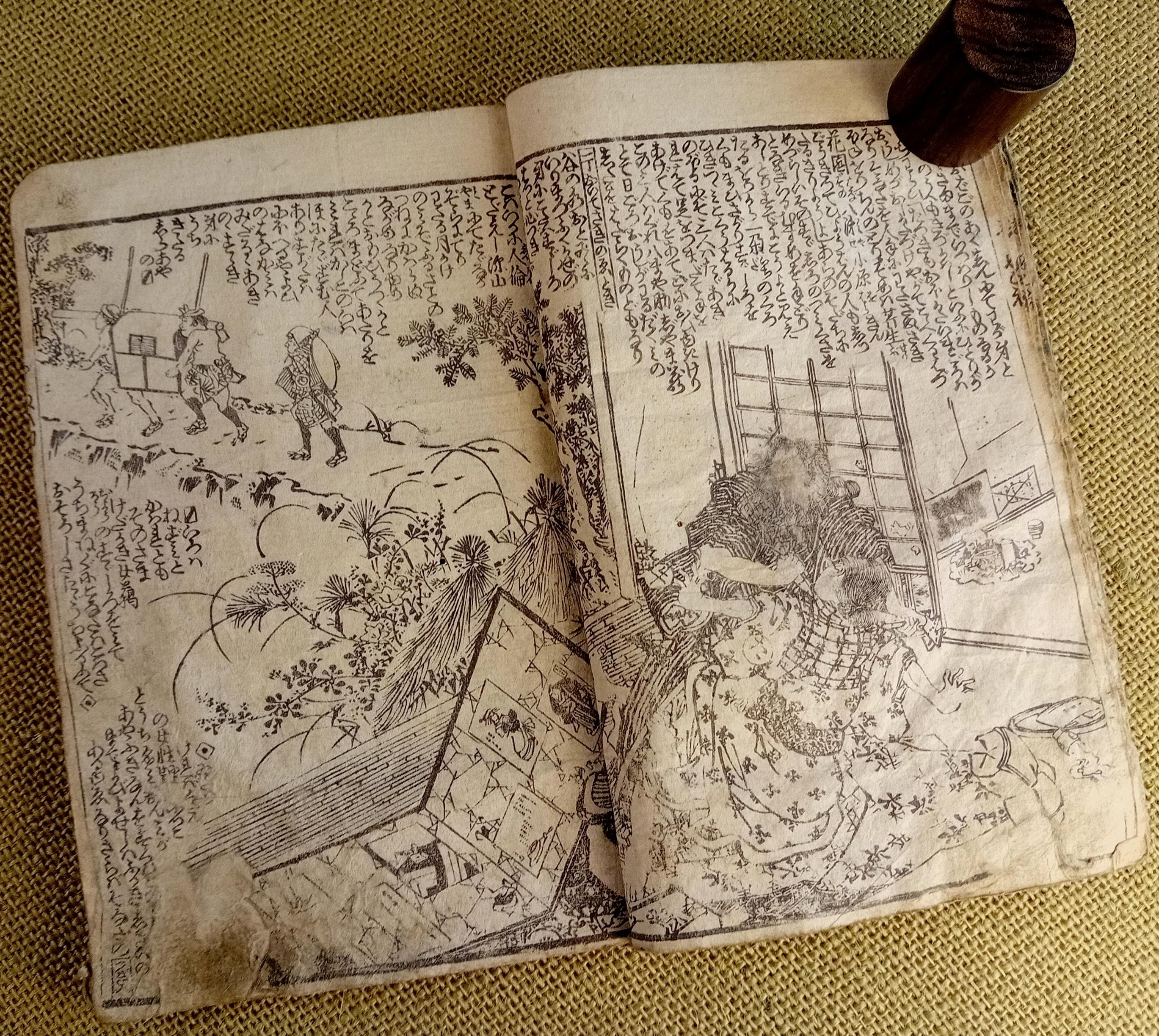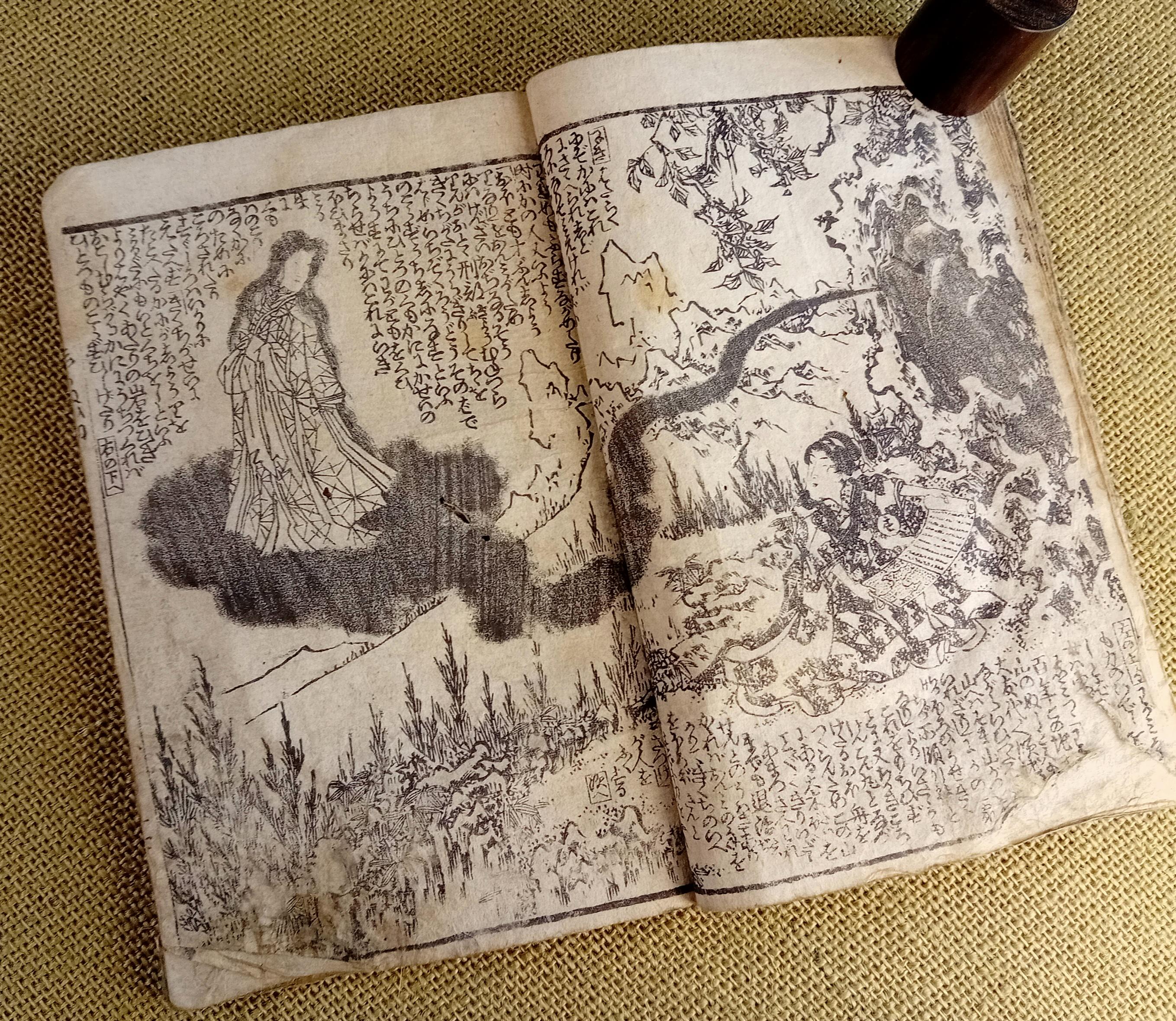 Antique Japanese illustrated book produced using traditional woodblock printing.