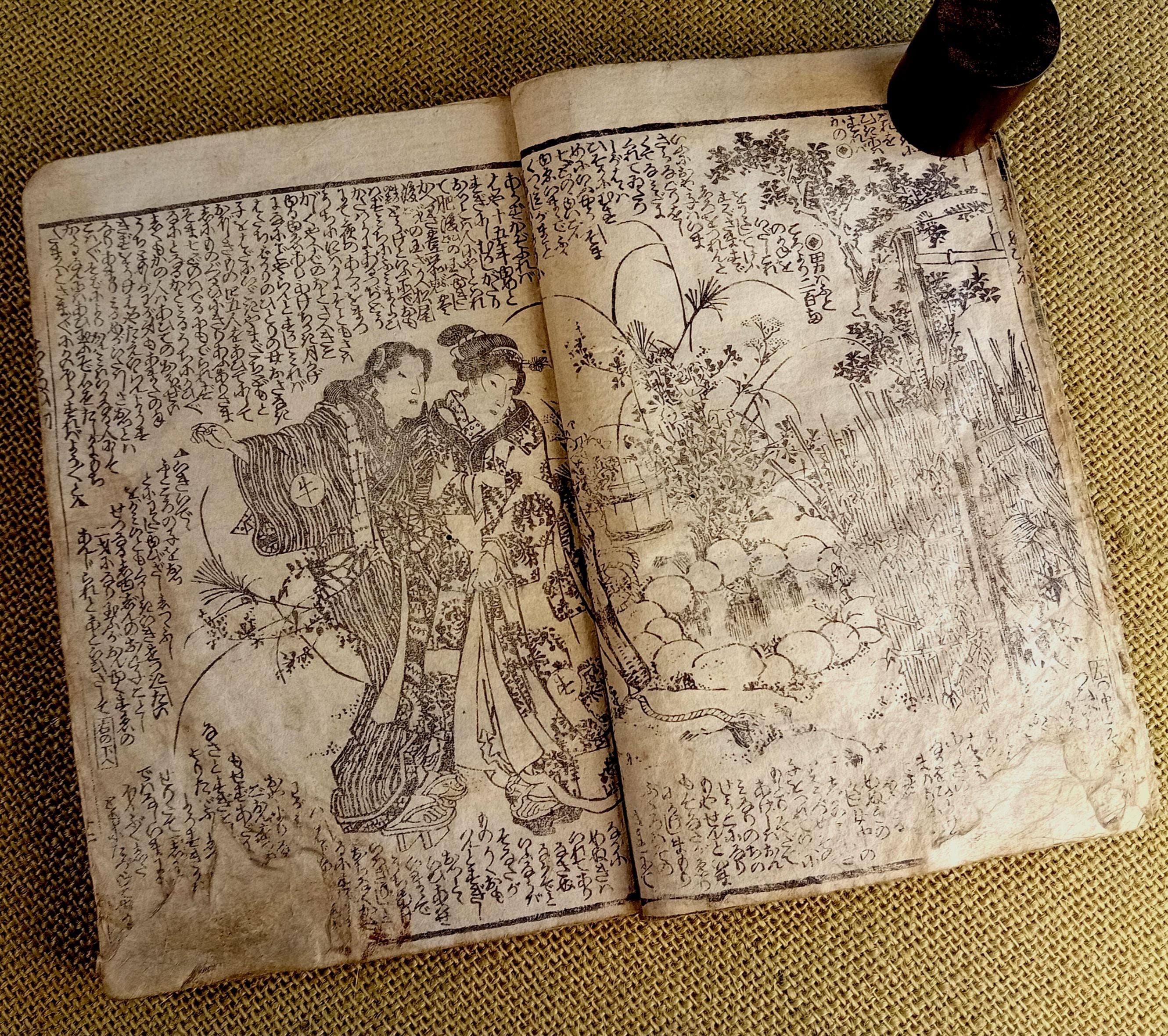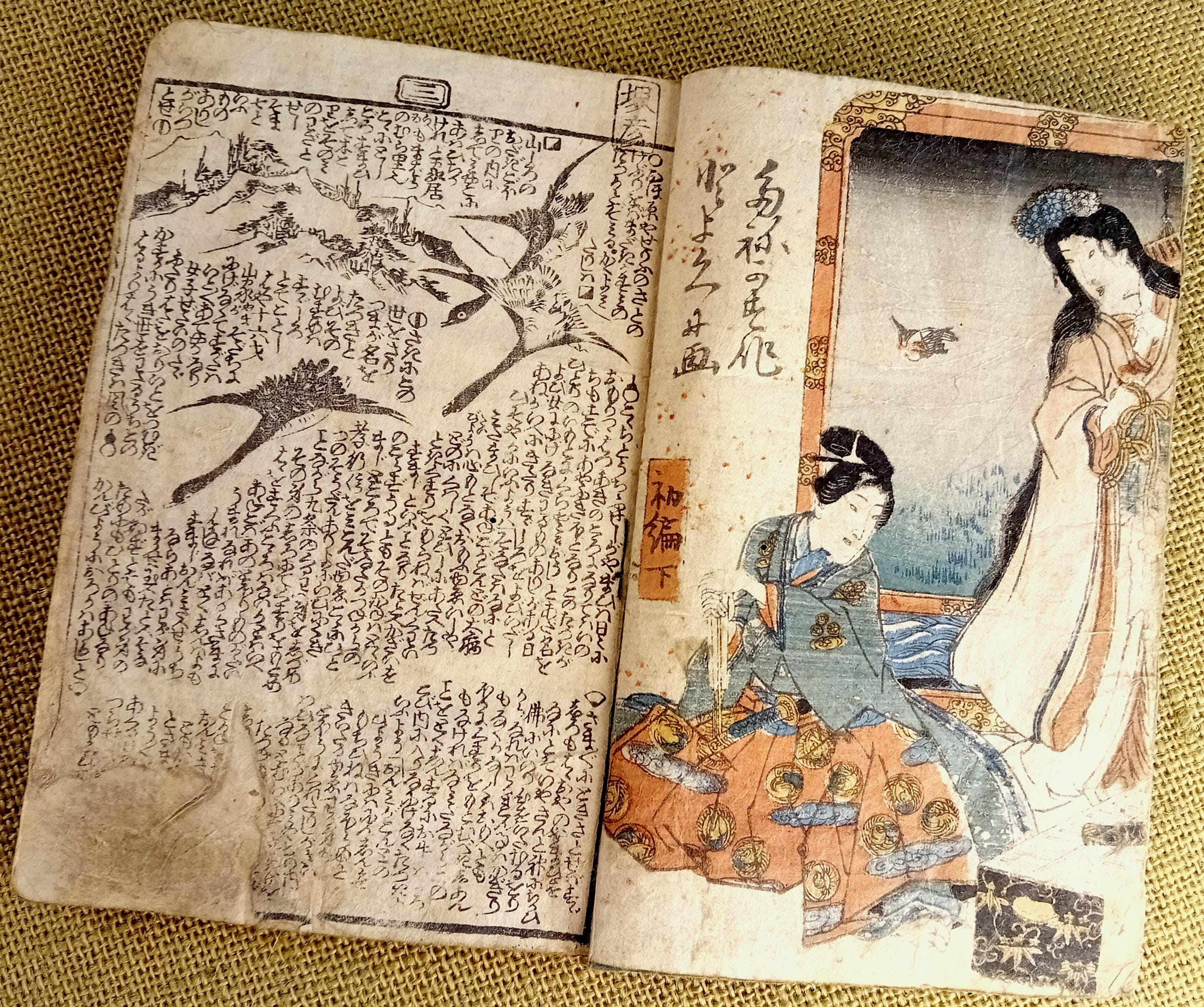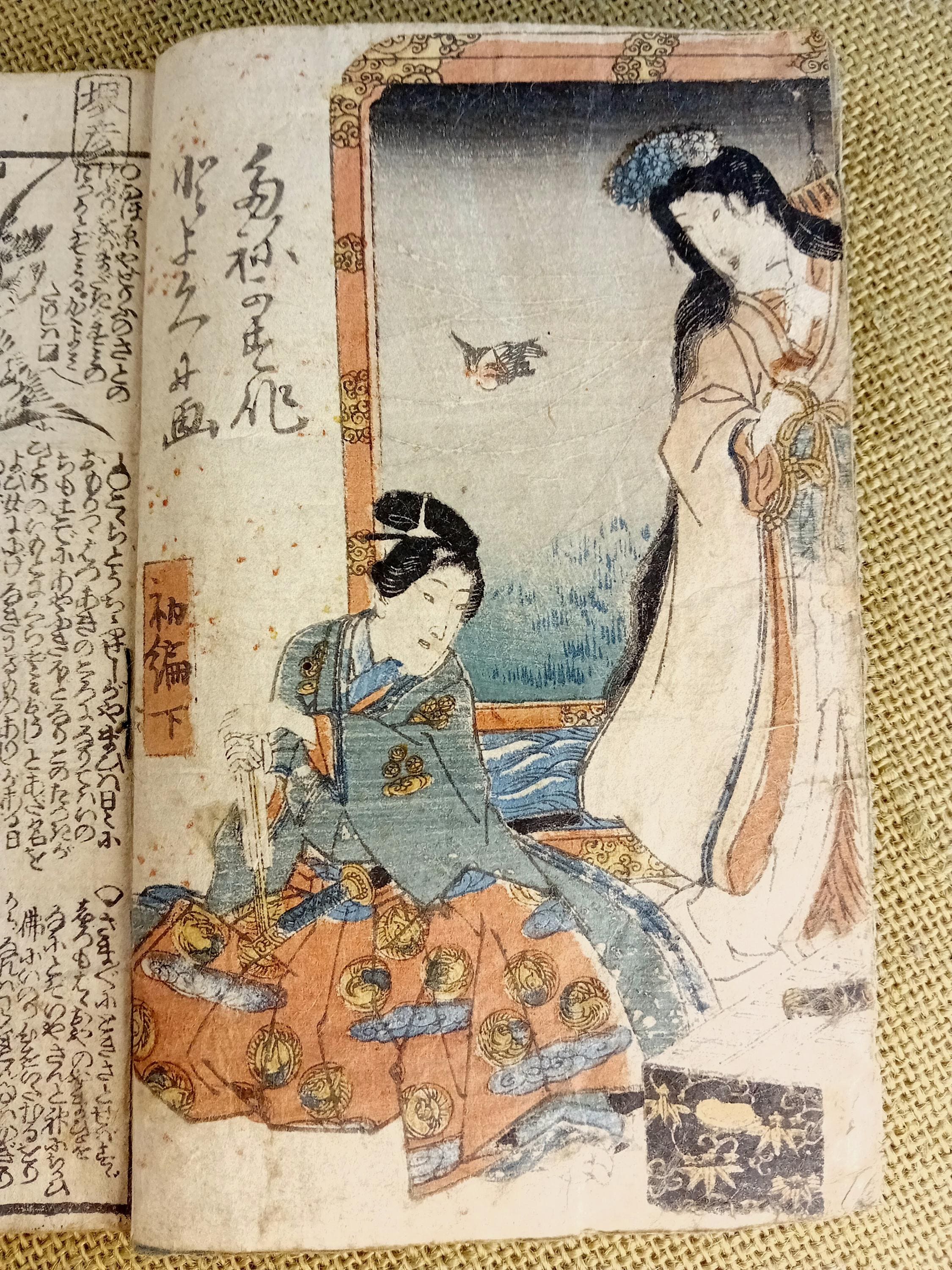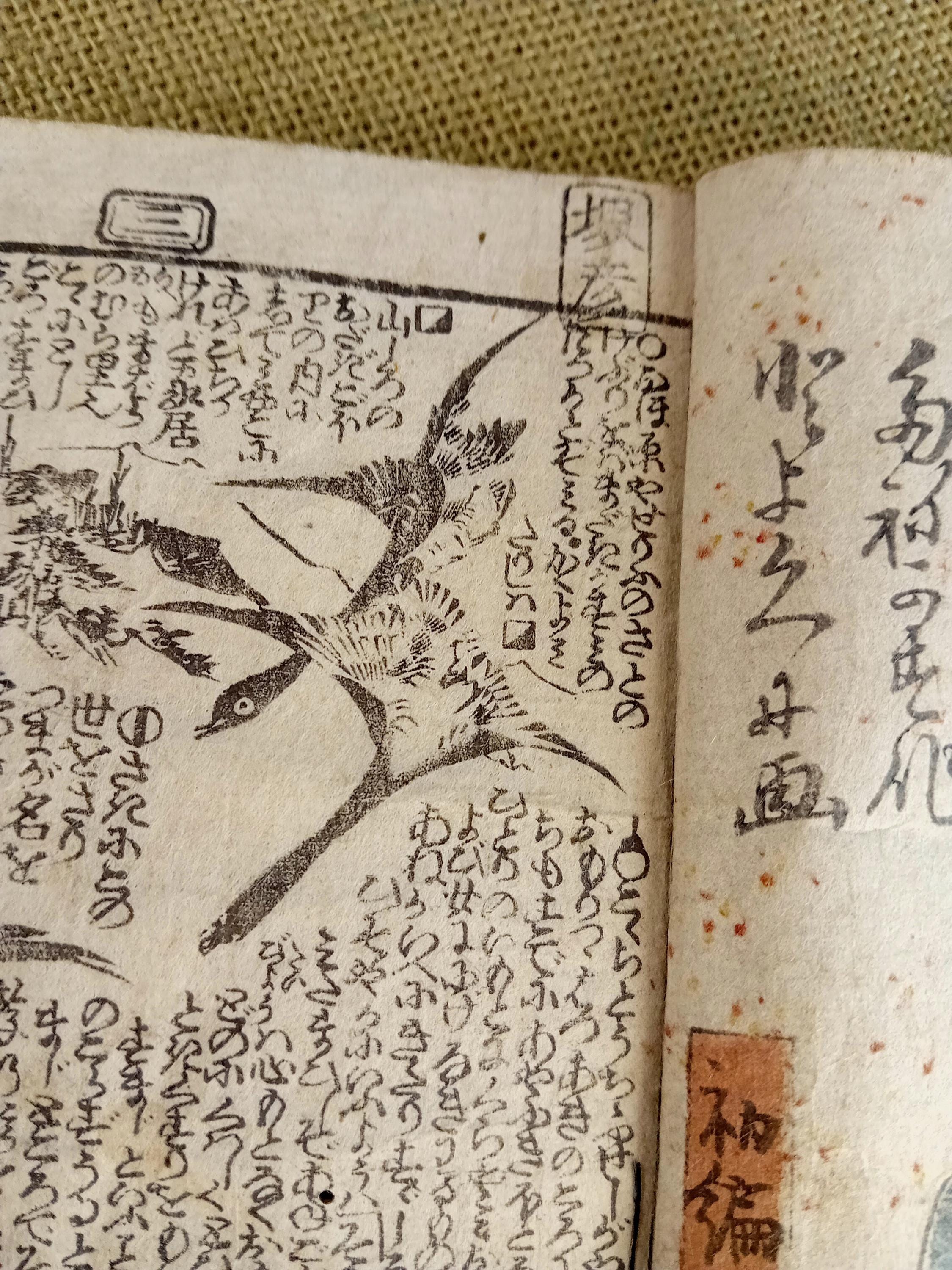 Antique Japanese illustrated book produced using traditional woodblock printing.