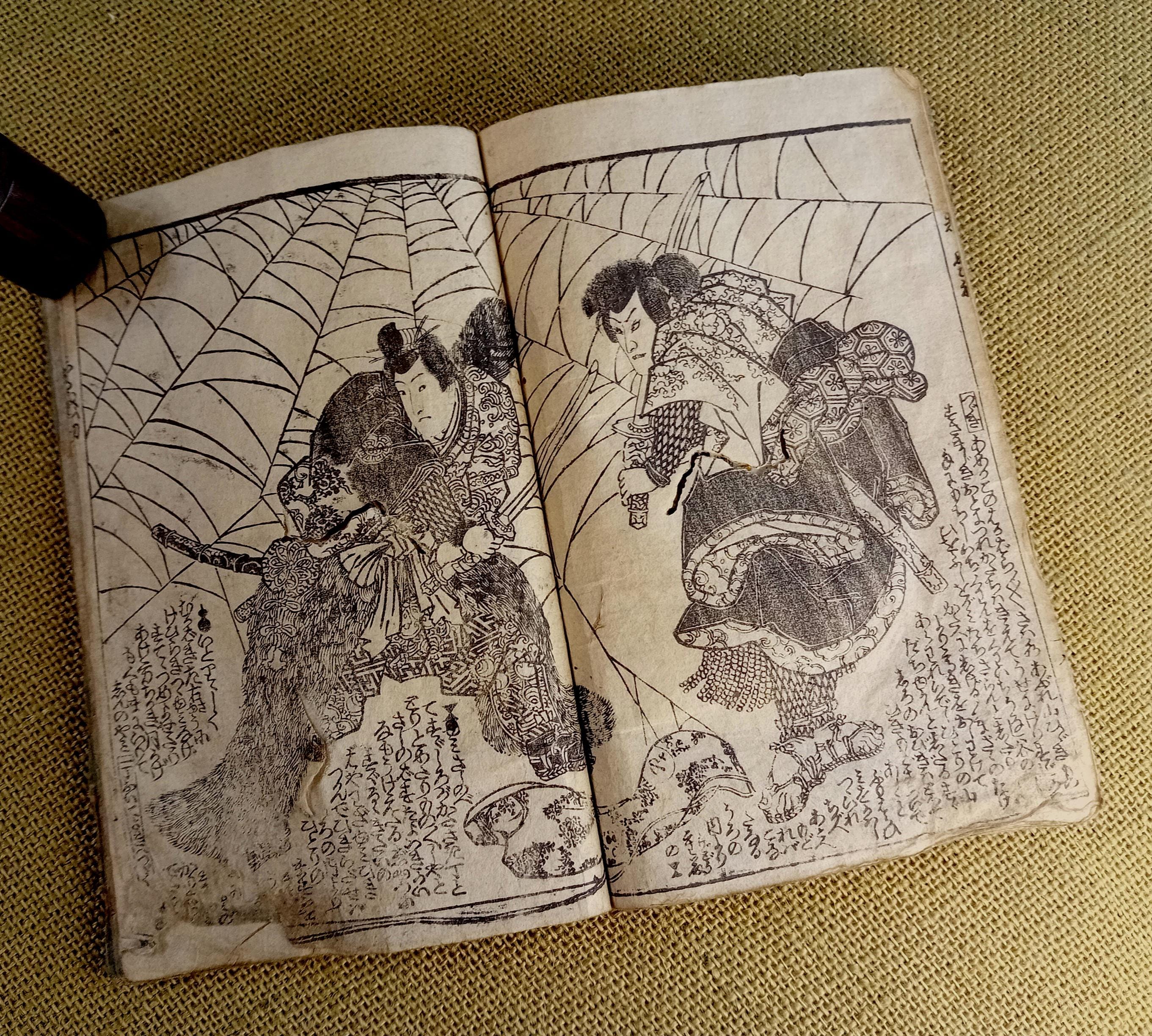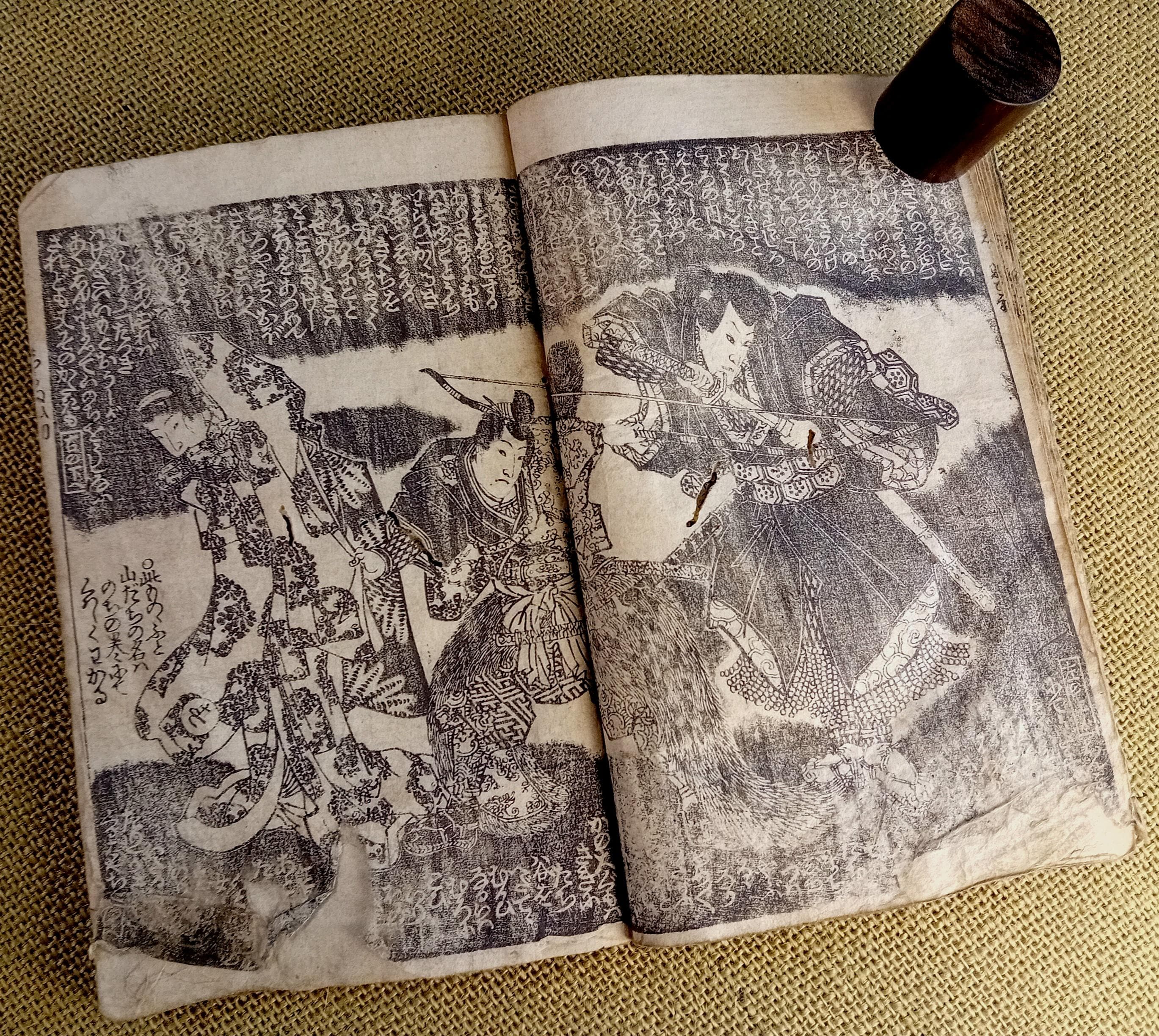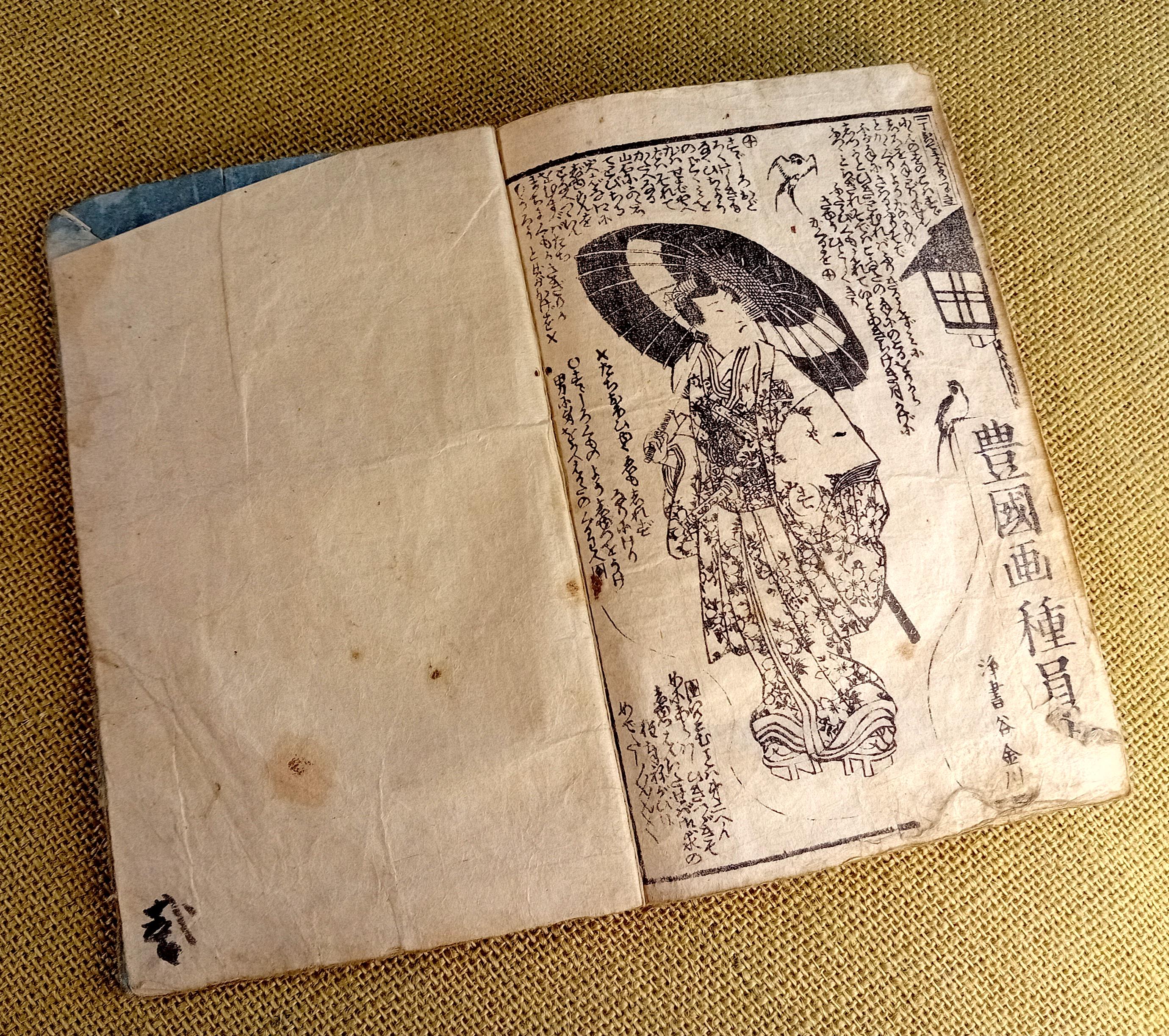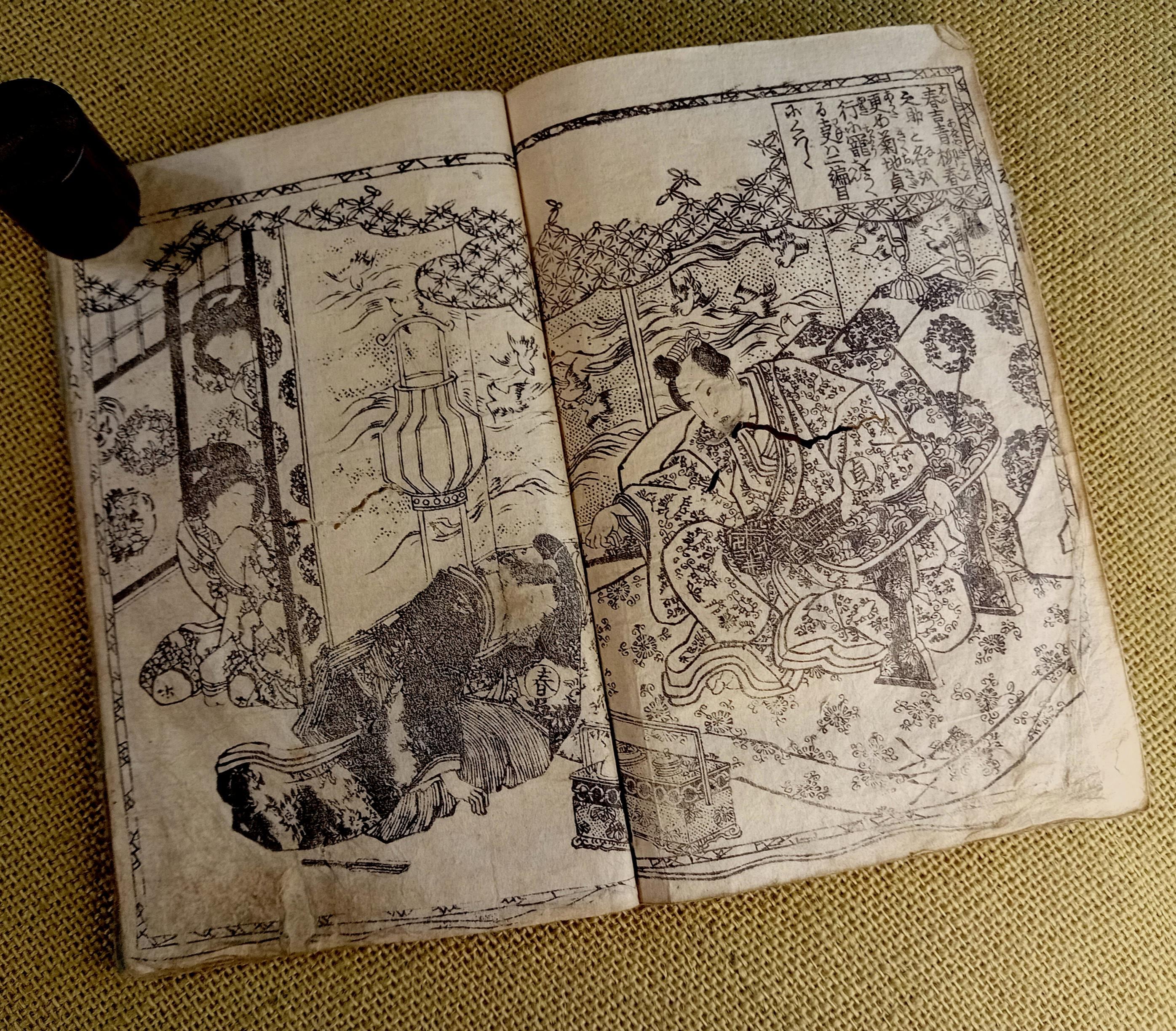 Antique Japanese illustrated book produced using traditional woodblock printing.