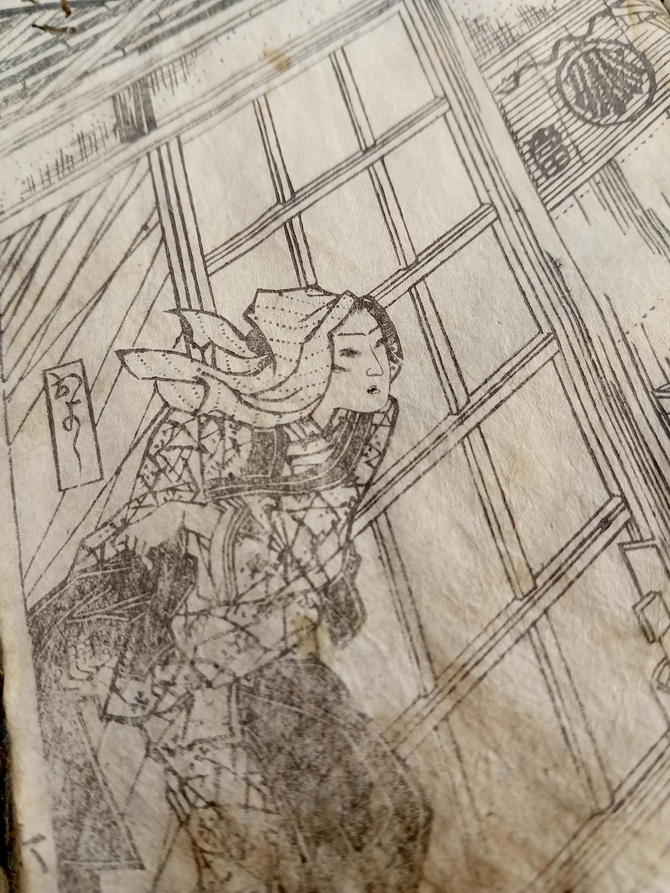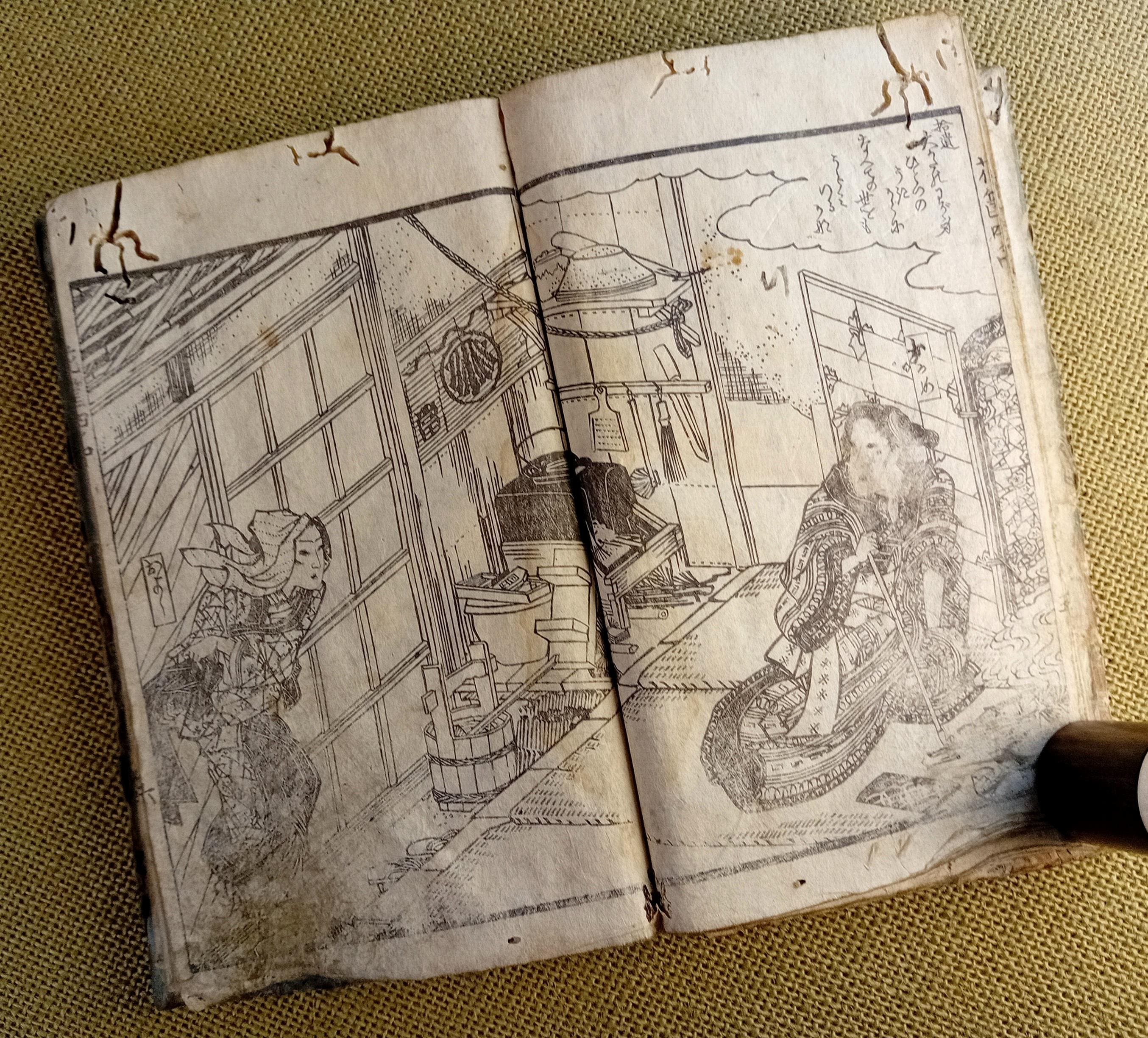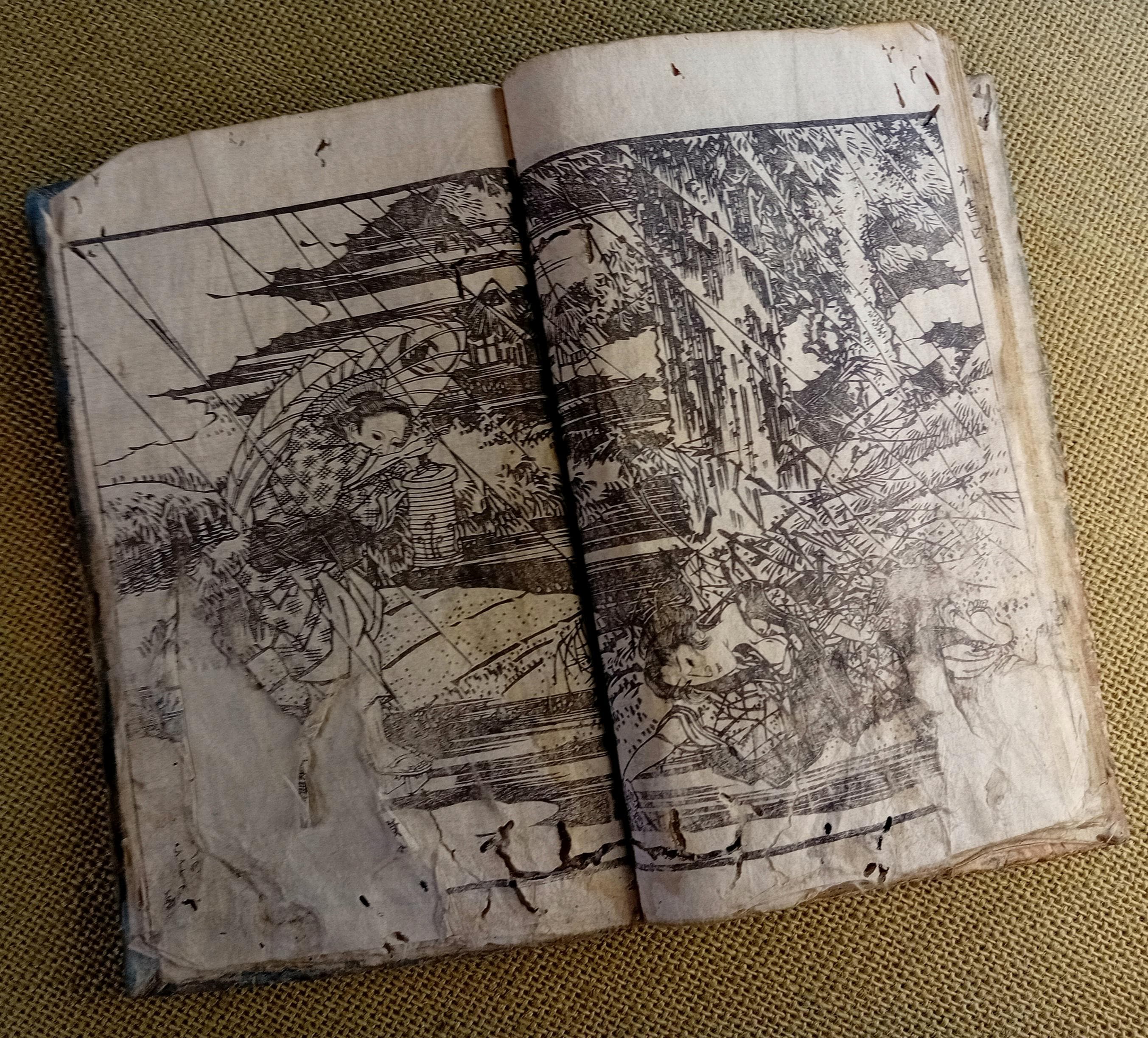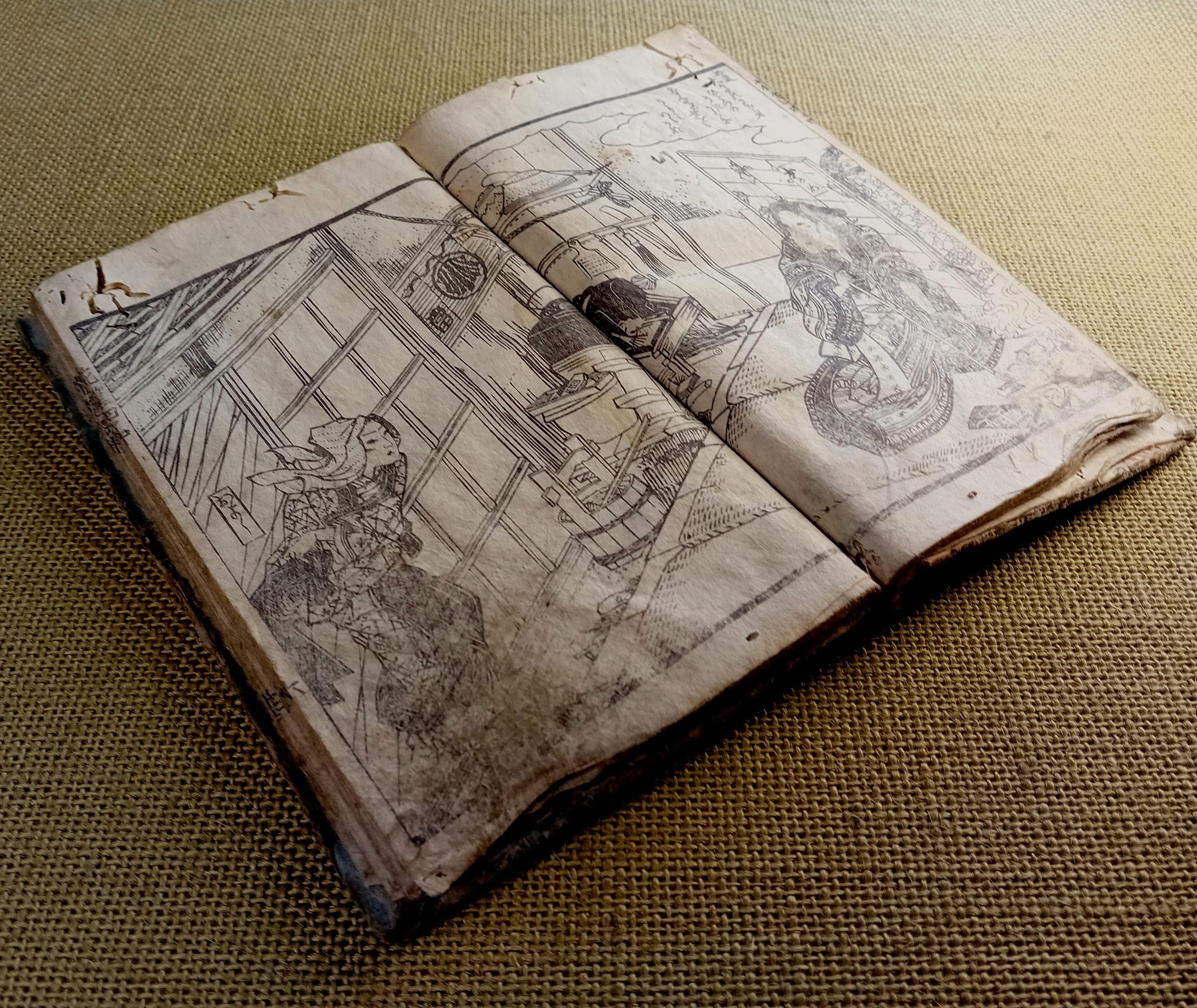 Antique Japanese illustrated book produced using traditional woodblock printing.
